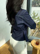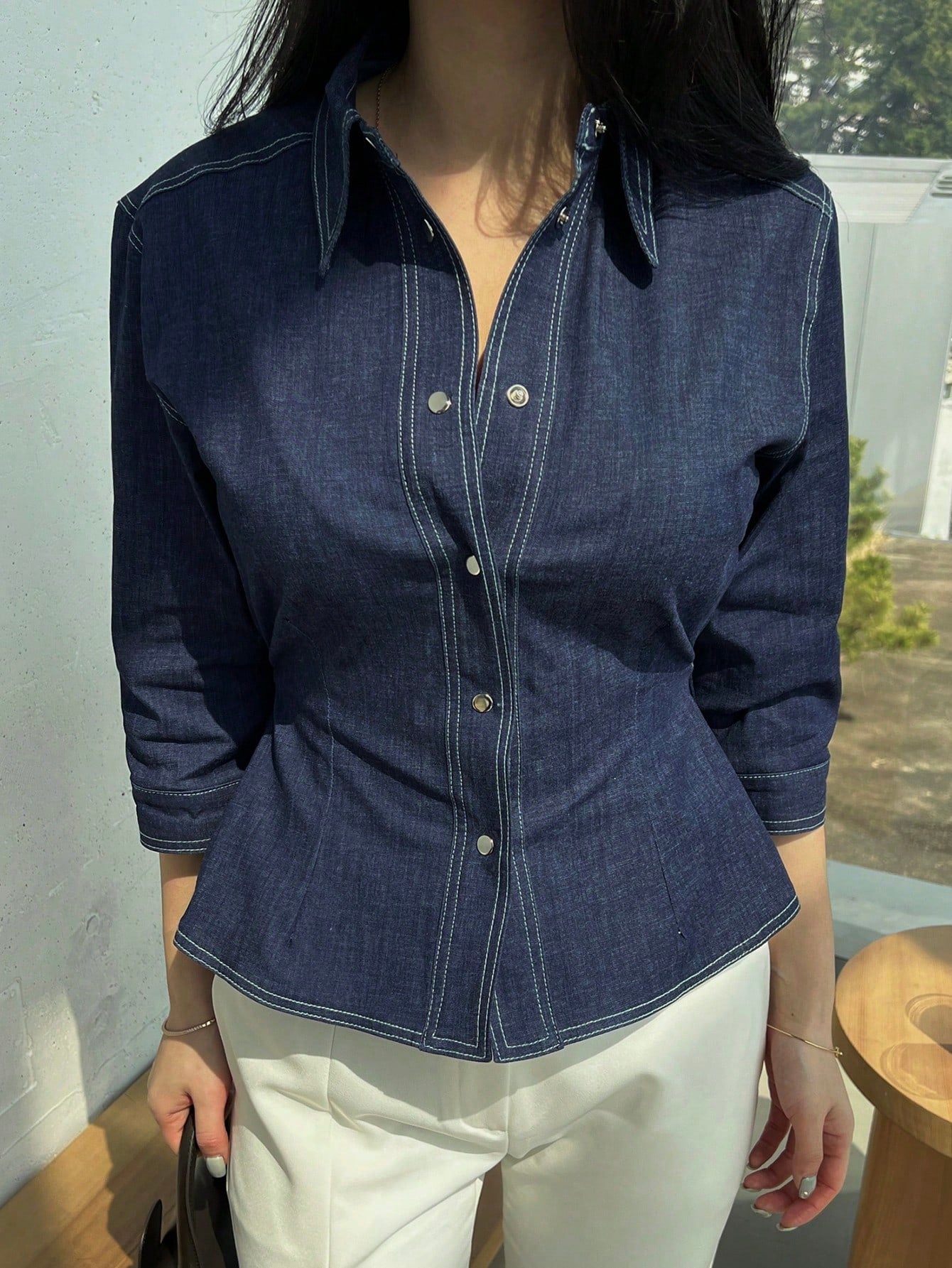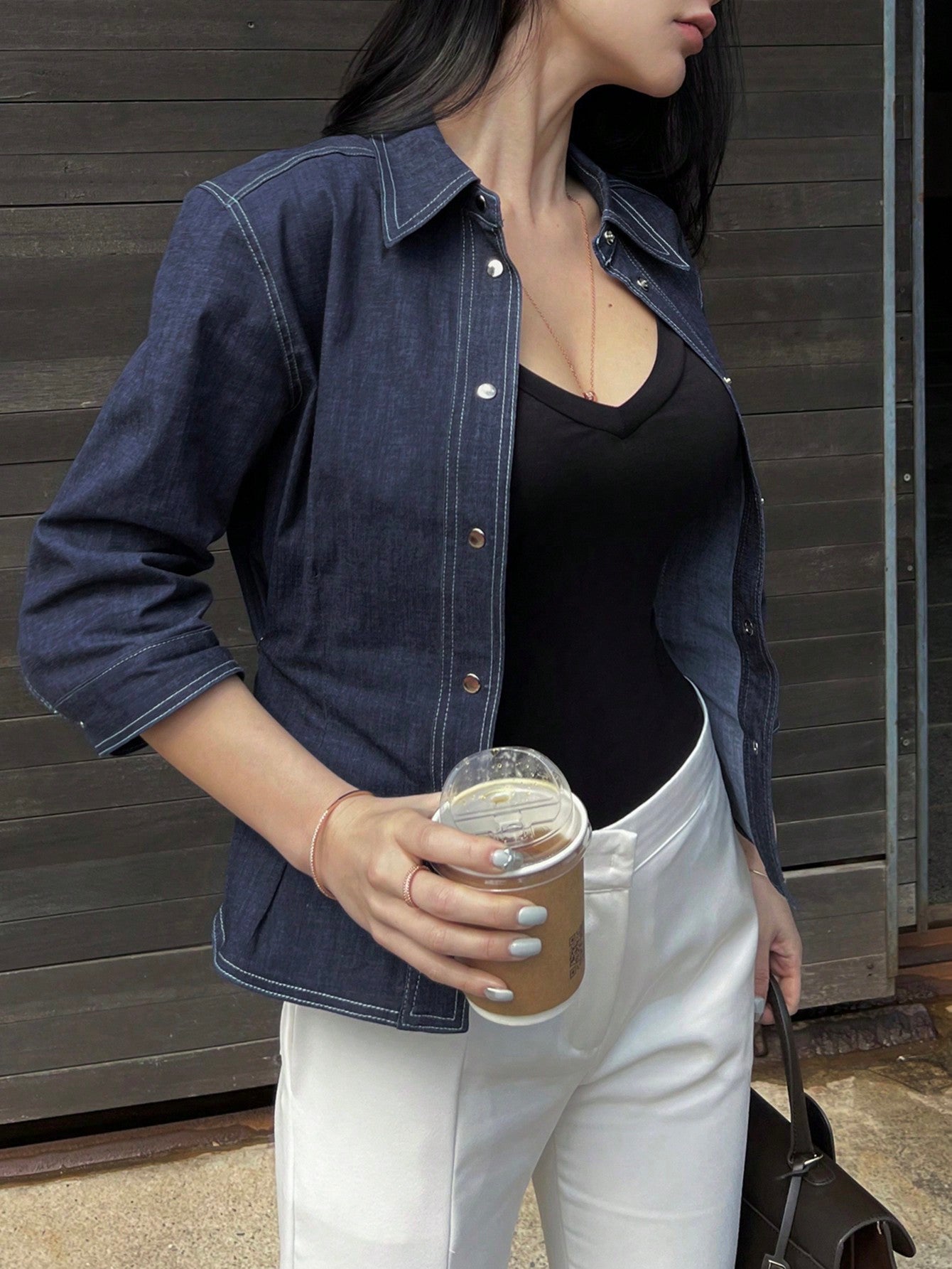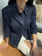 قميص جينز نسائي قصير من DAZY بأزرار وقصة ضيقة