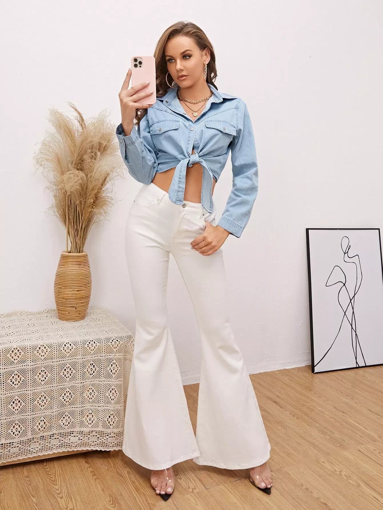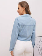 بلوزة جينز بحاشية بربطة عنق وجيب بغطاء من الدنيم