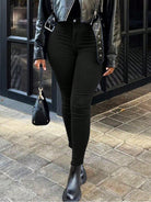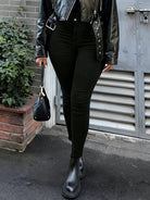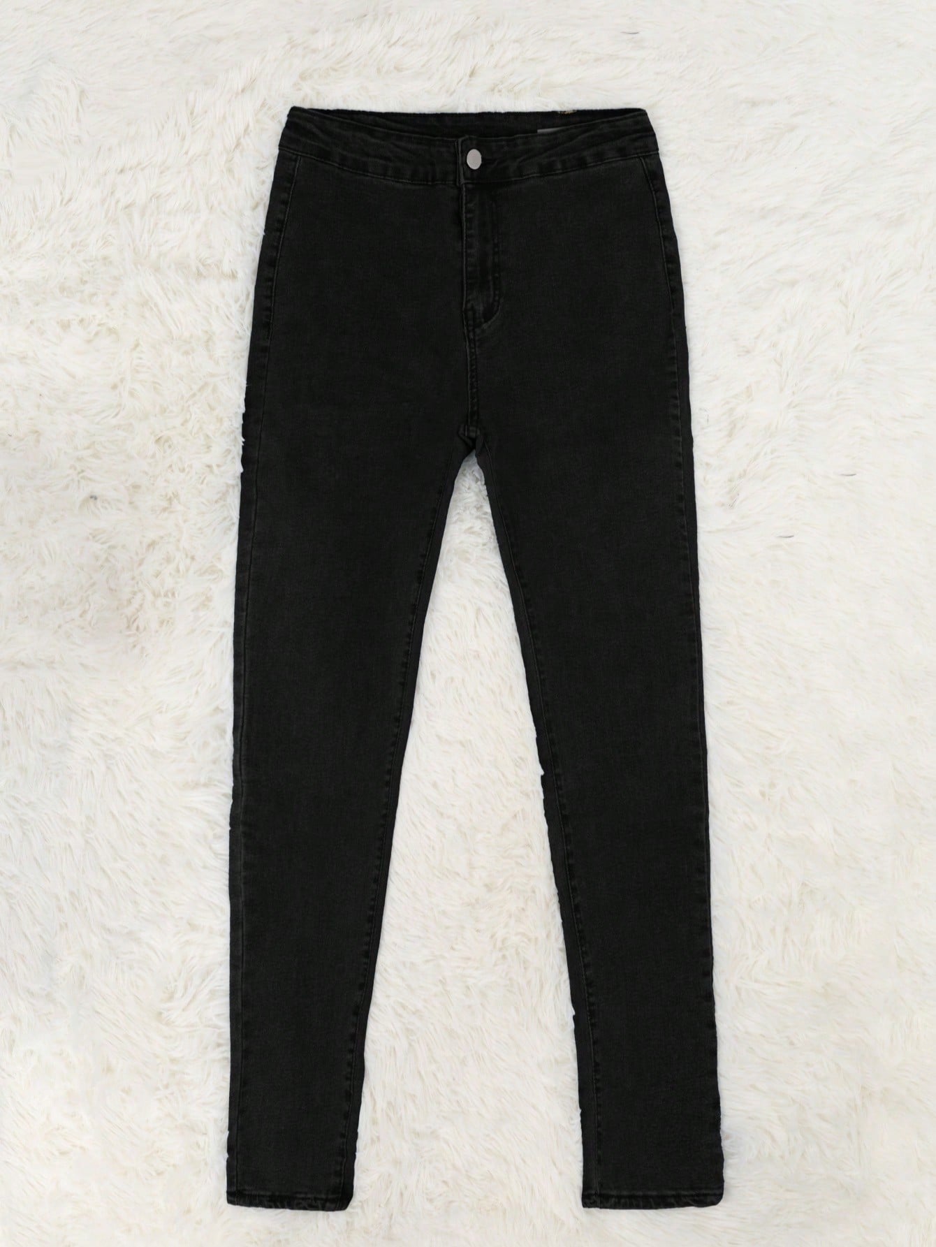بنطلون جينز كلاسيكي بخصر عالٍ مطاطي للتحكم في البطن