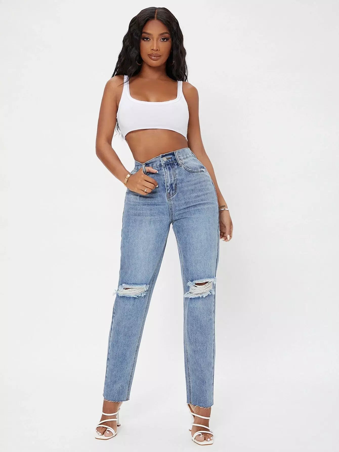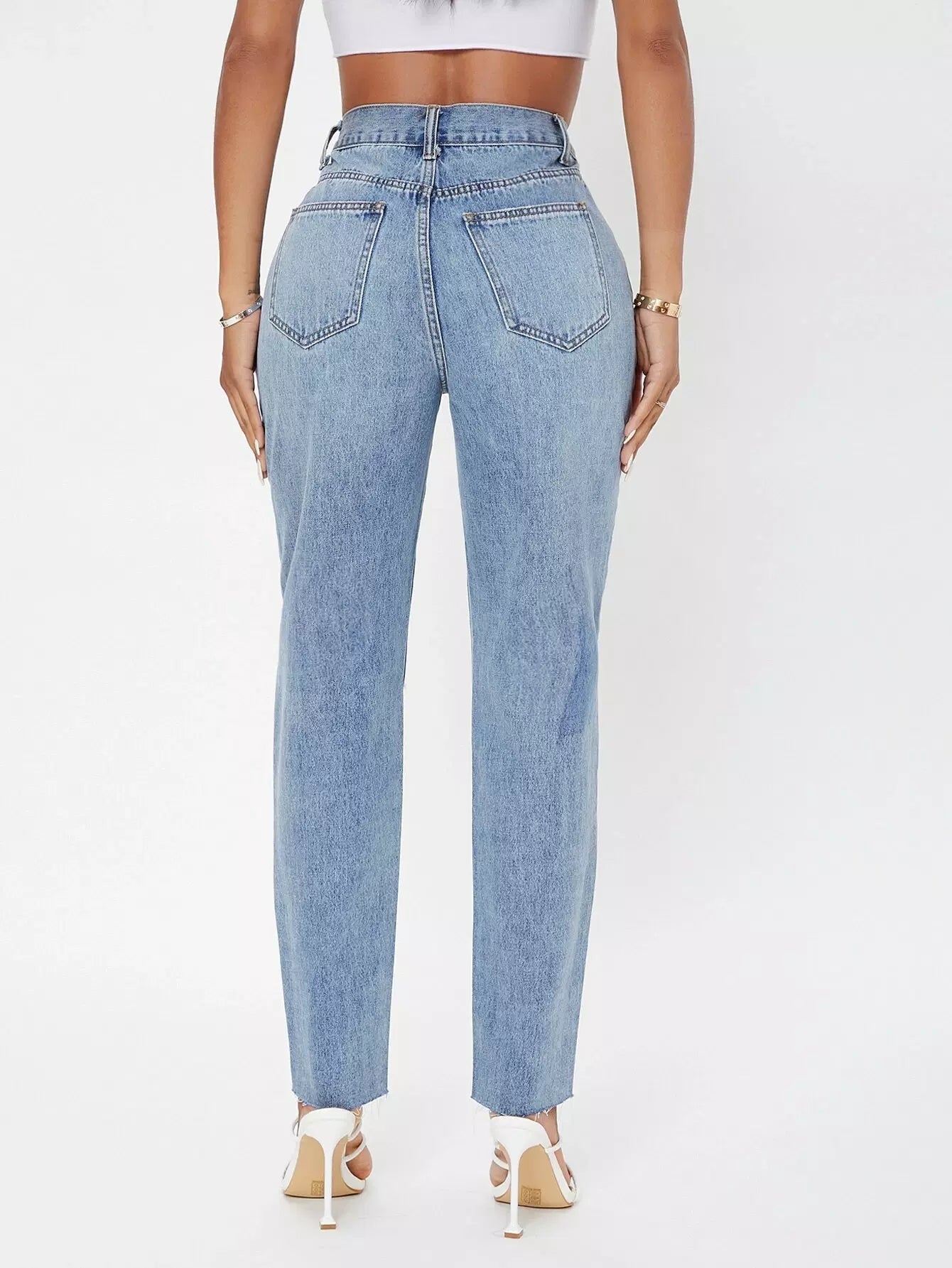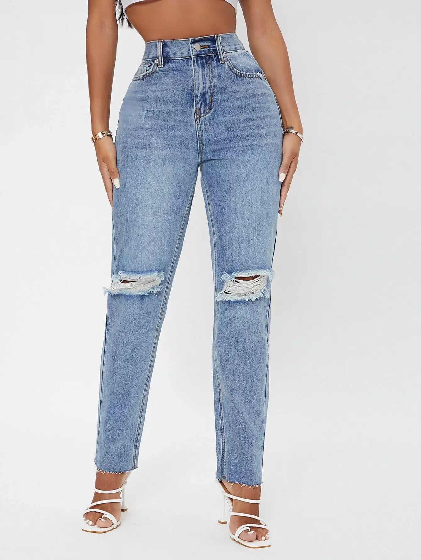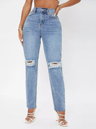 بنطلون جينز ممزق عالي الخصر متعرج