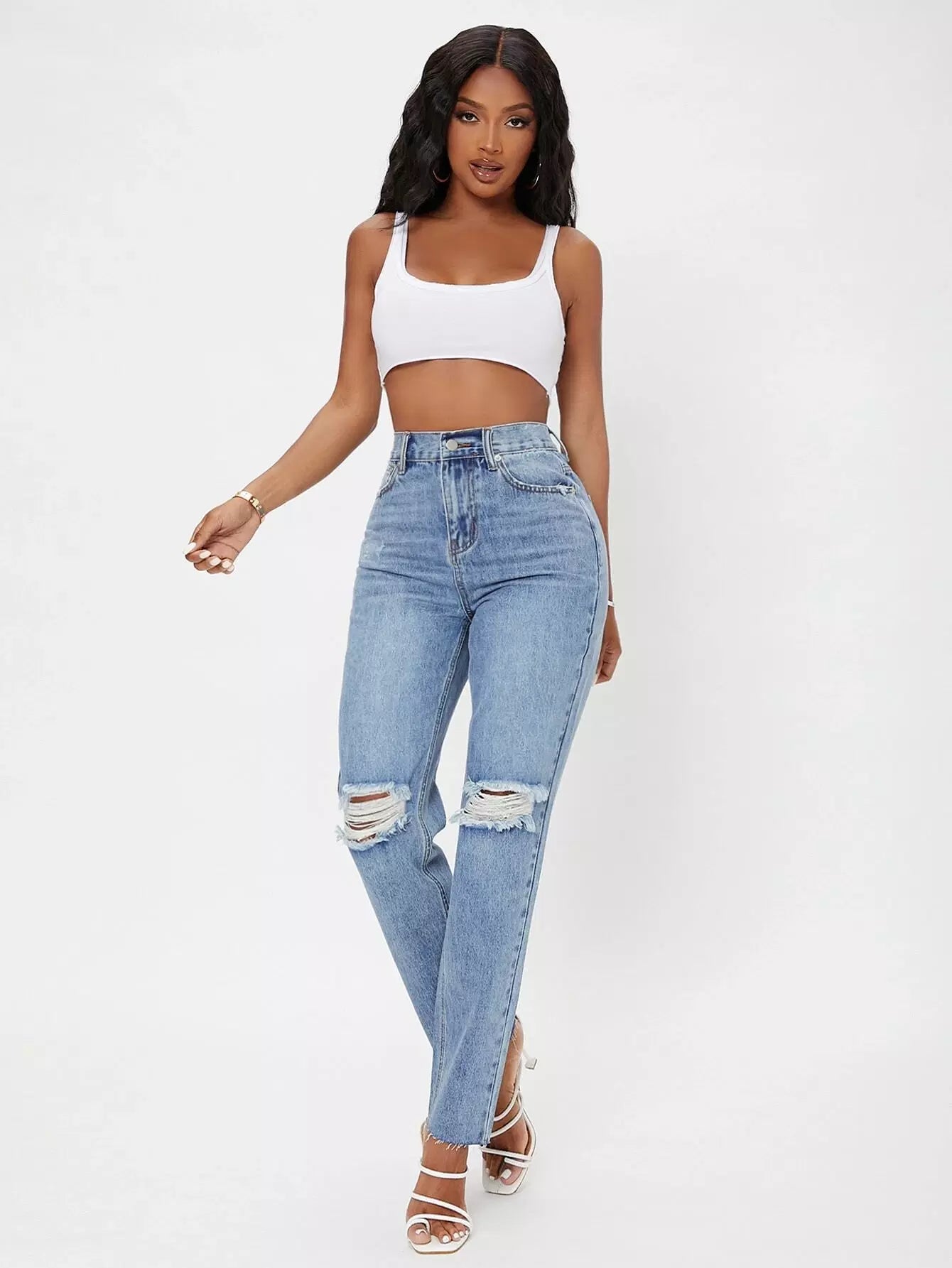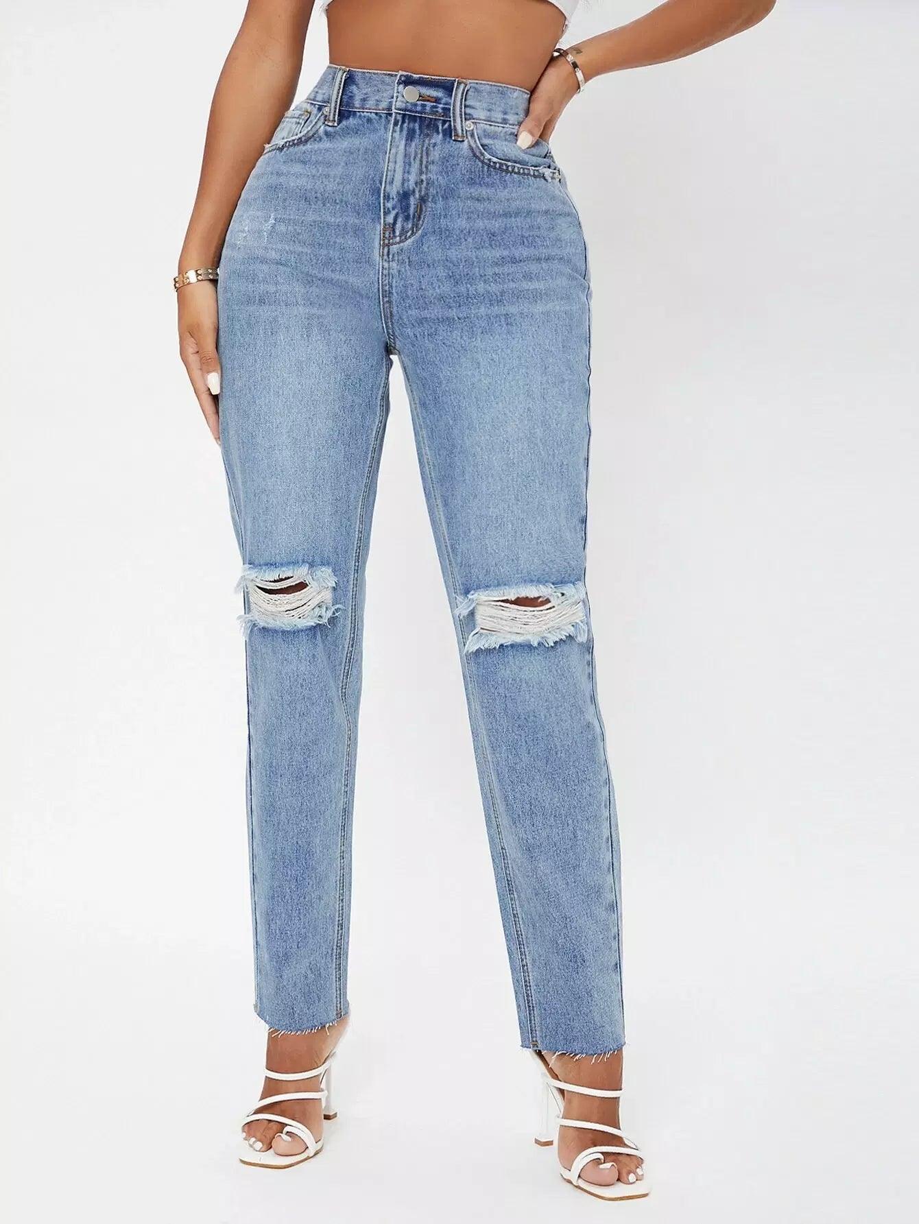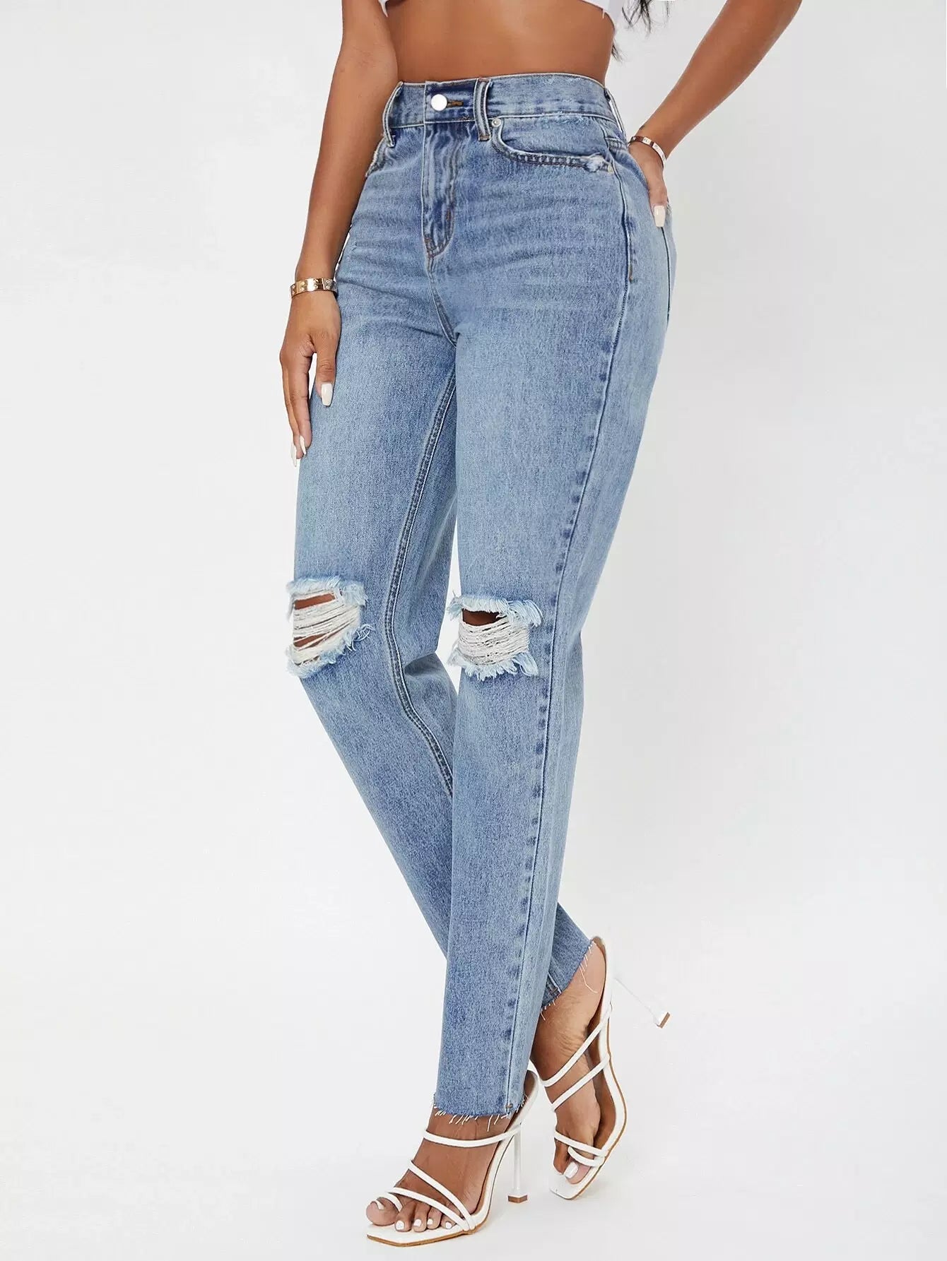 بنطلون جينز ممزق عالي الخصر متعرج