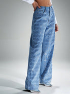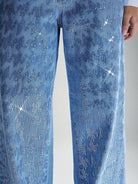 women Denimoi Sequin Embellished Straight Leg Denim Jeans Shine Detail Jeans Straight Leg Jeans Fashionable Statement Denim