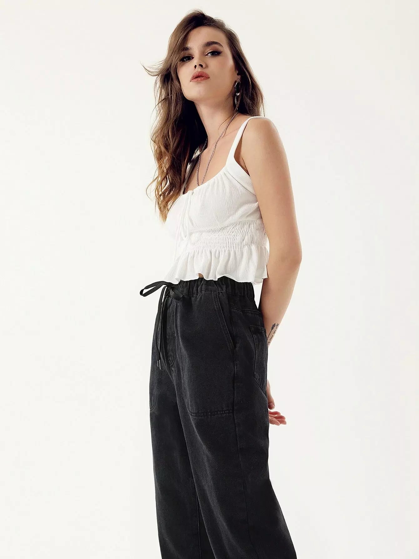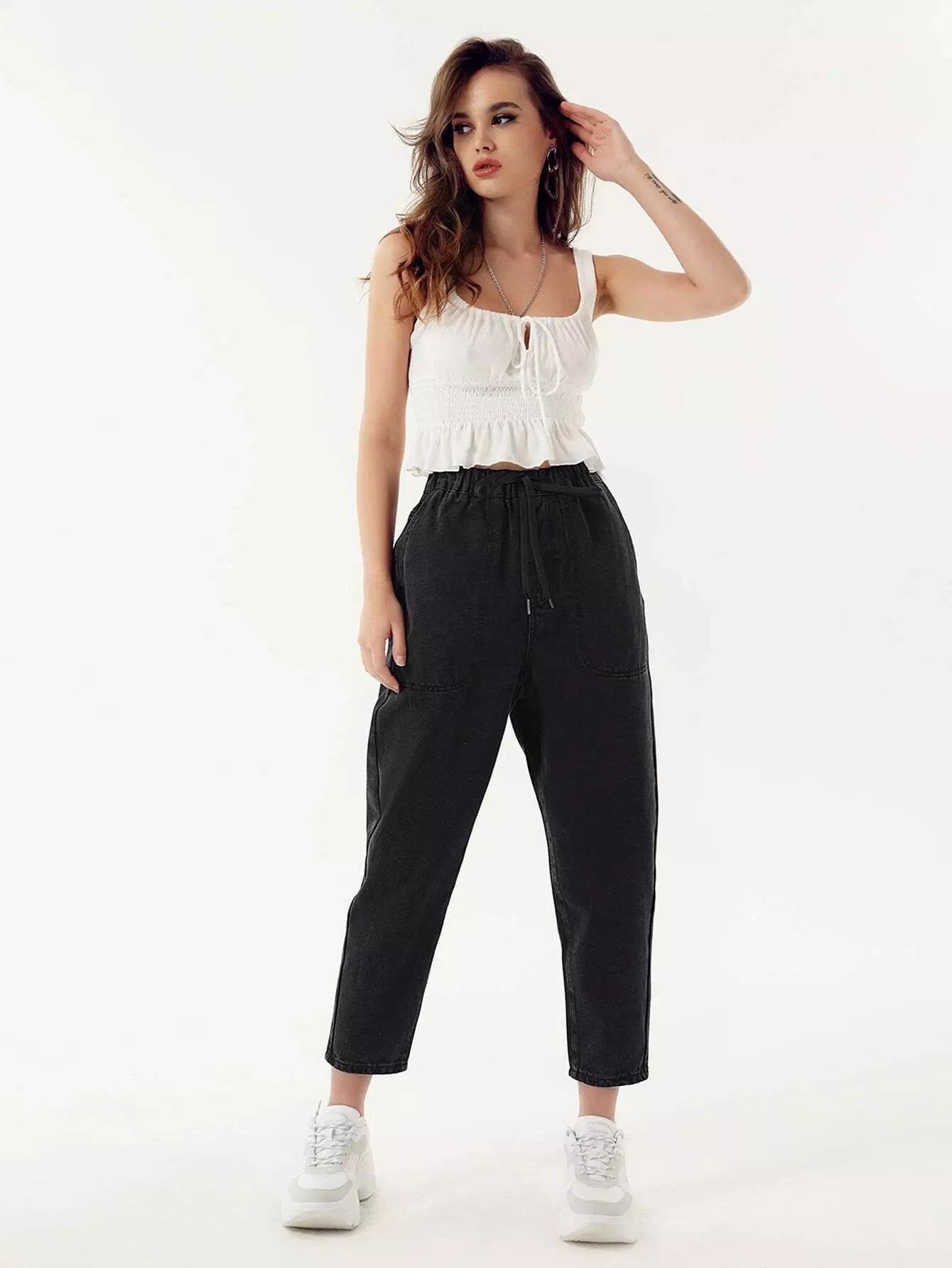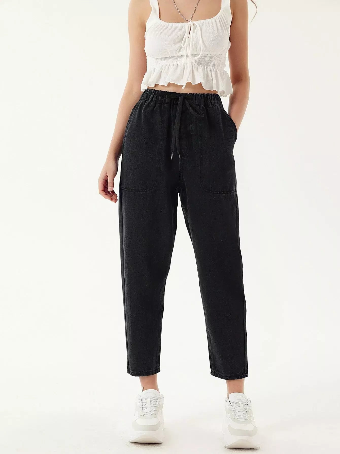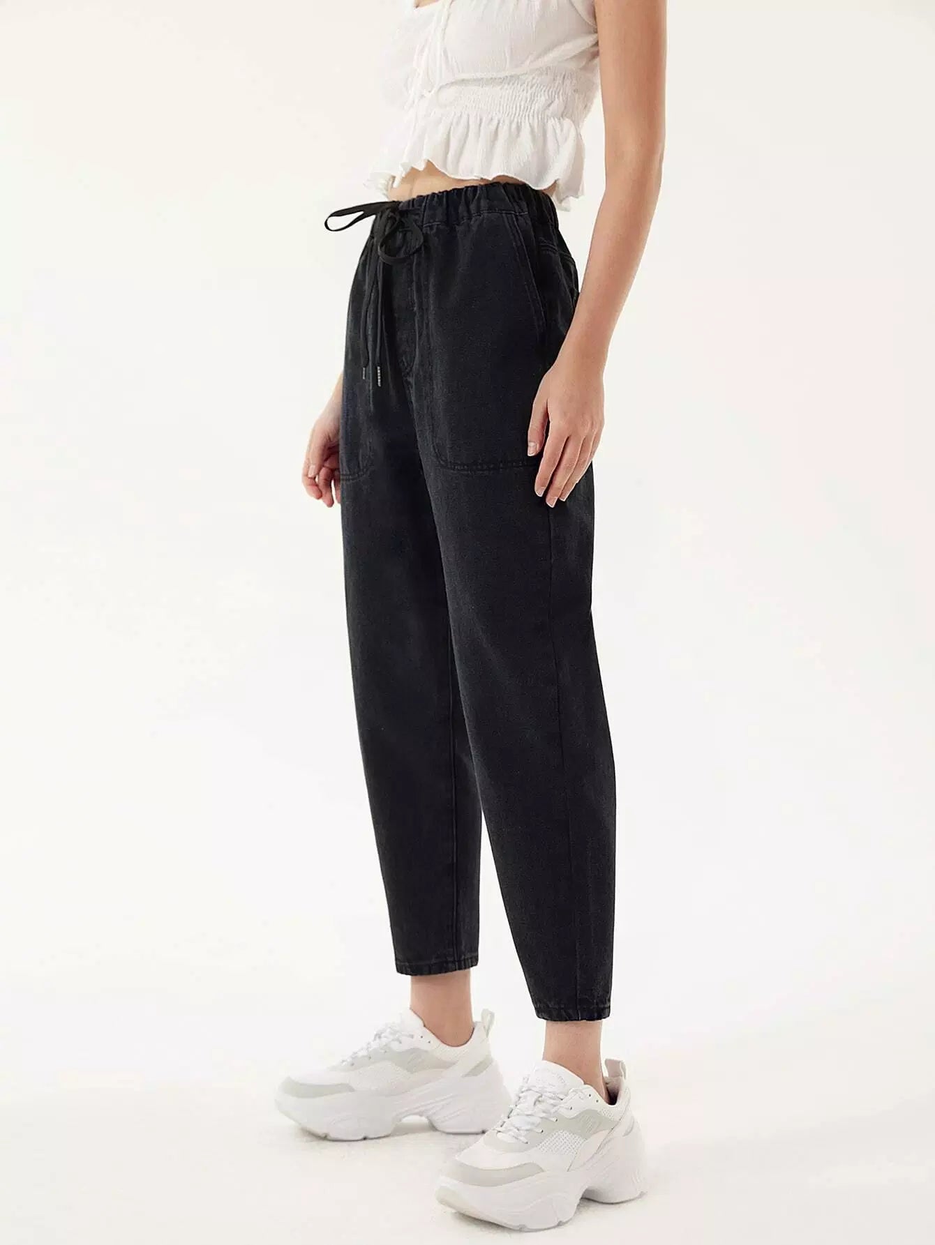 بنطلون جينز برباط خصر مربوط للأمهات