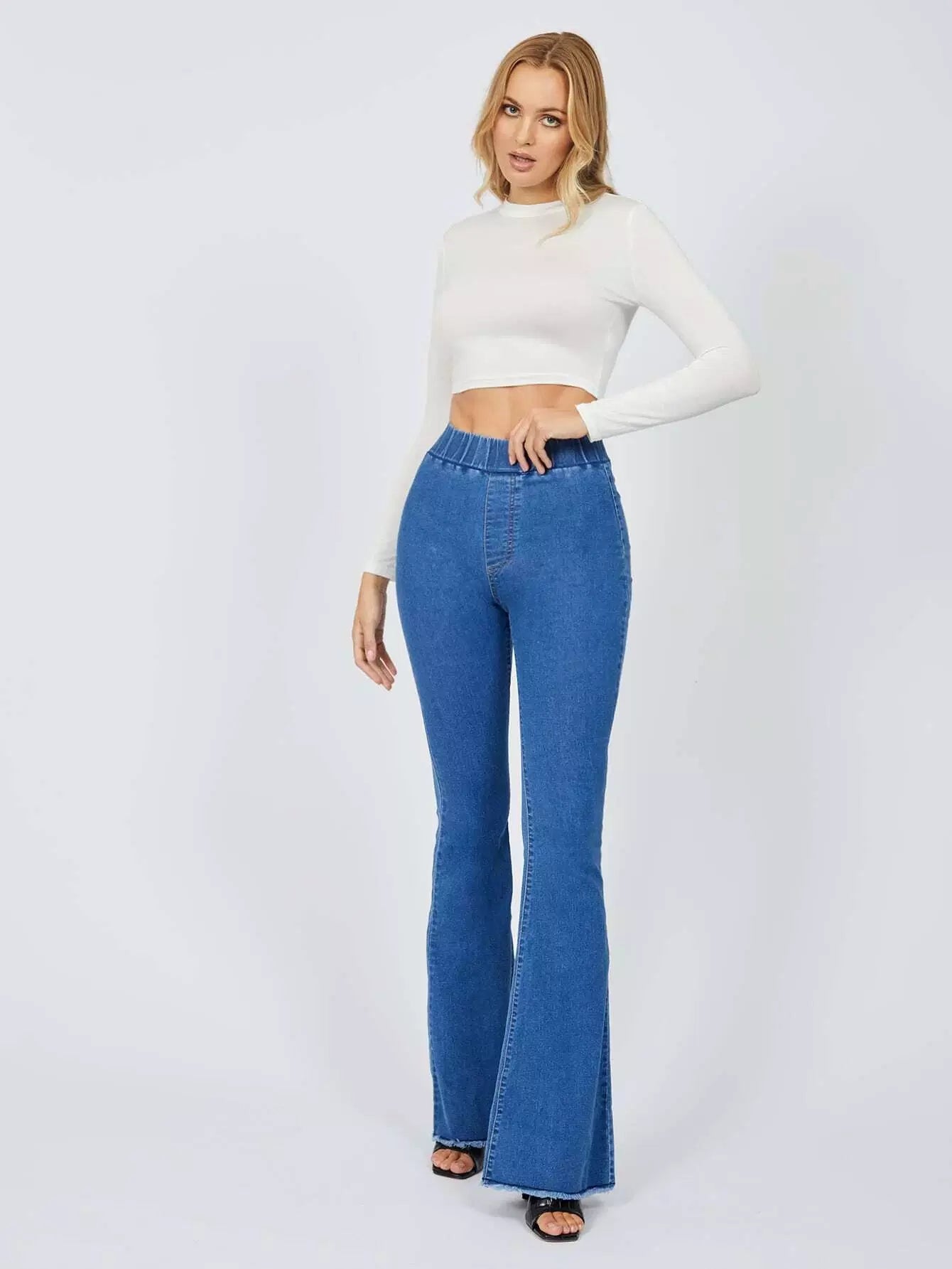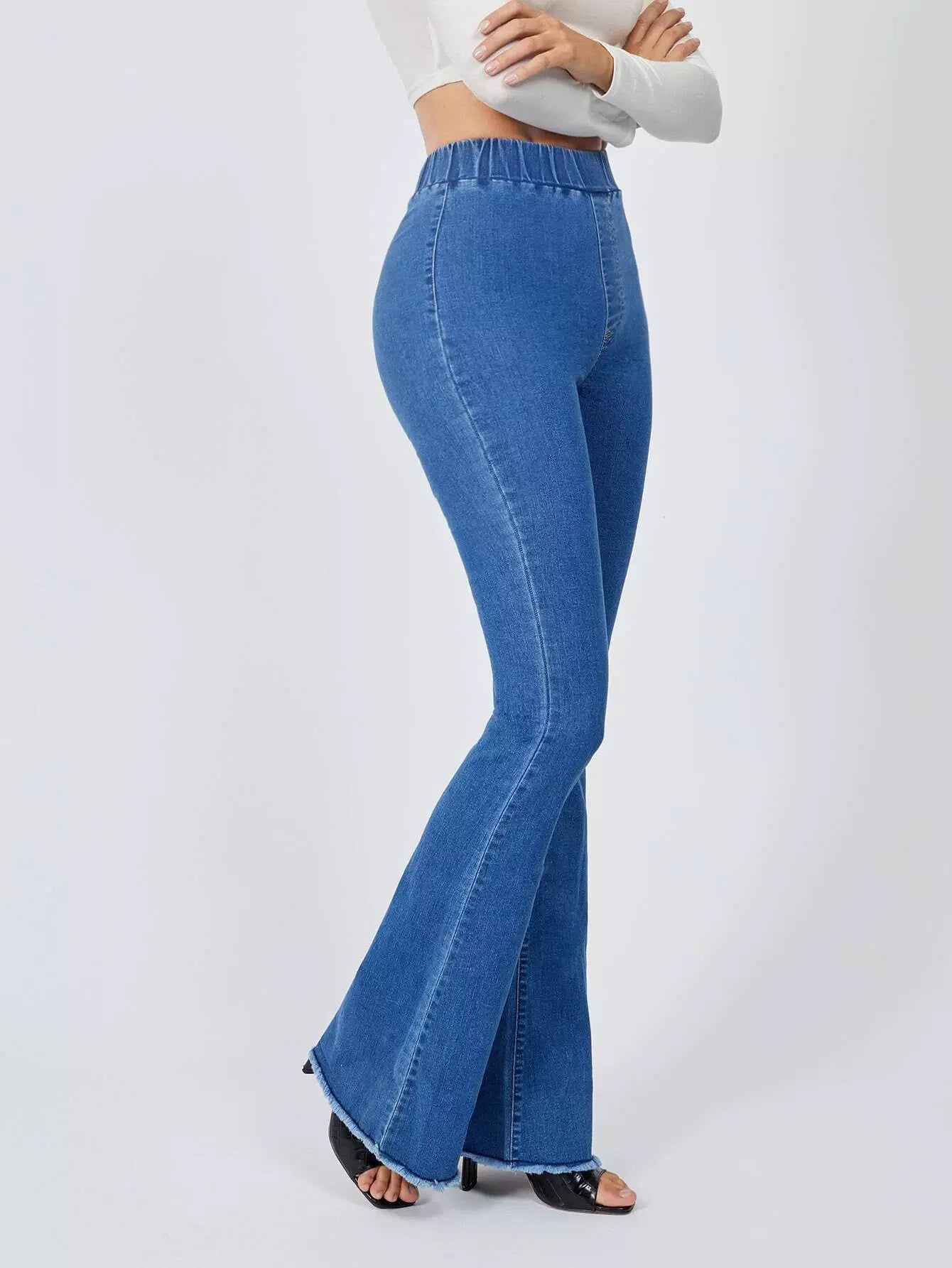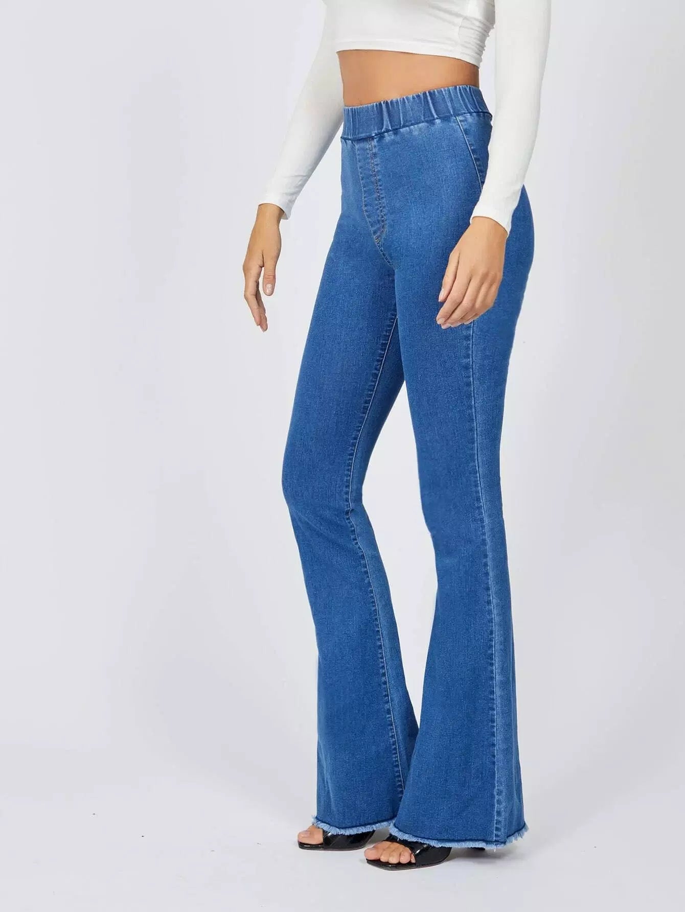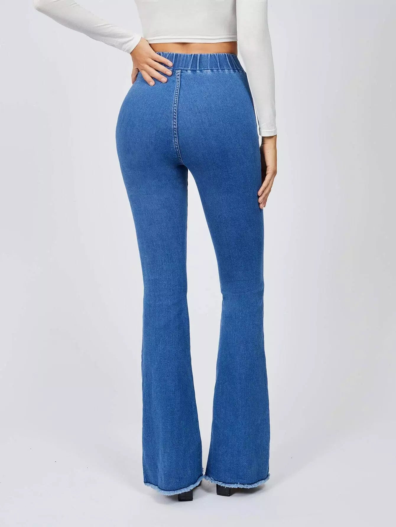 بنطال جينز بقصة واسعة وخصر مطاطي وحاشية خام