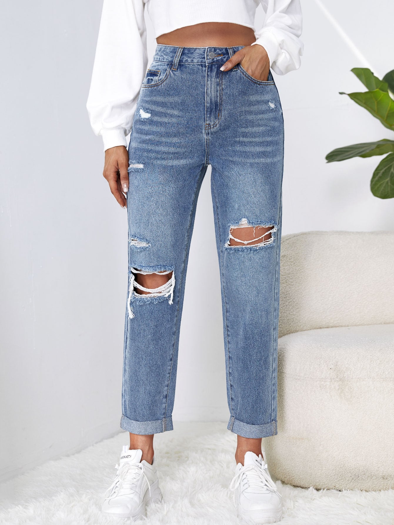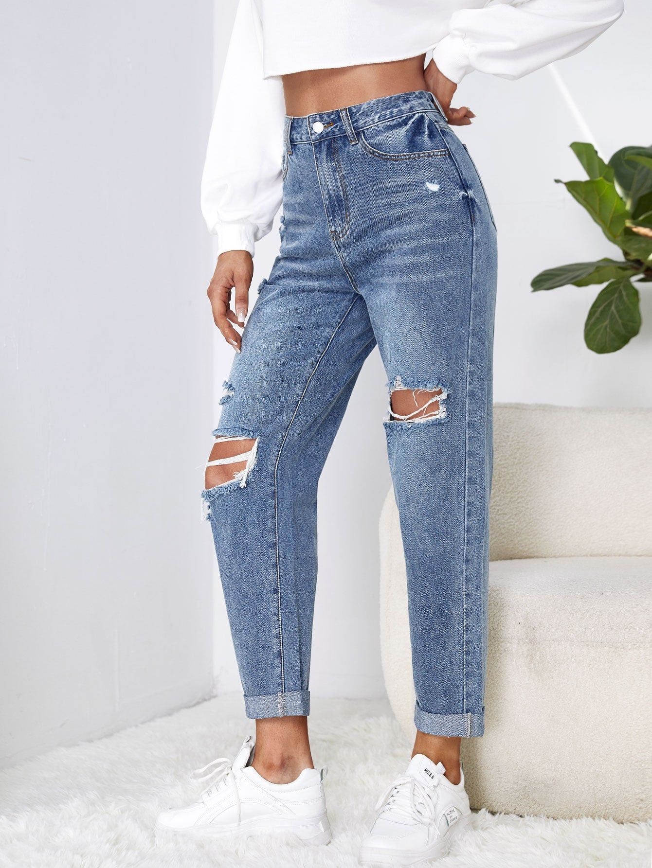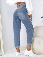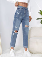 EZwear High Waist Ripped Mom Fit Jeans