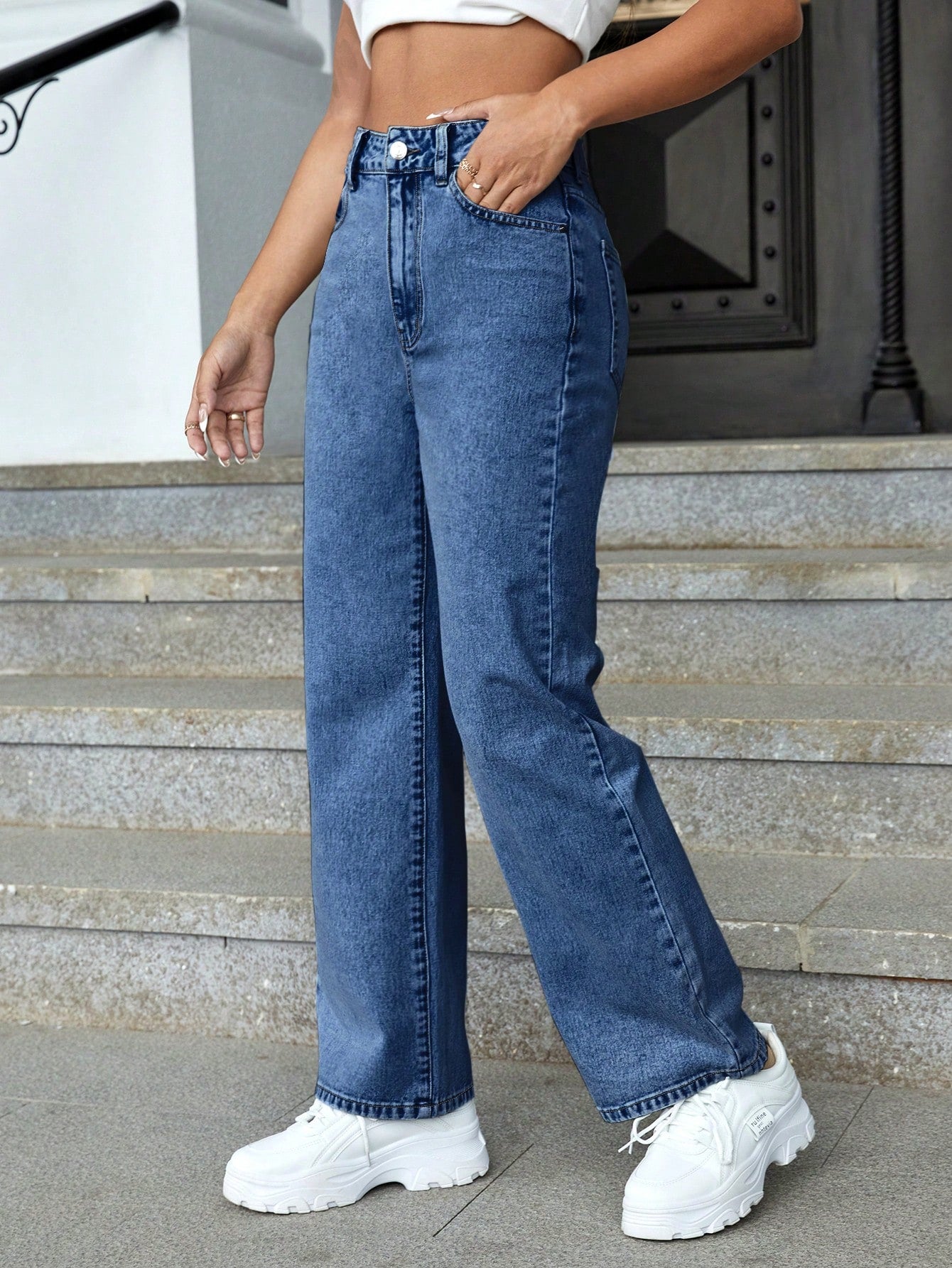 بنطلون جينز صيفي عالي الخصر بساق مستقيمة من EZwear
