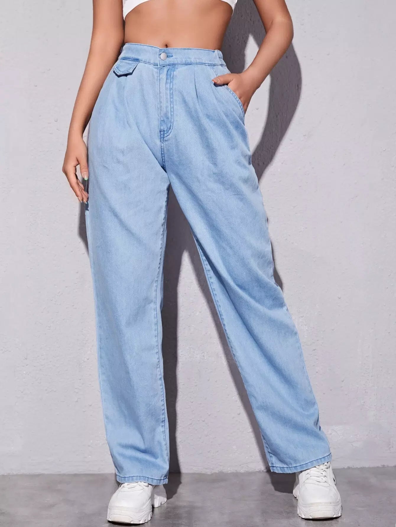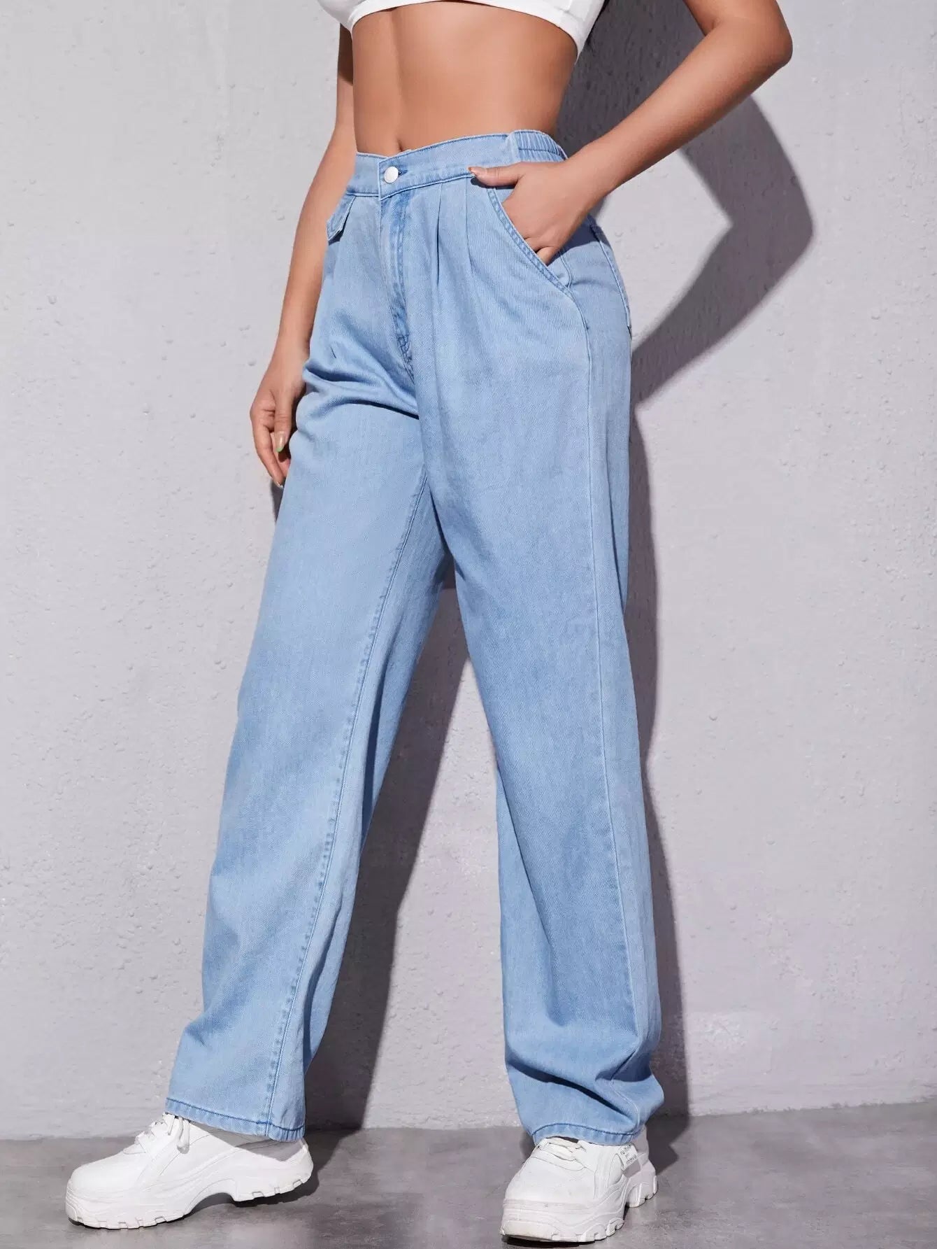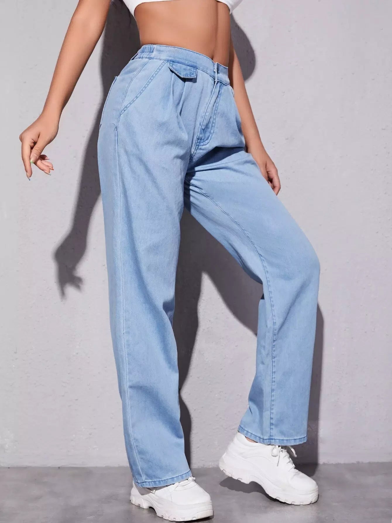 بنطلون جينز مغسول بتفاصيل رفرف