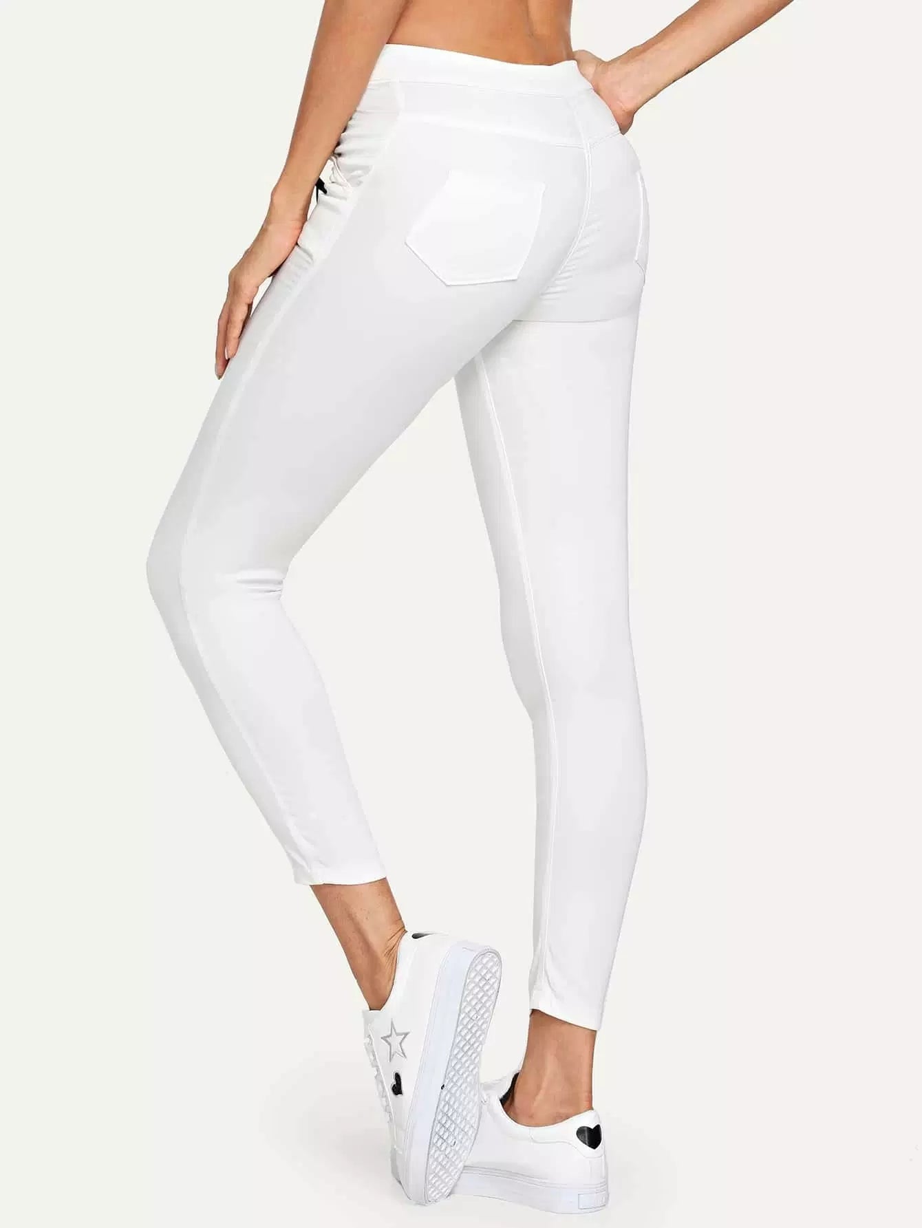 بنطال جينز جينز سكيني ضيق بجيب مطاطي عالي التمدد