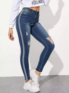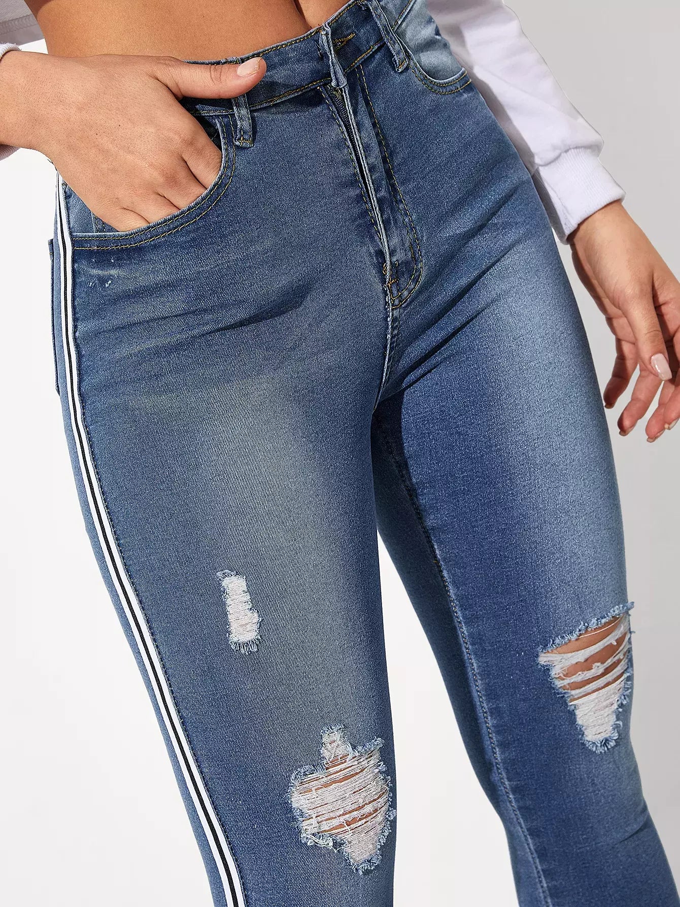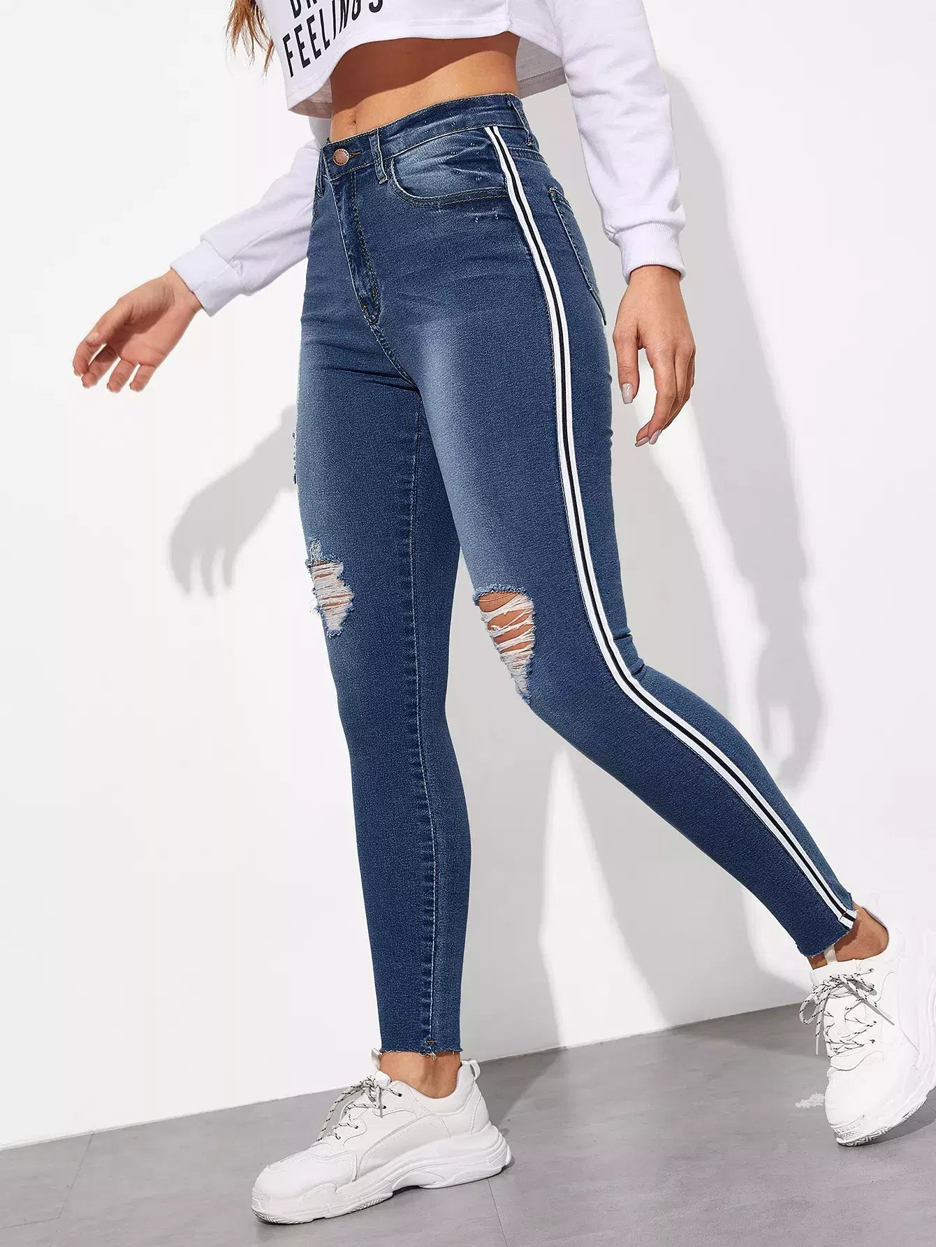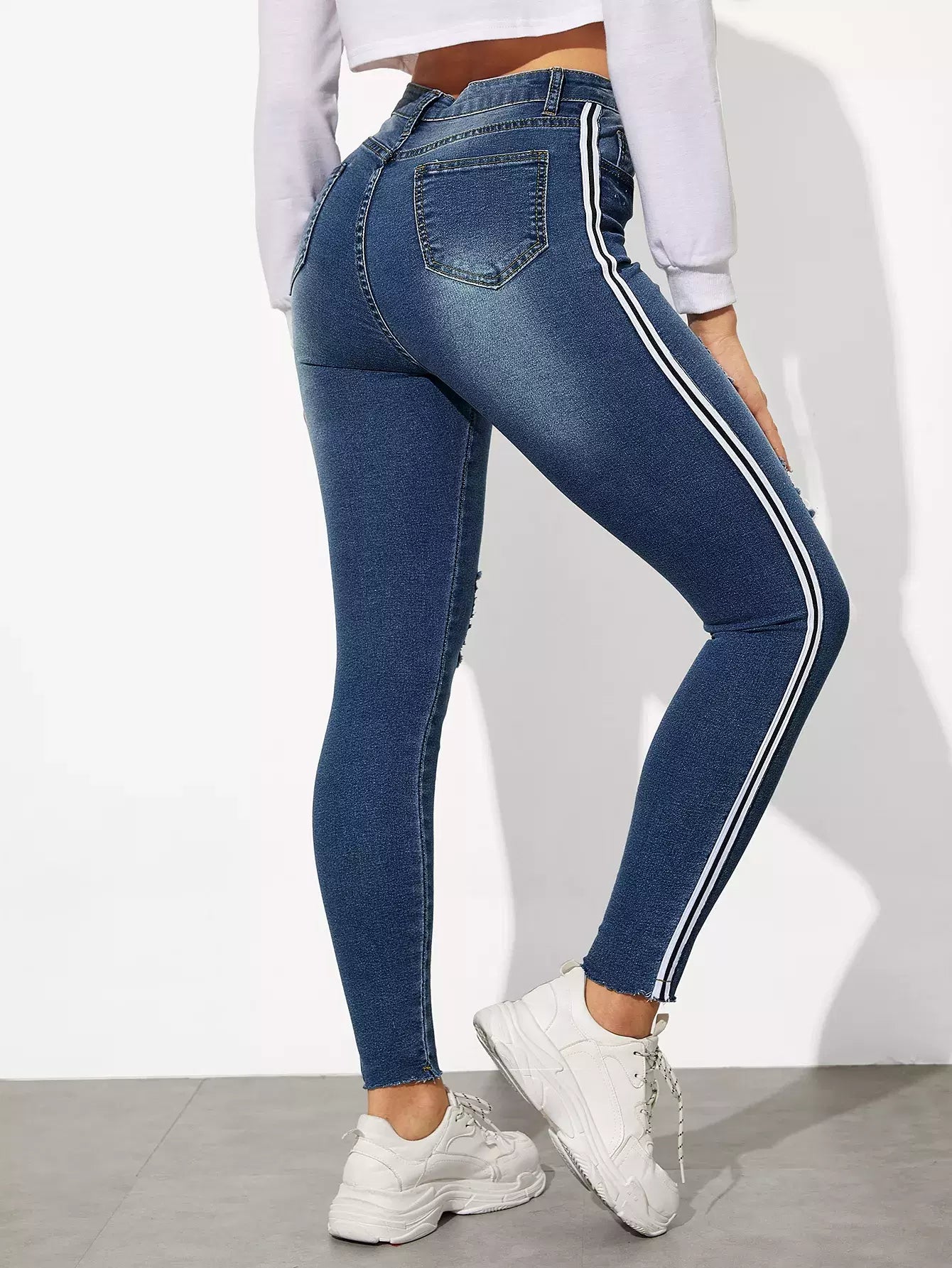بنطلون ضيق ضيق بشريط جانبي مطاطي عالي التمدد