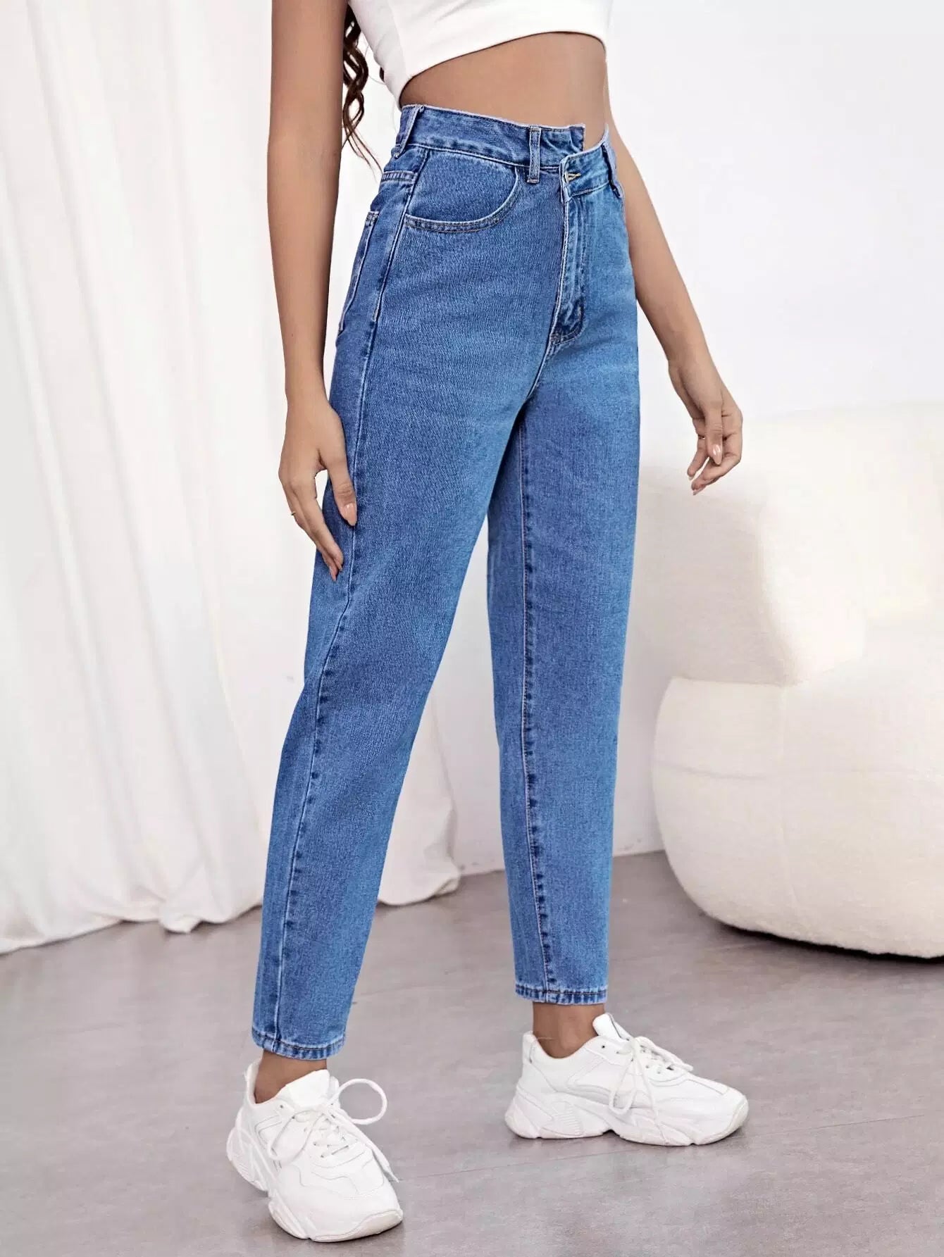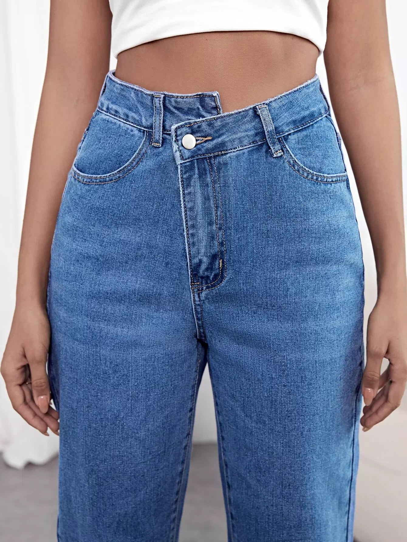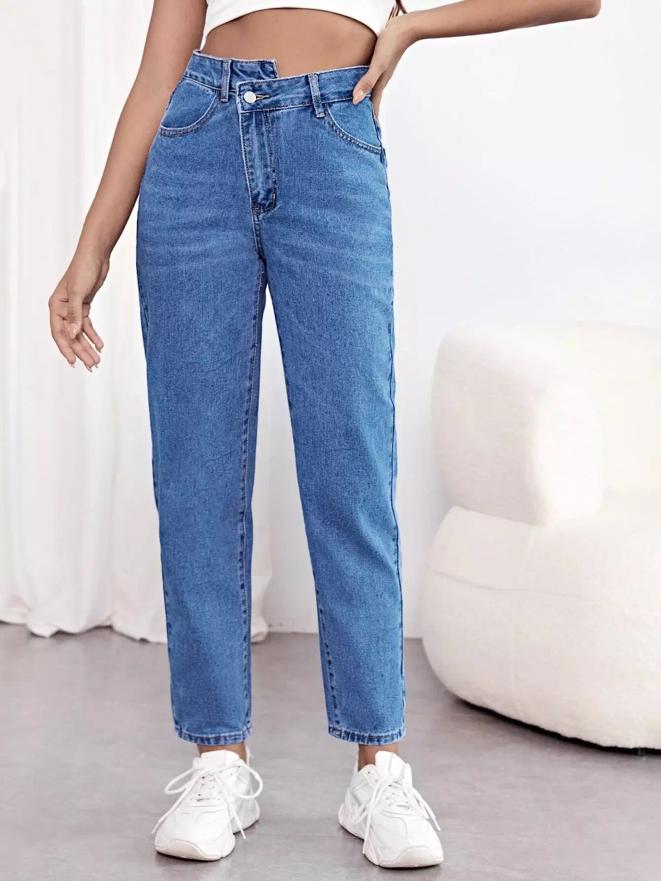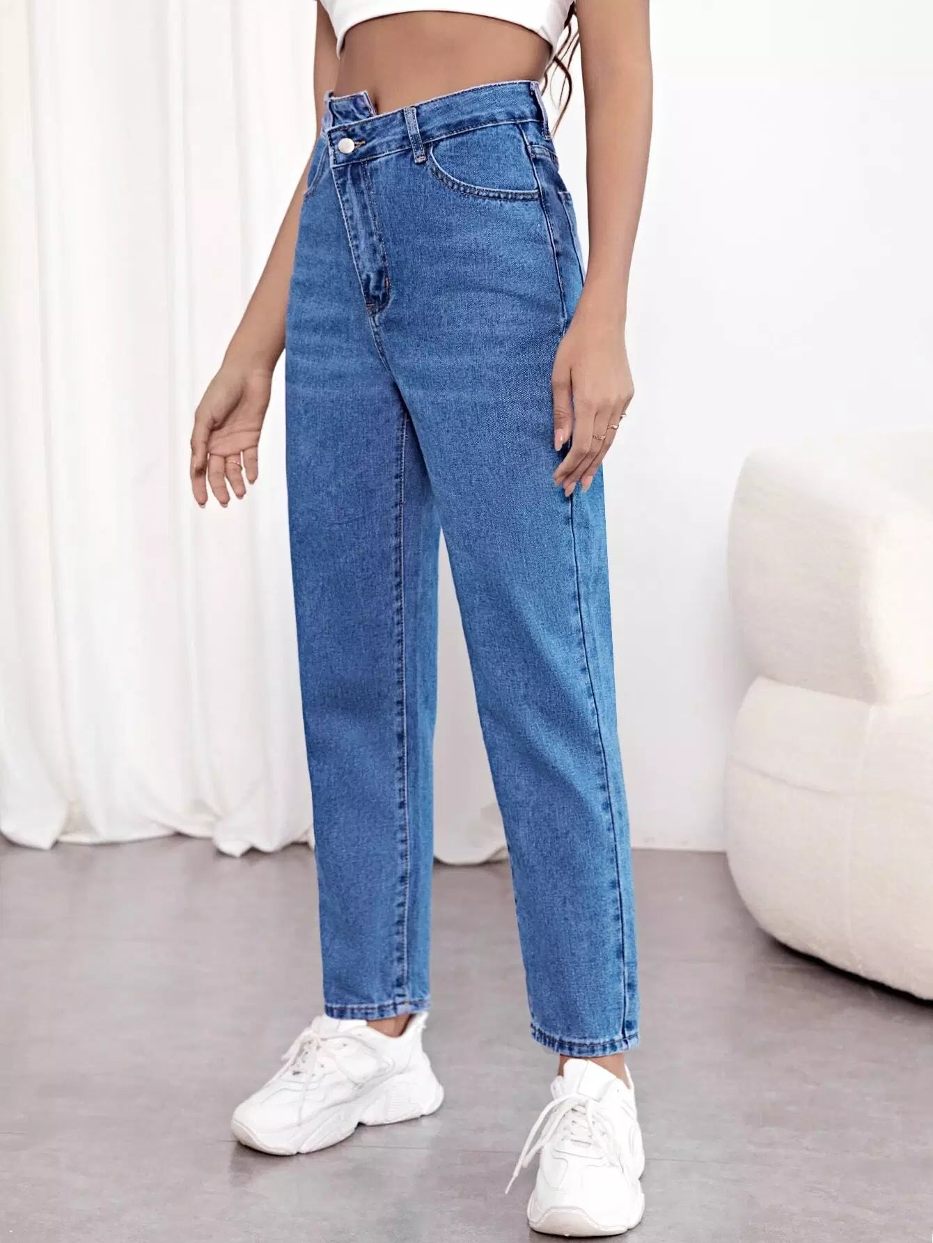 بنطلون جينز بخصر عالي الخصر بنقشة القطط