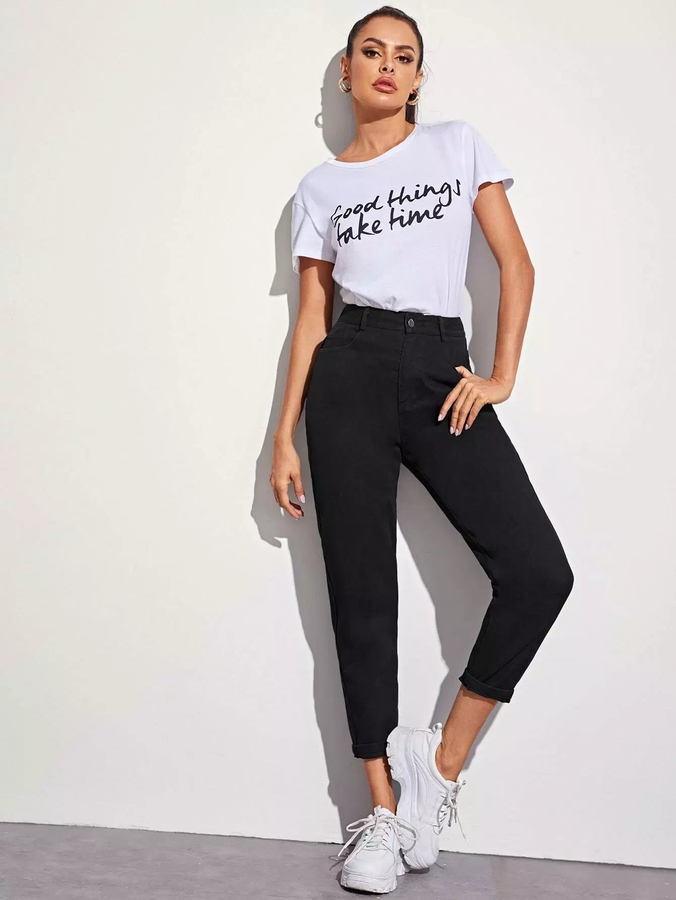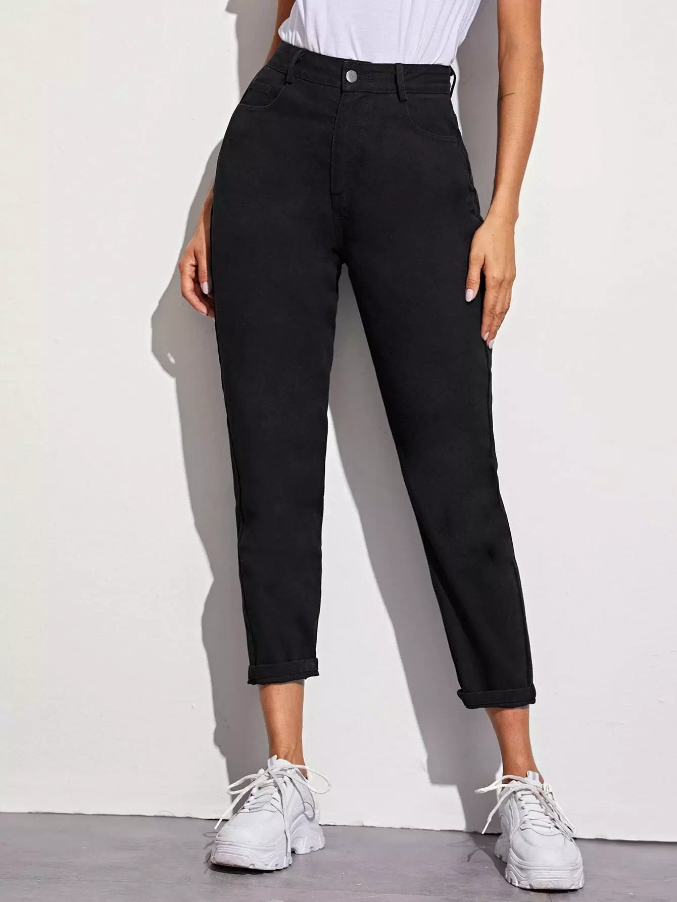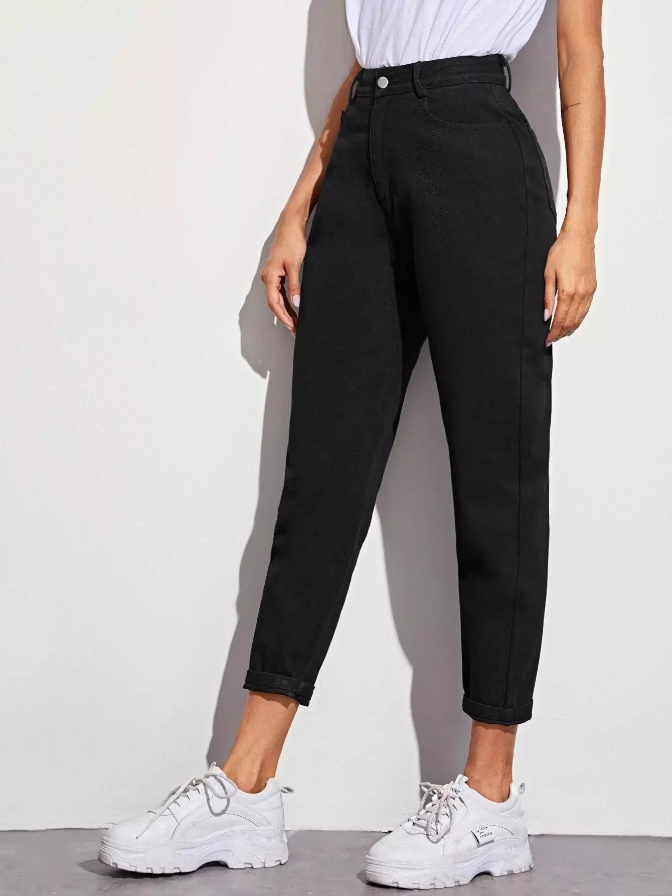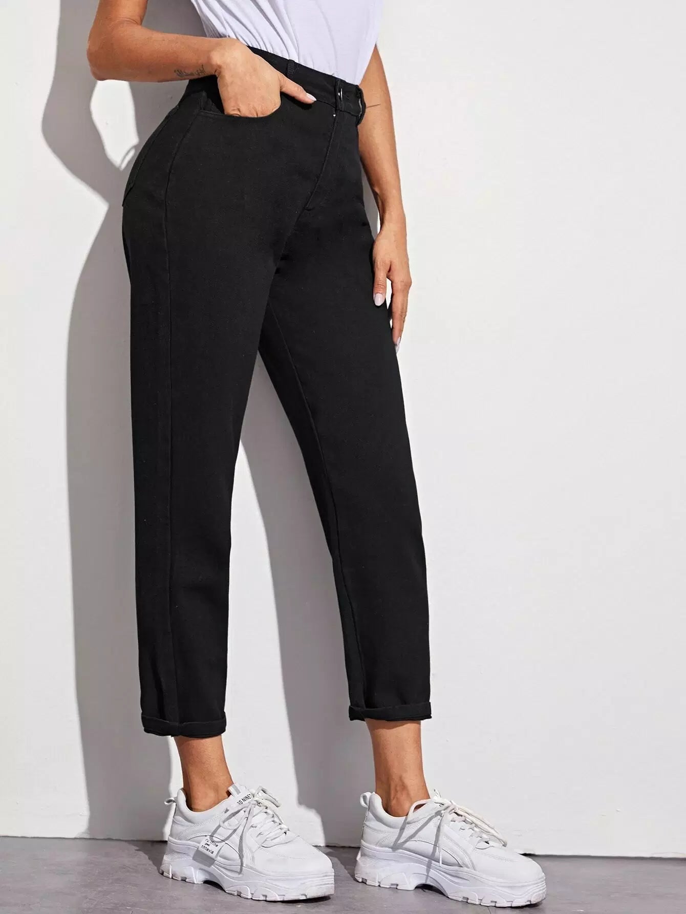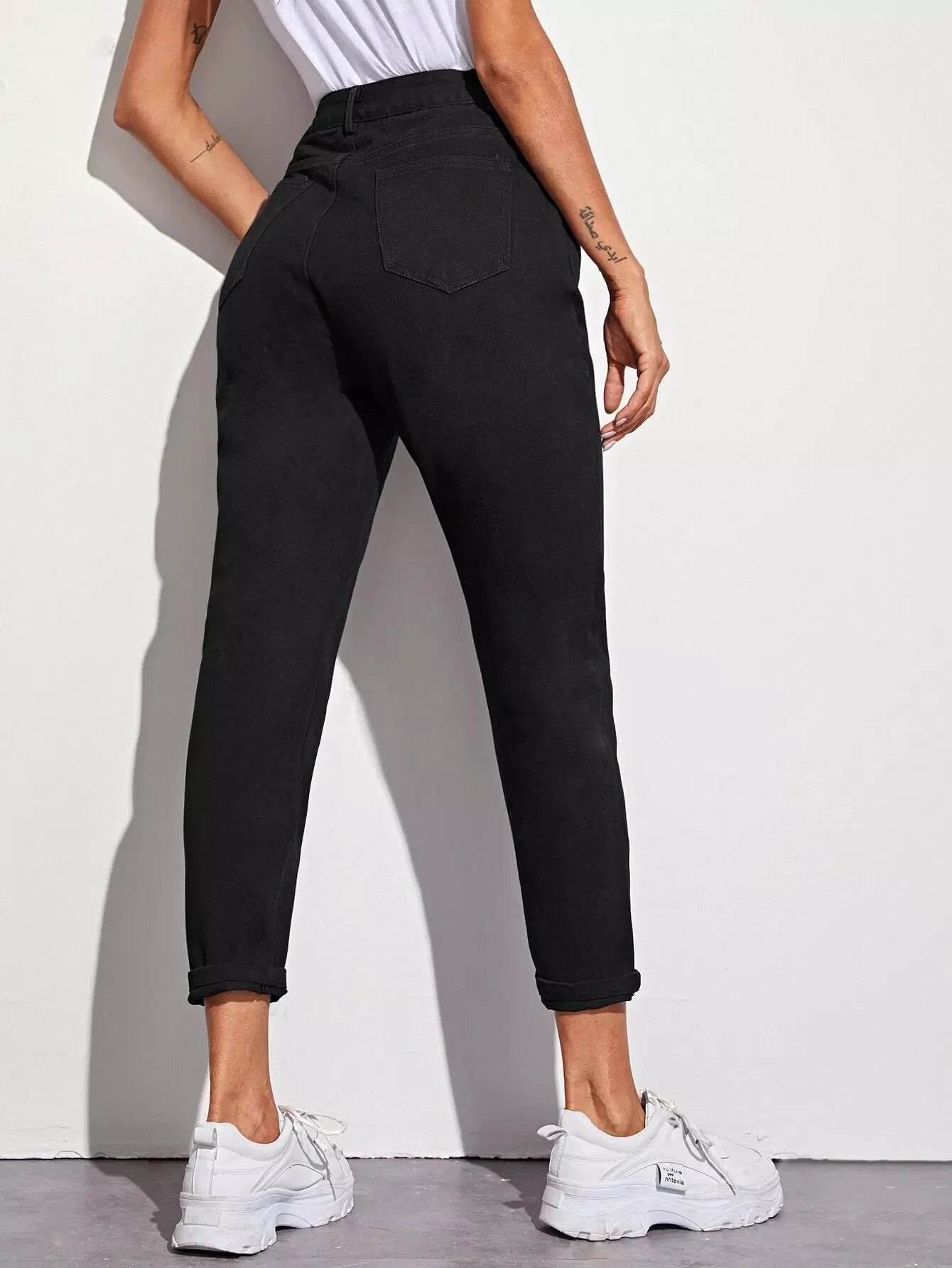 بنطلون جينز قصير بخصر عالٍ مقصوص من الجزر