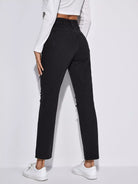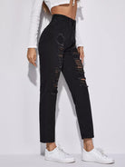 بنطلون جينز بخصر عالٍ ممزق بساق مستقيمة