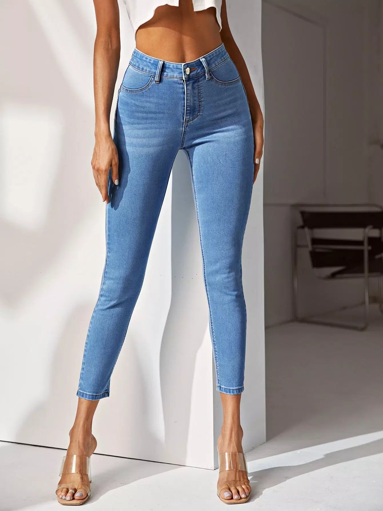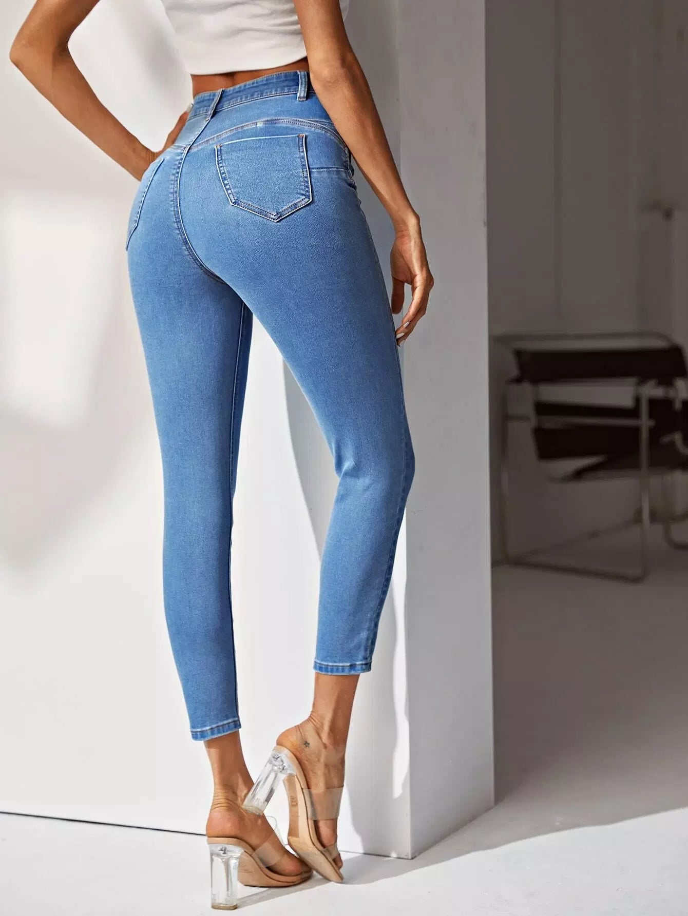 النساء - بنطال جينز قصير ضيق عالي الخصر