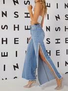 High-Waist Slit-Side Wide-Leg Jeans