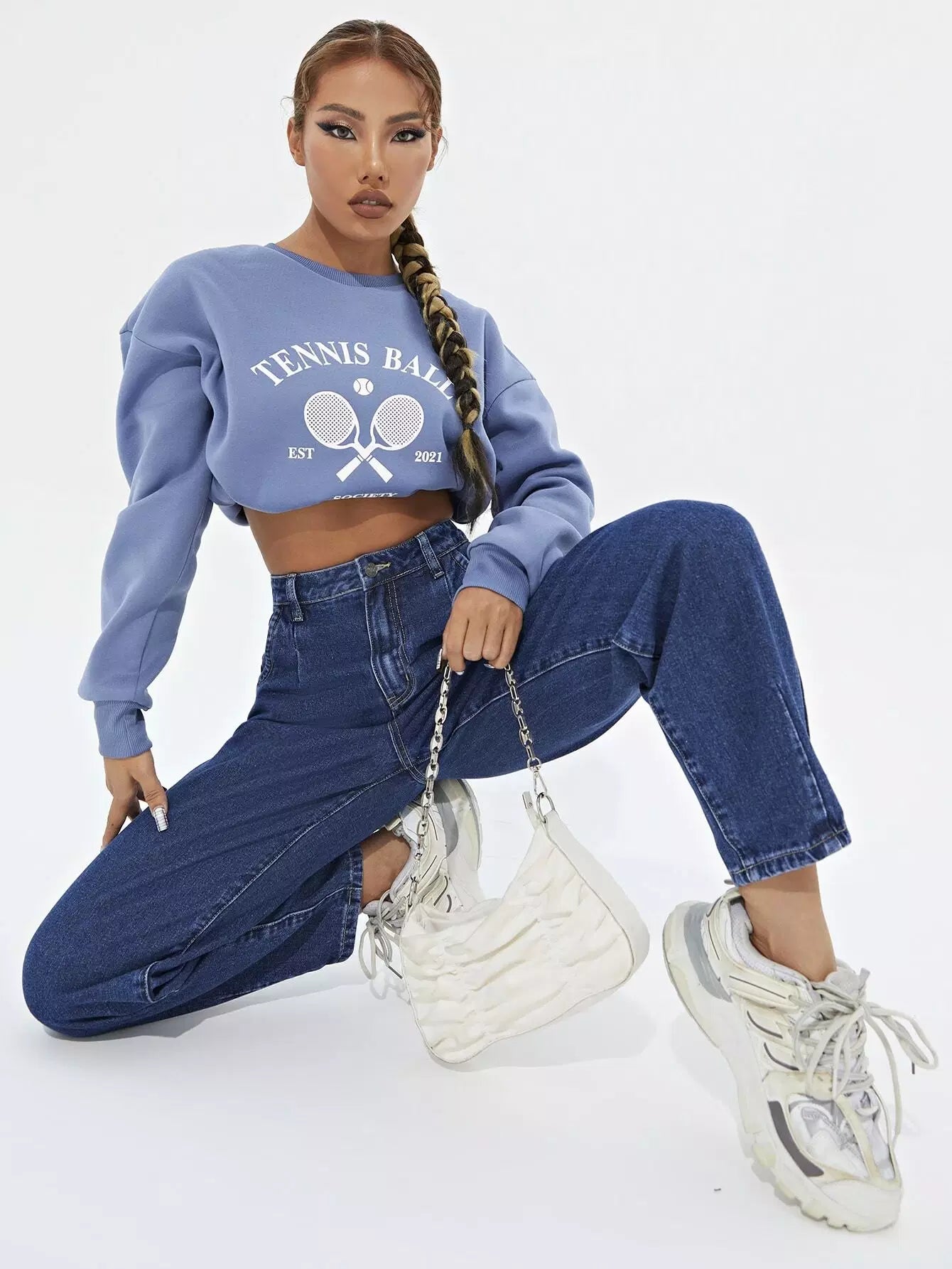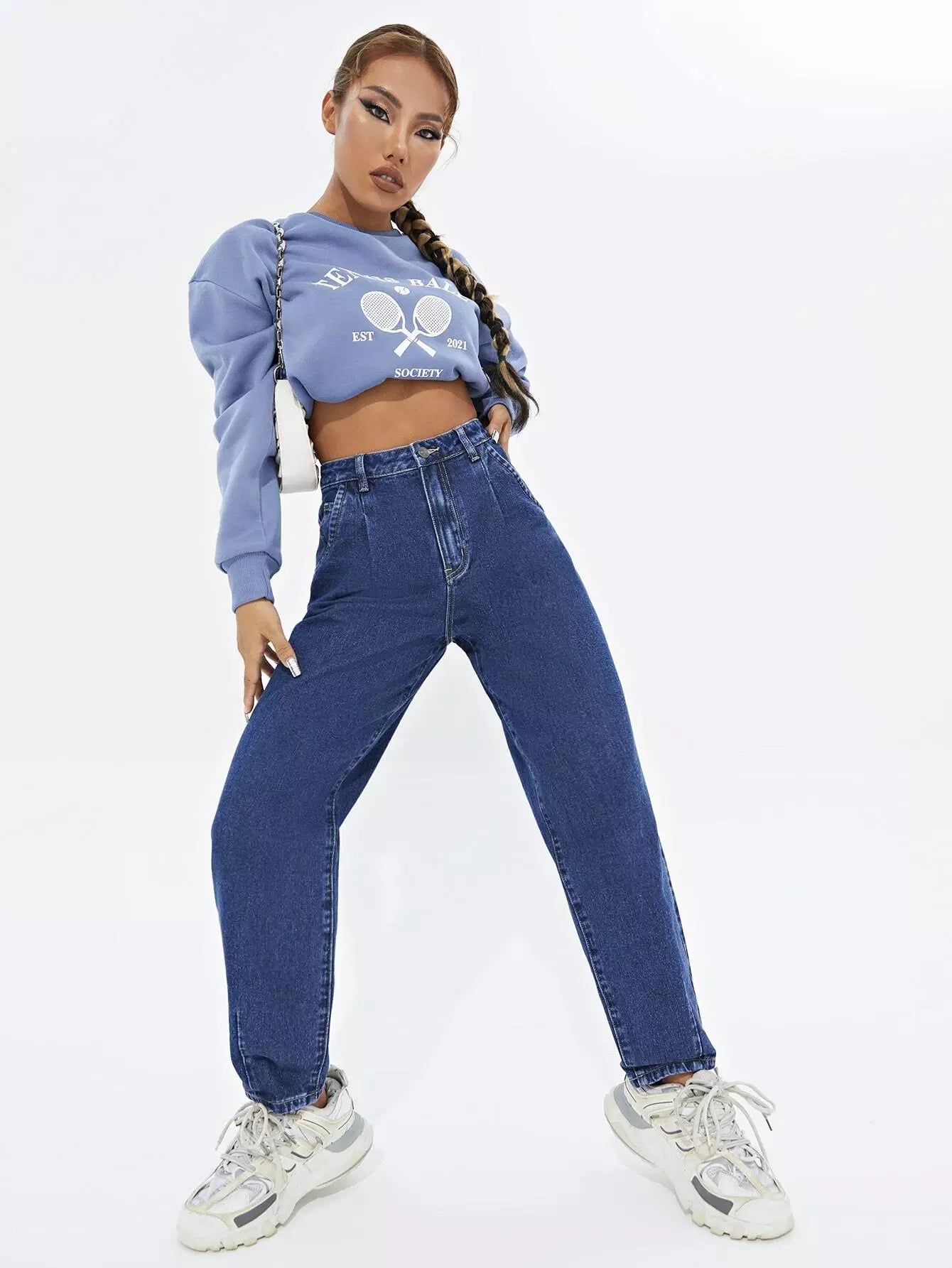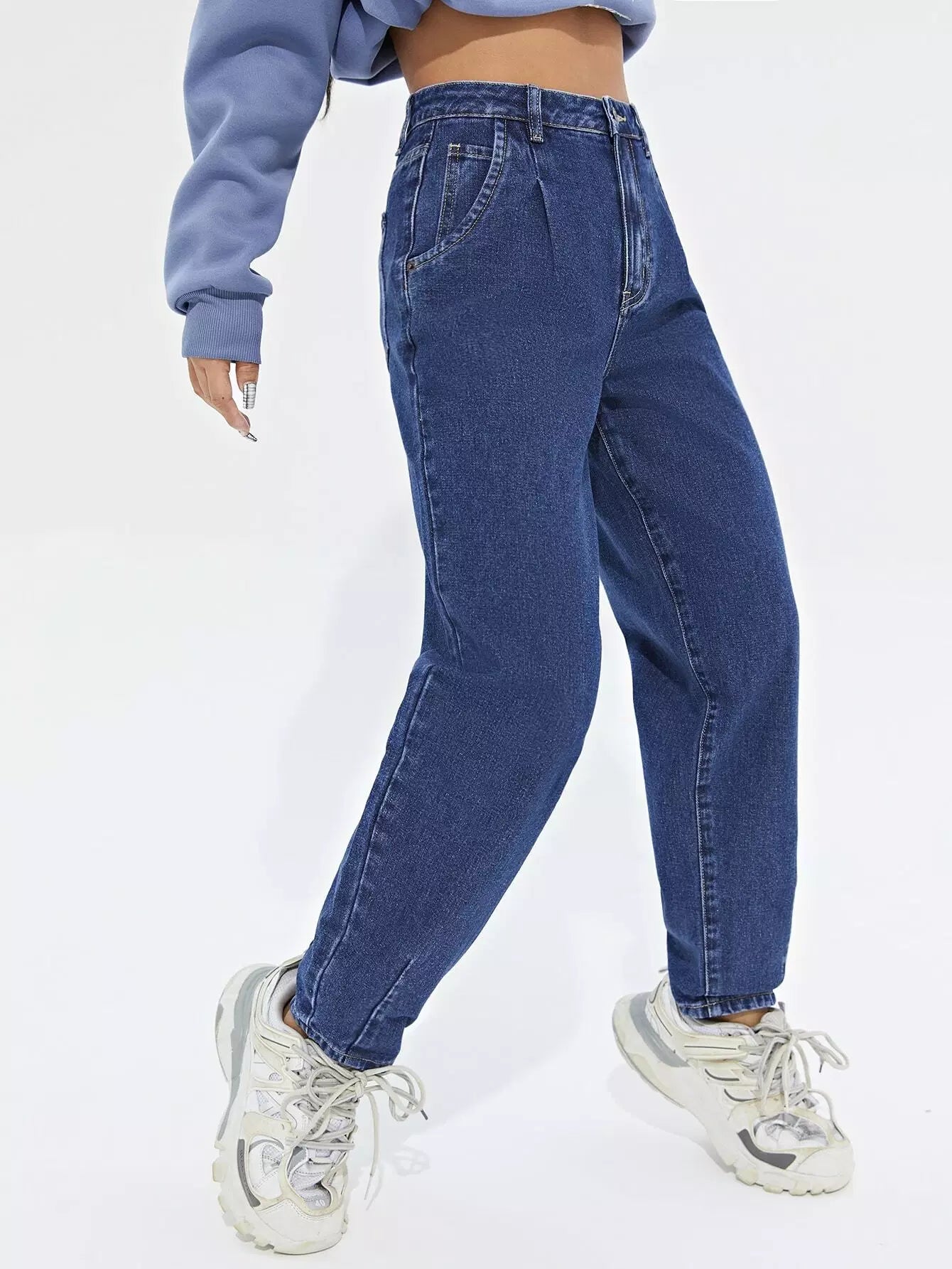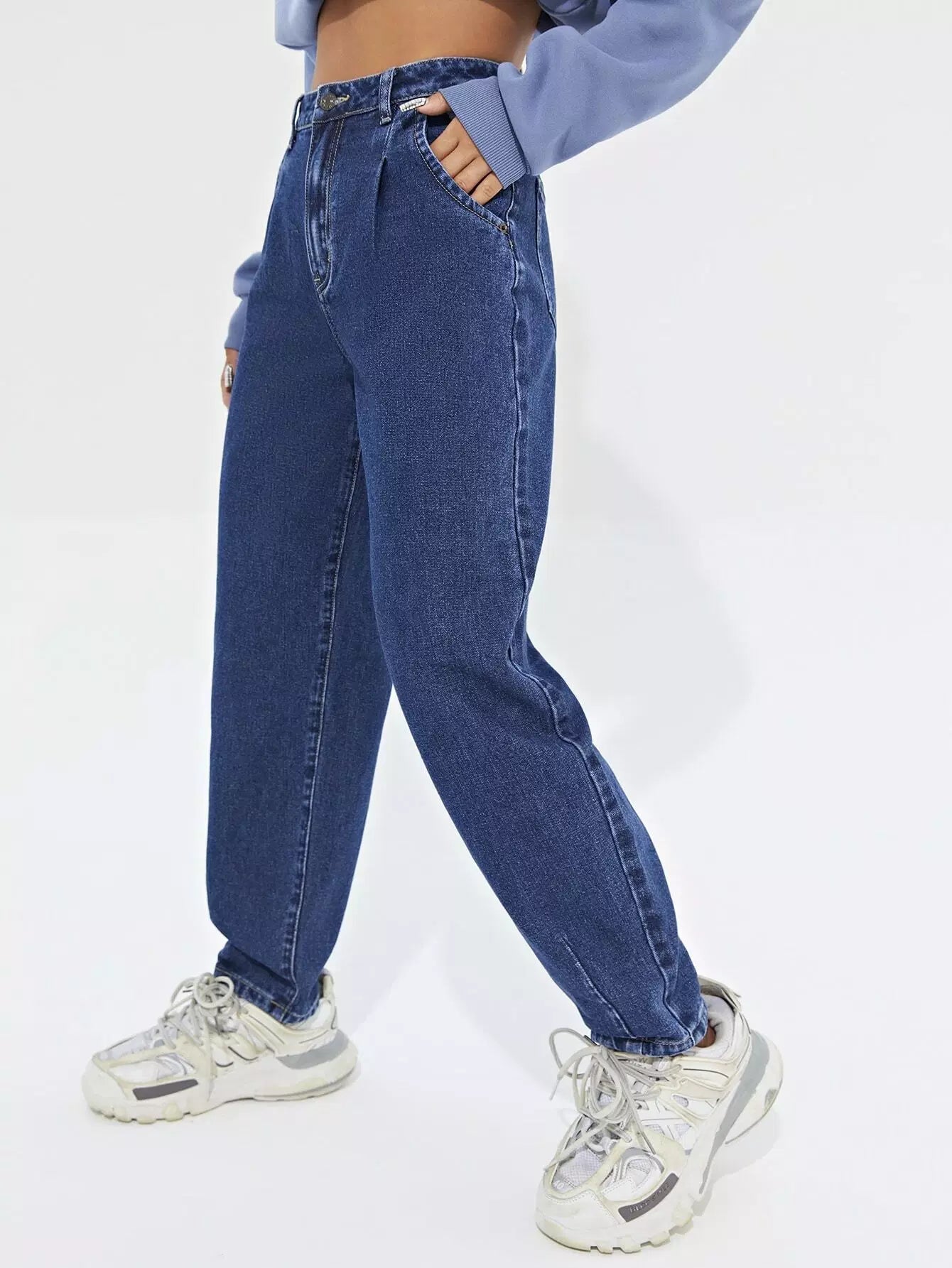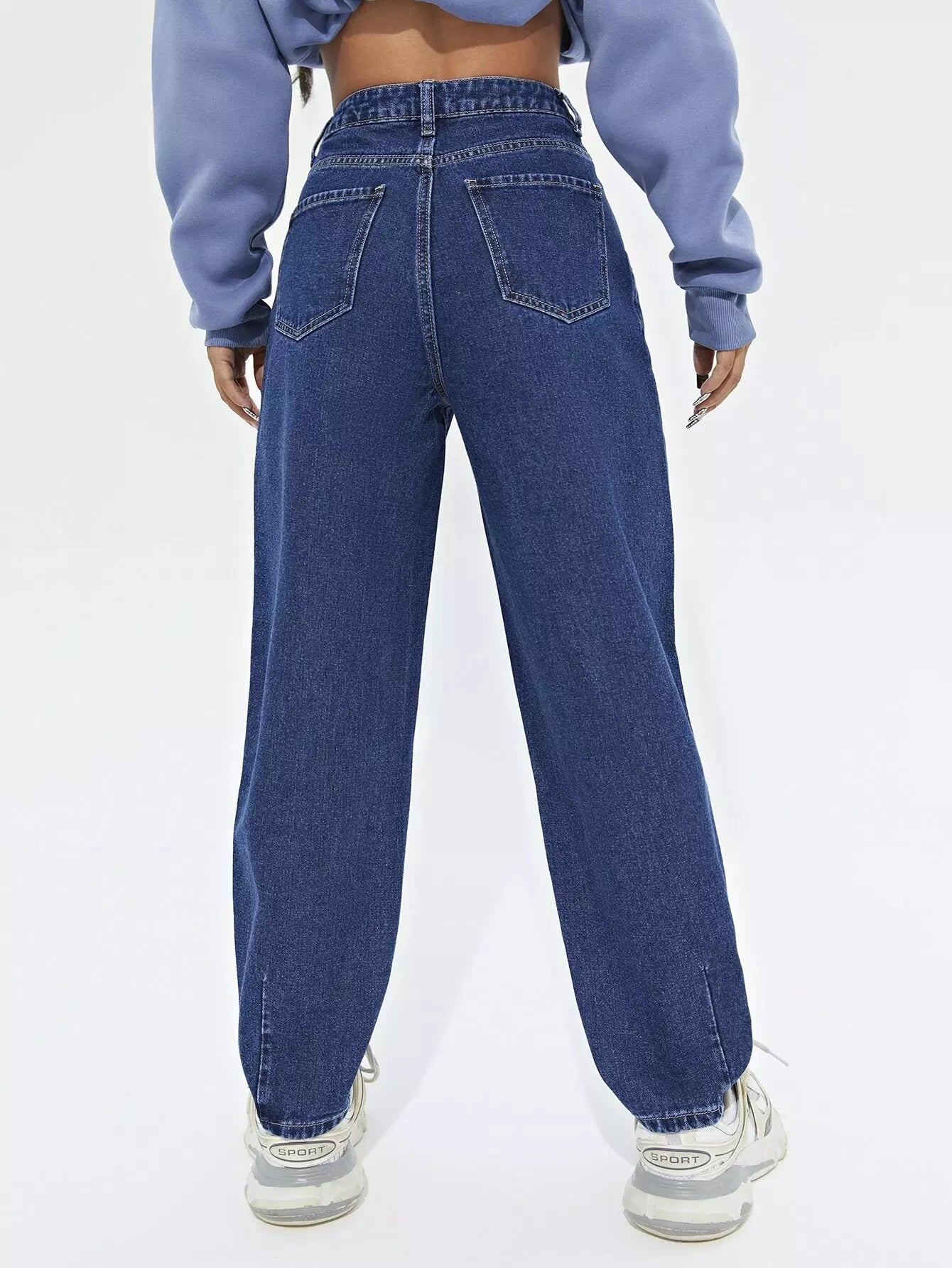 بنطلون جينز بجيب مائل مستقيم عالي الخصر