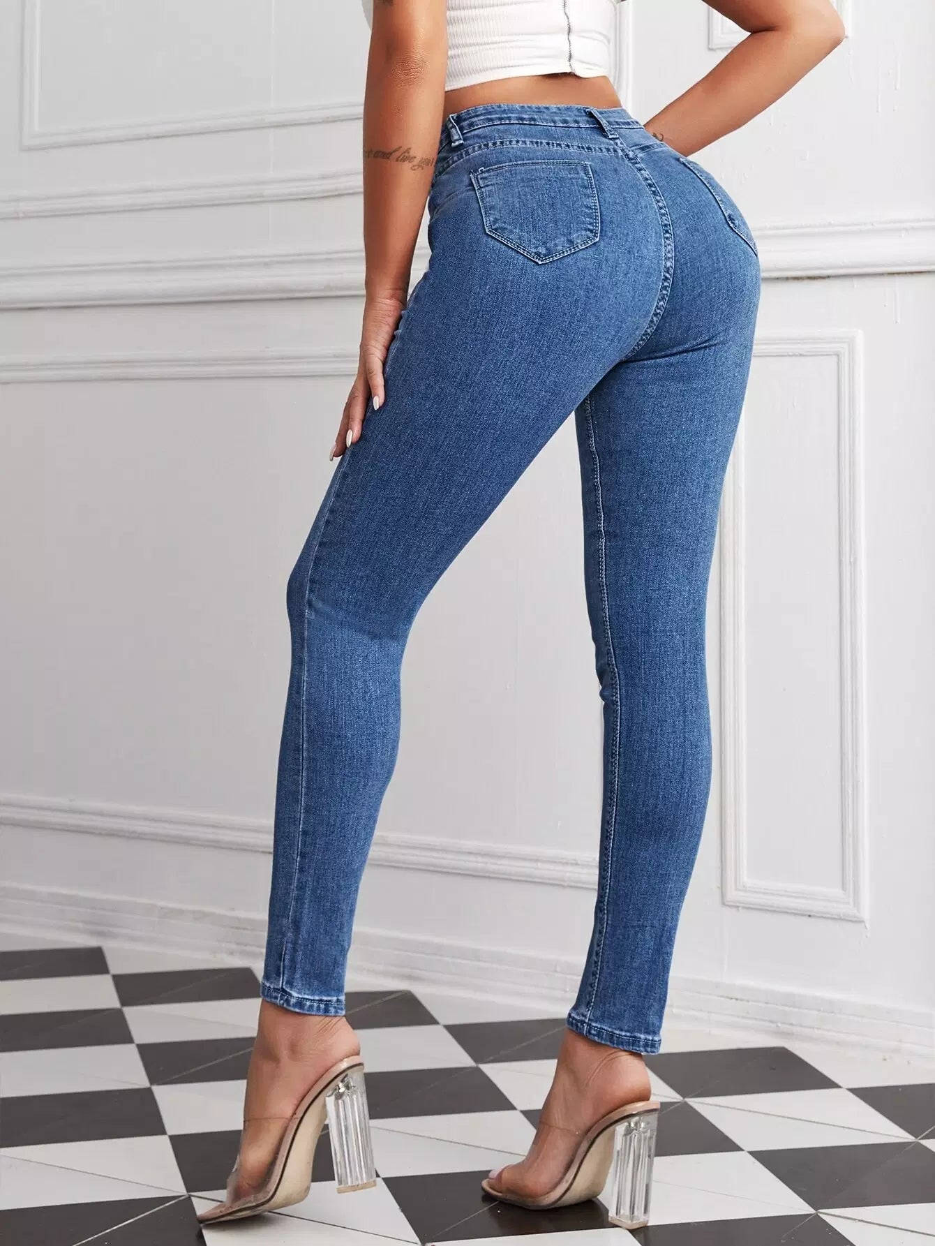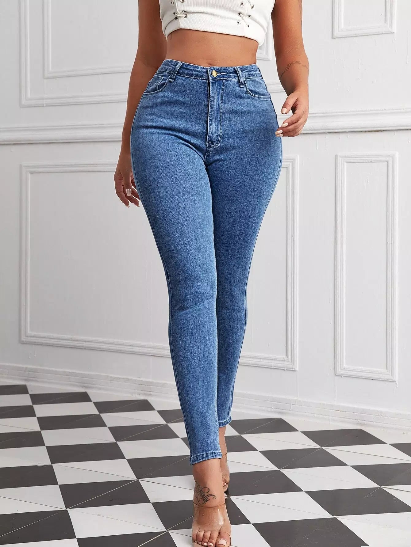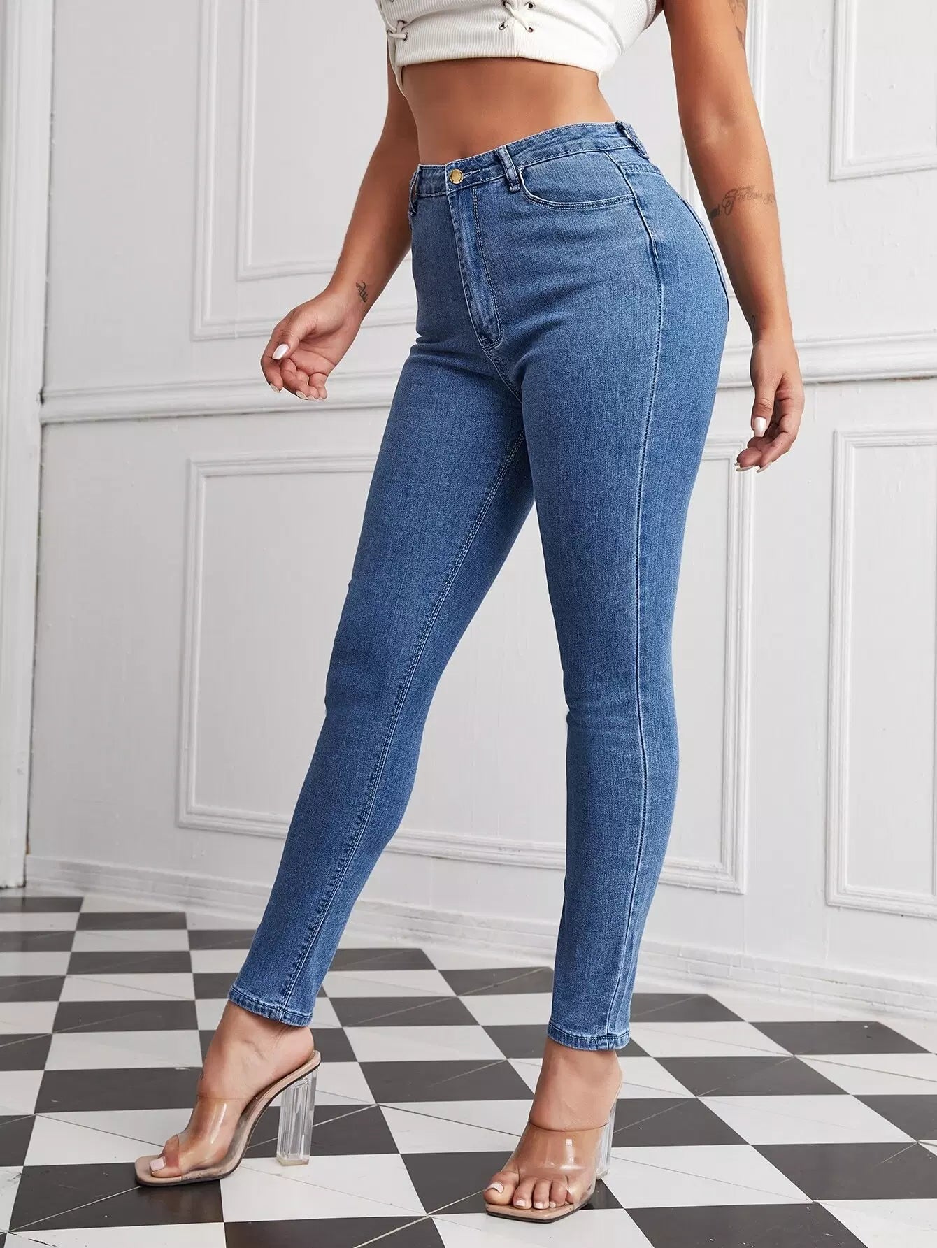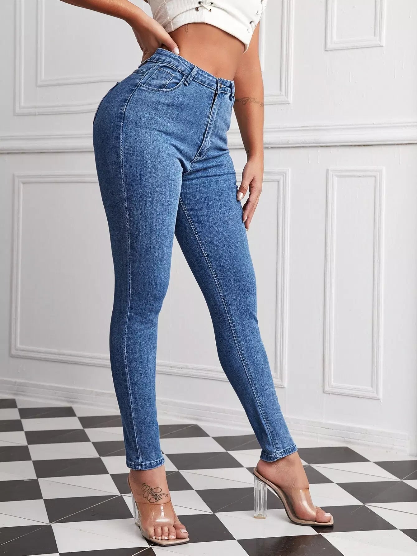 بنطلون جينز سكيني ضيق عالي التمدد عالي الارتفاع