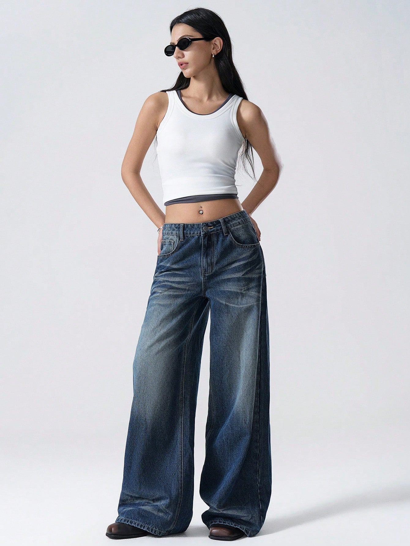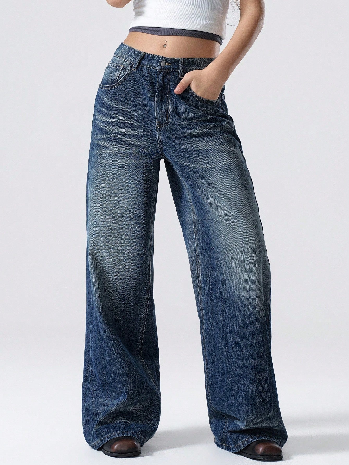 بنطلون جينز نسائي كاجوال بتصميم بسيط وجيوب أمامية بأزرار من LYSMO، مناسب للارتداء اليومي