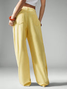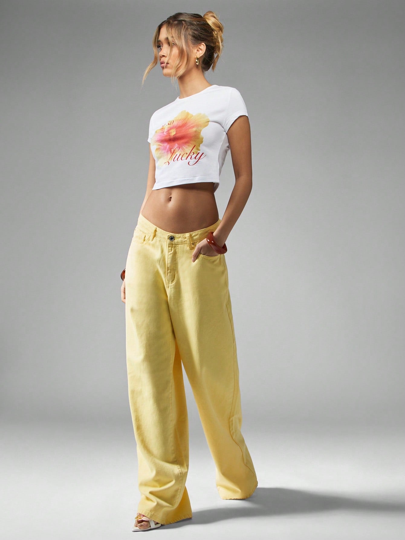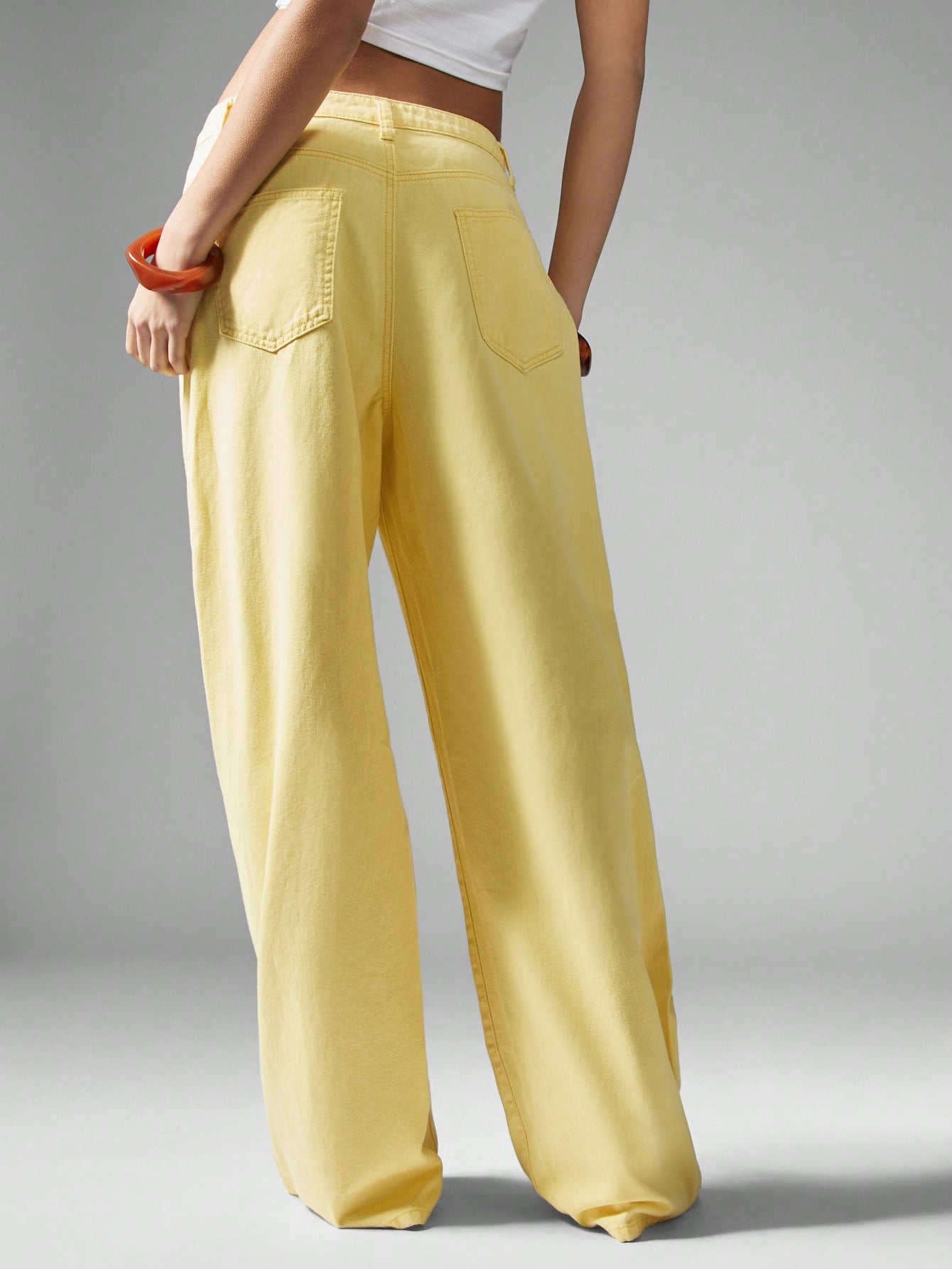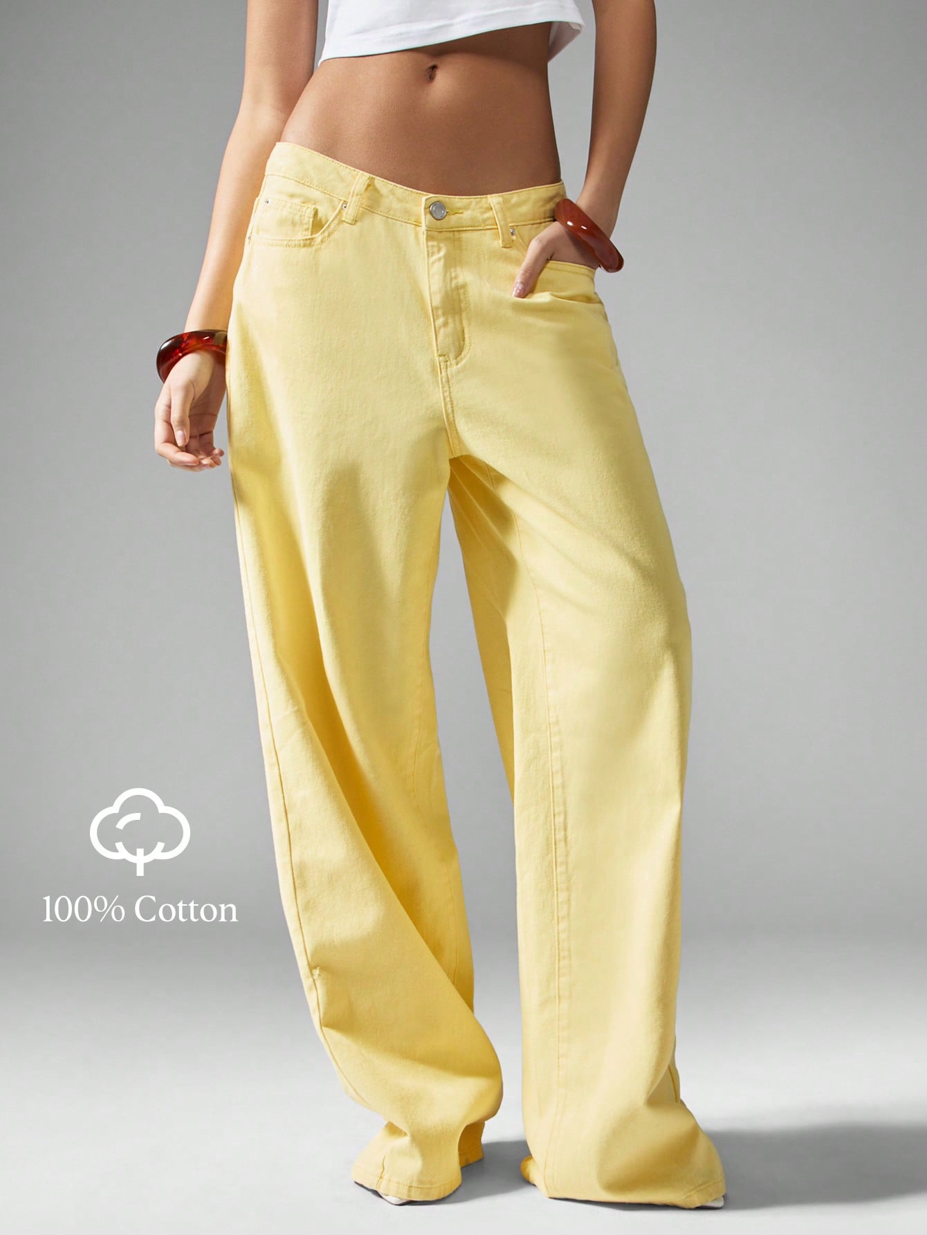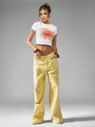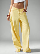 بنطلون جينز فضفاض واسع الساقين من ميس جايد، بتصميم مستوحى من موضة الألفية الجديدة، بخصر عالٍ، مناسب لفصلي الربيع والصيف، بلون أصفر فاتح.