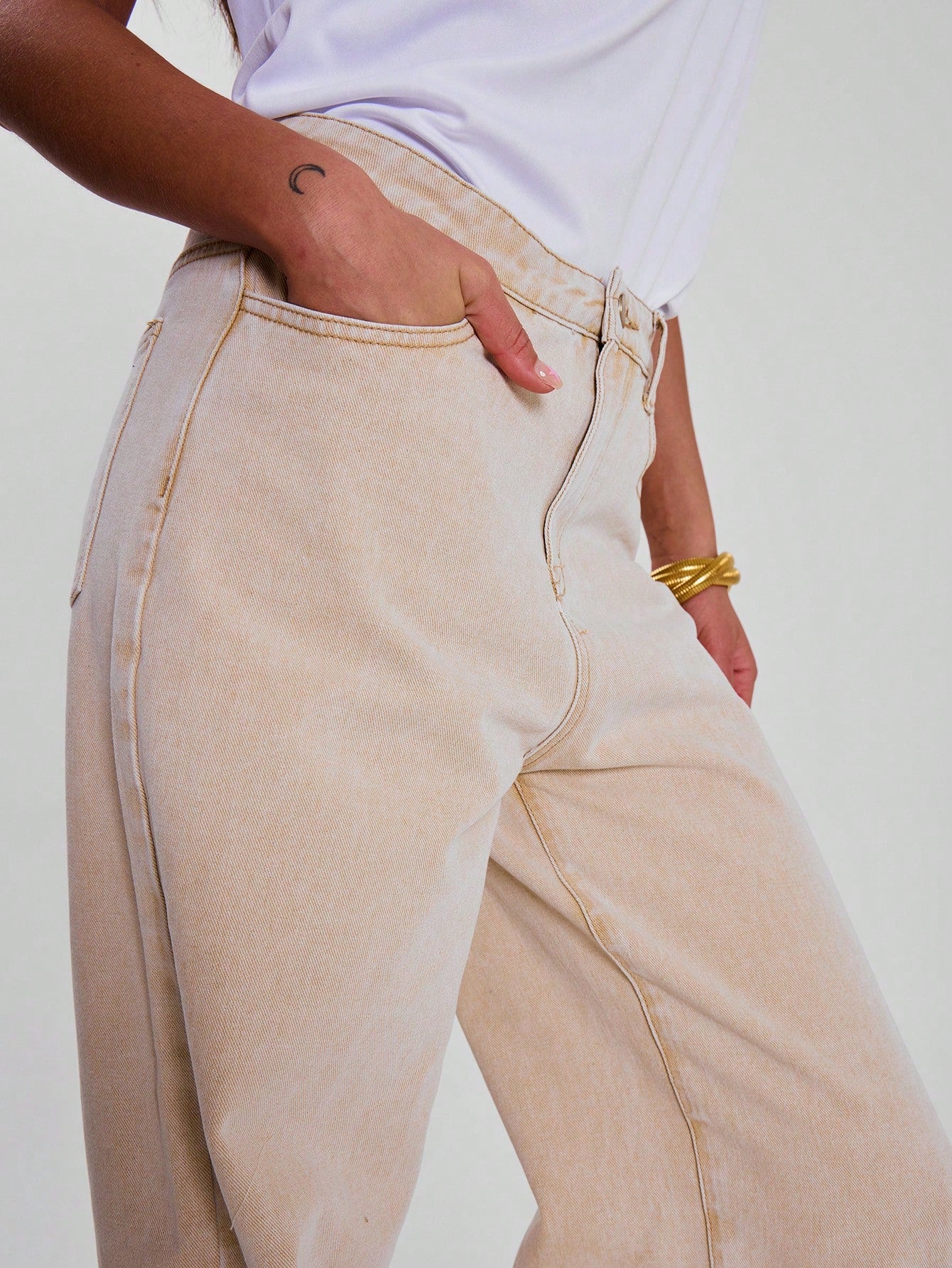MUSERA Mid Rise Contrast Stitch Straight Leg Denim Jeans Only Spring Street Style Y2k 90's Jeans Concert