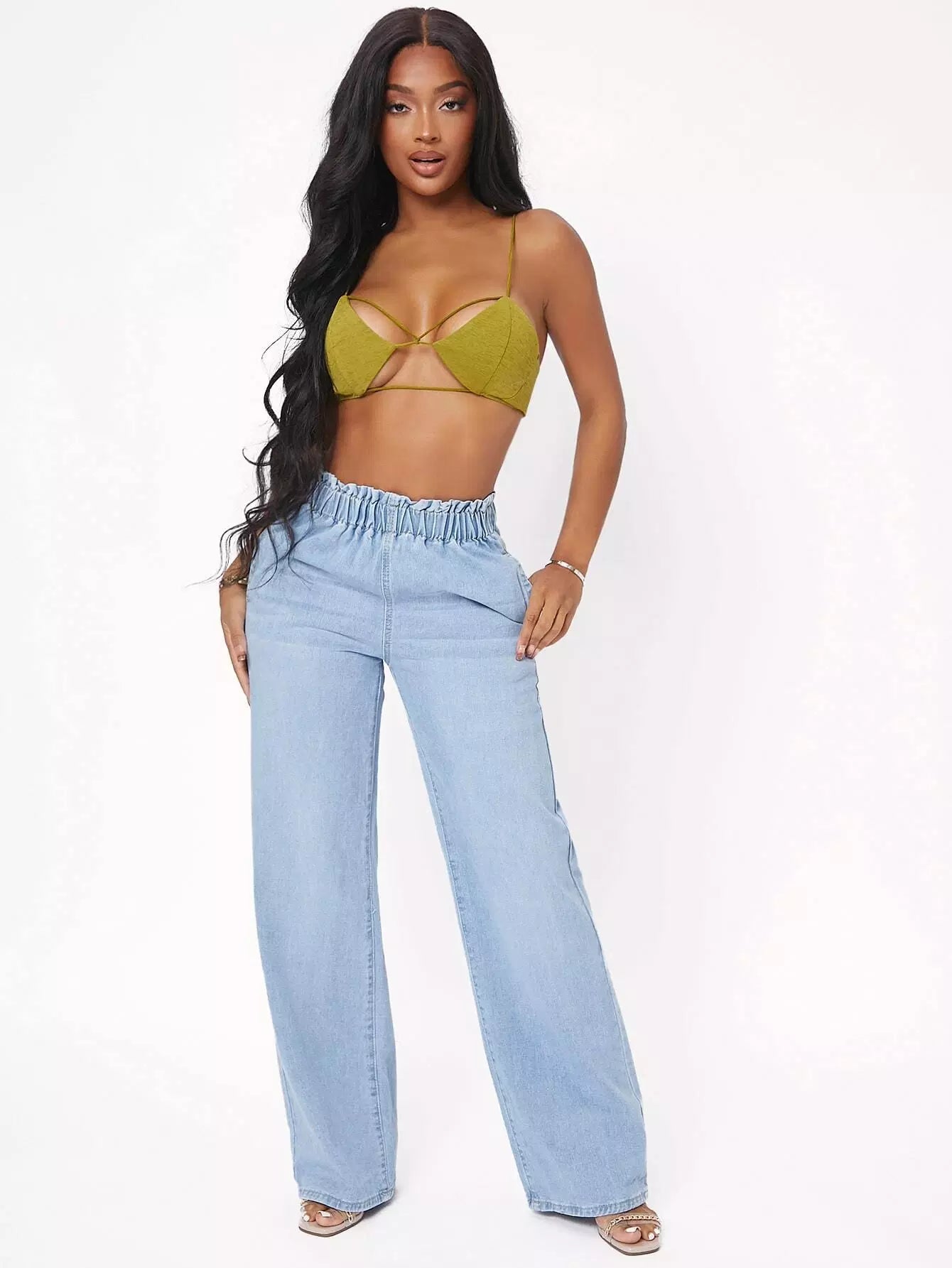 بنطلون جينز خفيف الوزن بخصر مرتفع من Paperbag