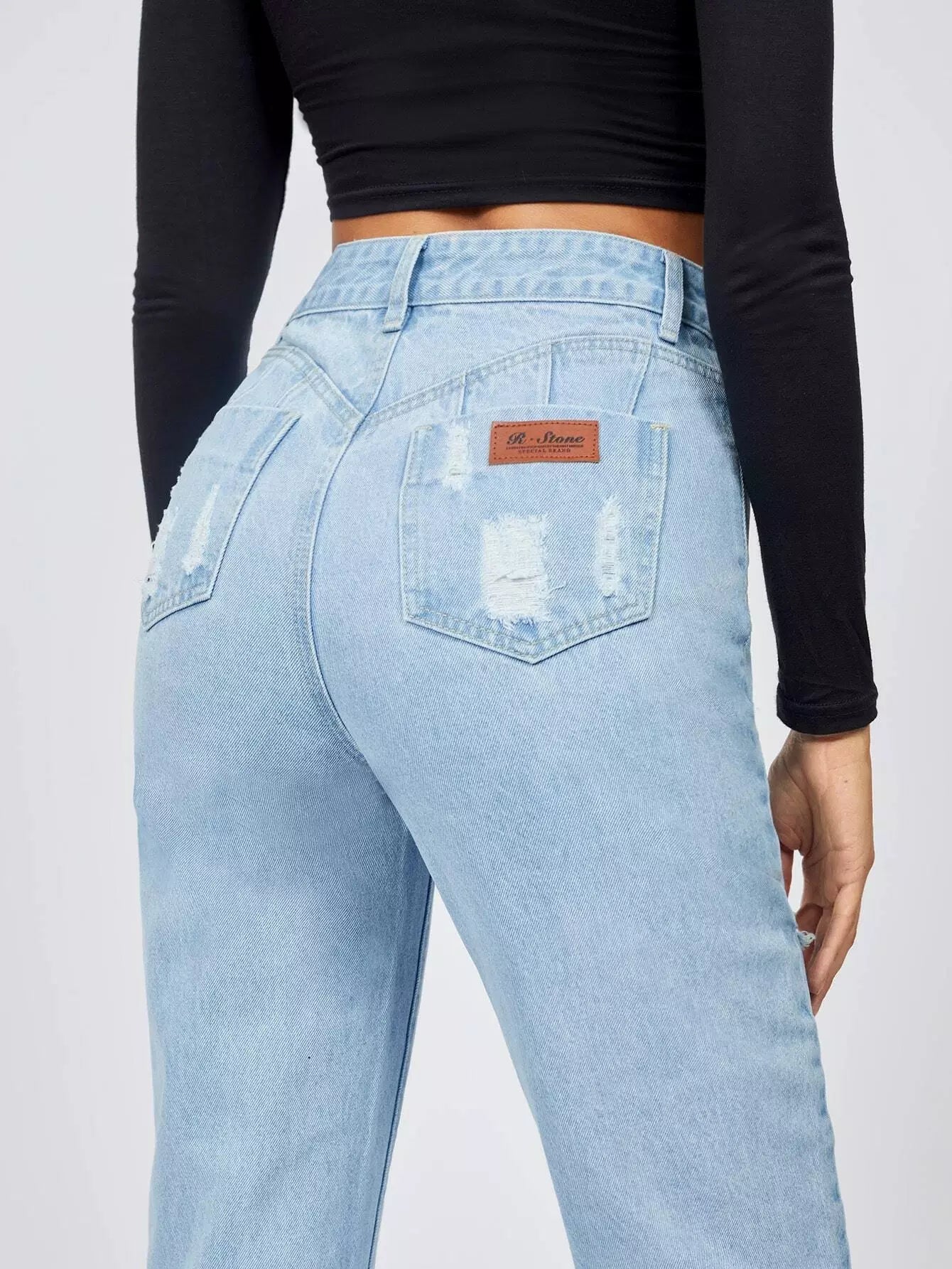 بنطلون جينز ممزق بتفاصيل مرقعة