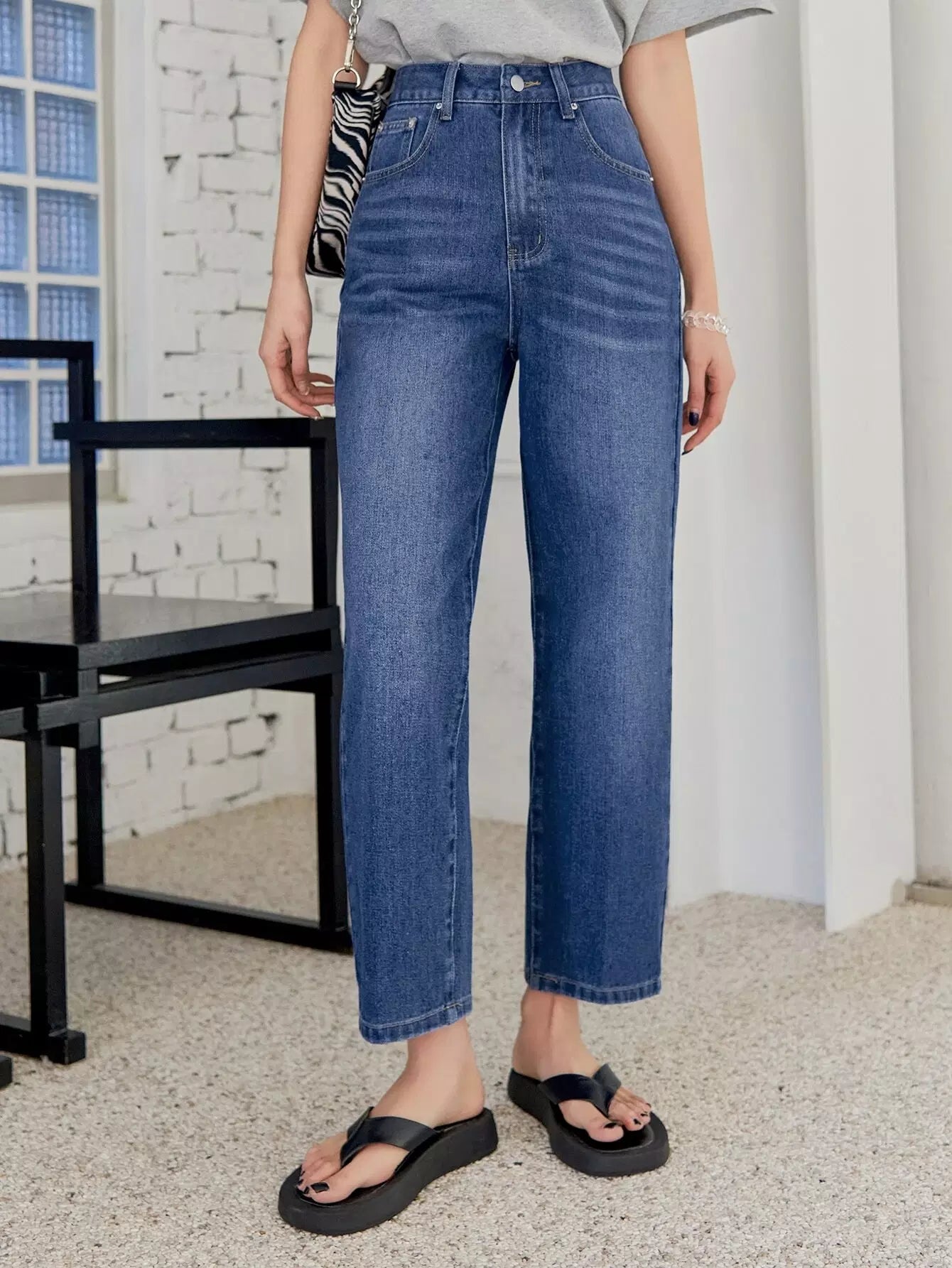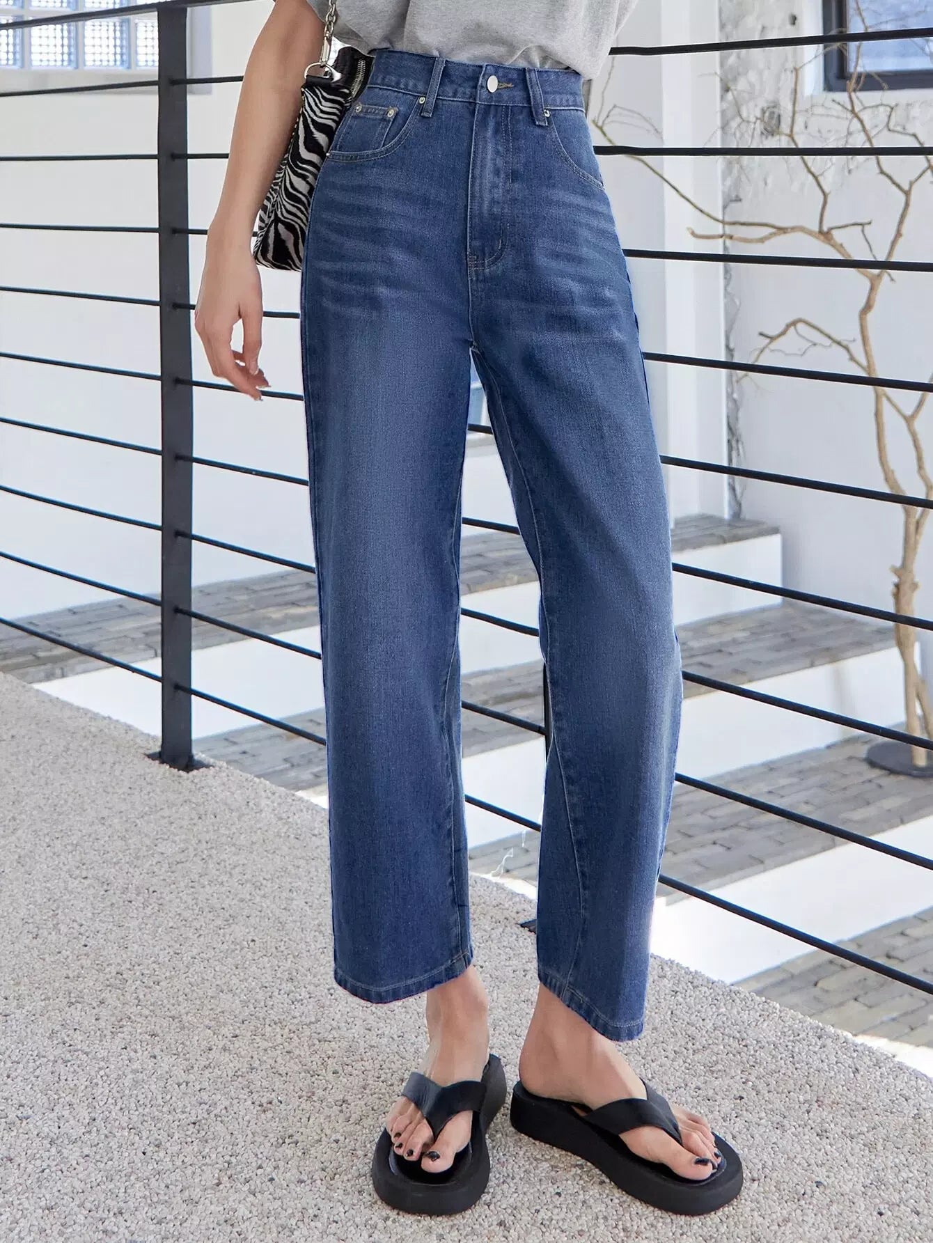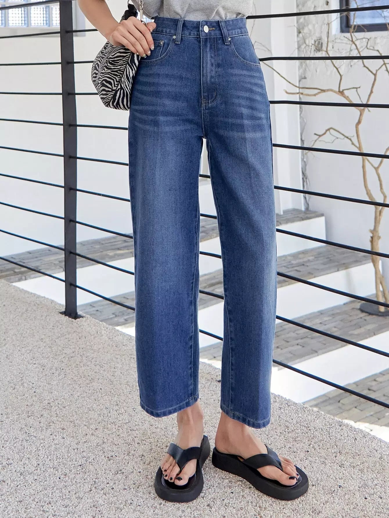 بنطلون جينز سادة بساق مستقيمة بتفاصيل جيب سادة
