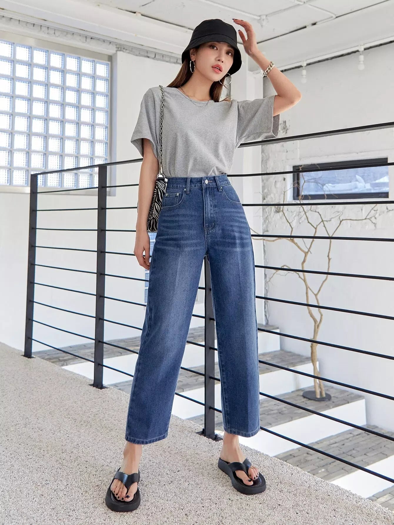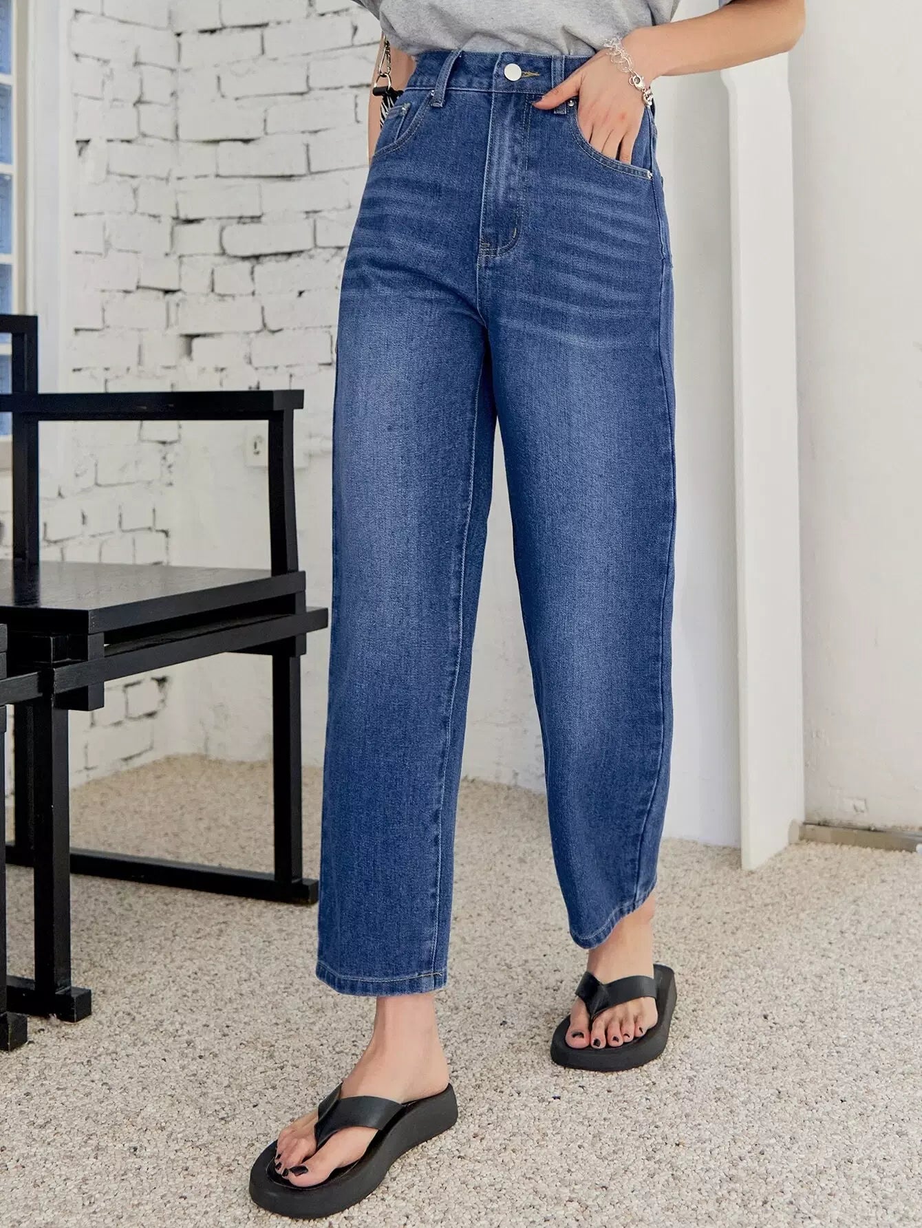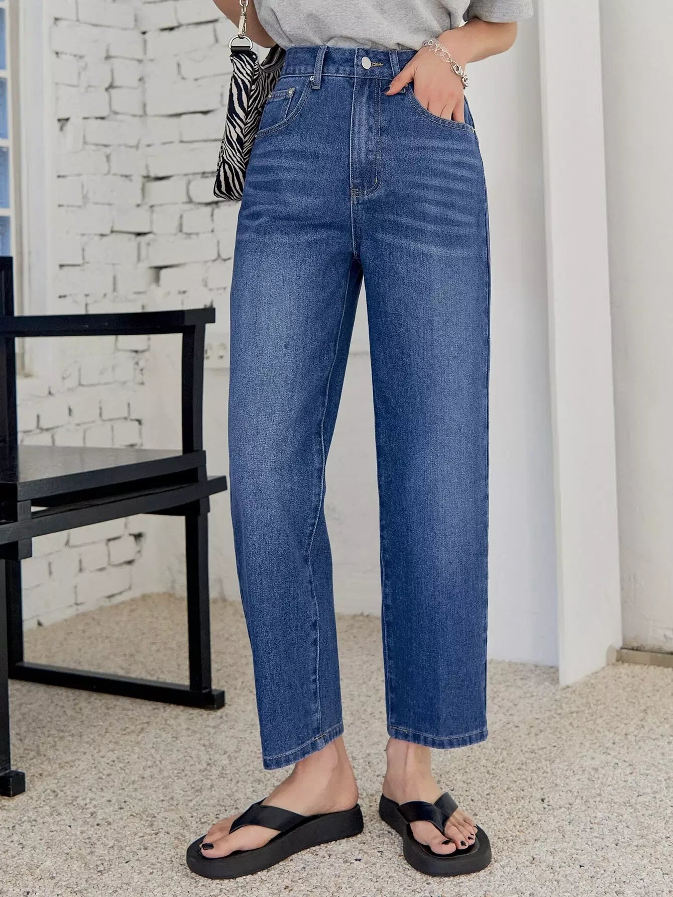 بنطلون جينز سادة بساق مستقيمة بتفاصيل جيب سادة