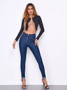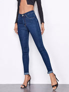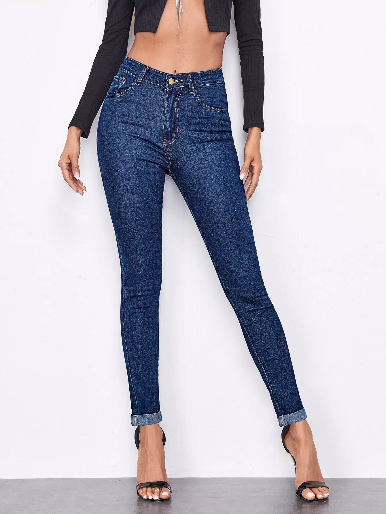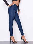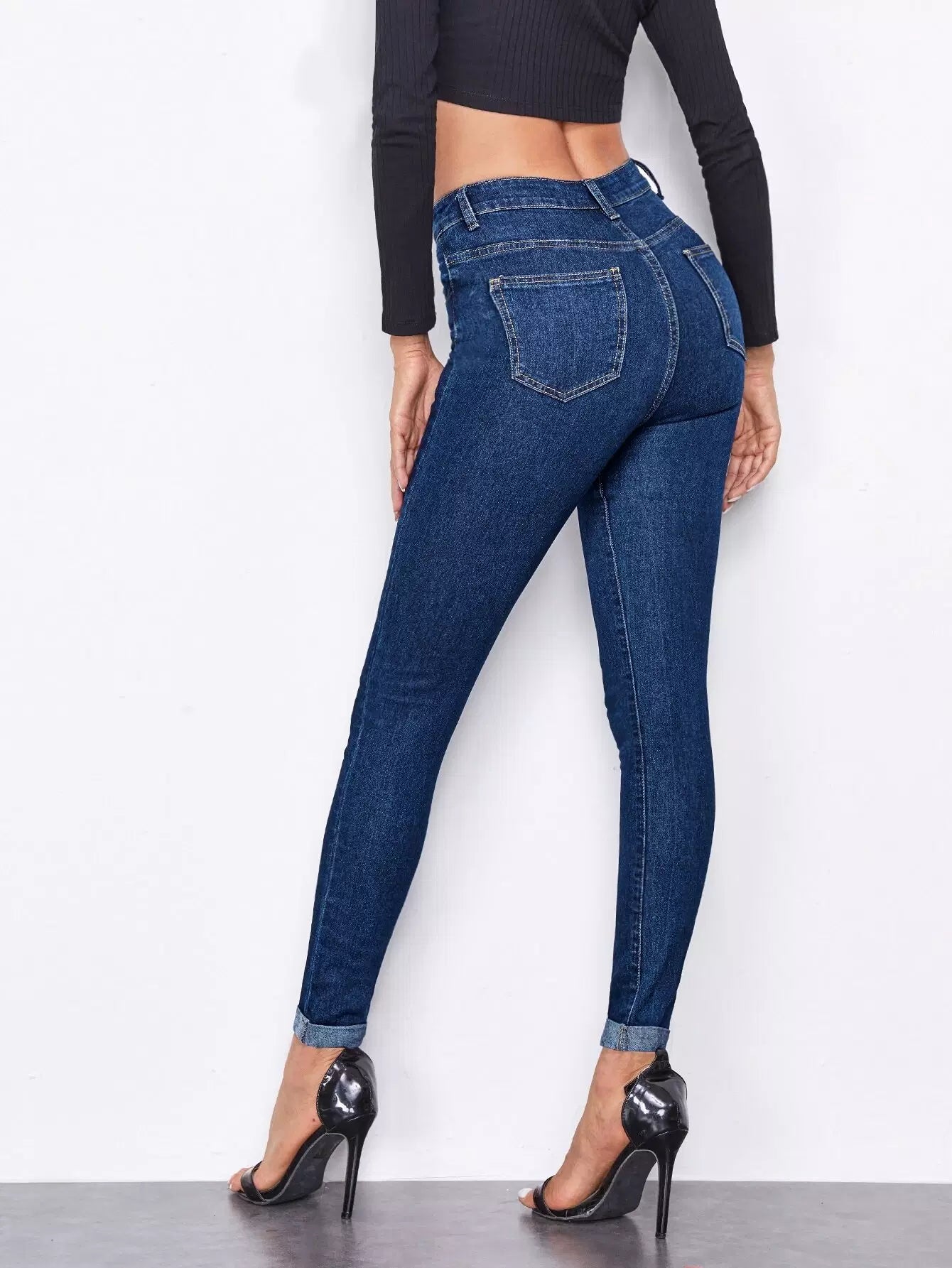 بنطلون جينز سكيني ضيق بحاشية مائلة سادة بحافة مائلة