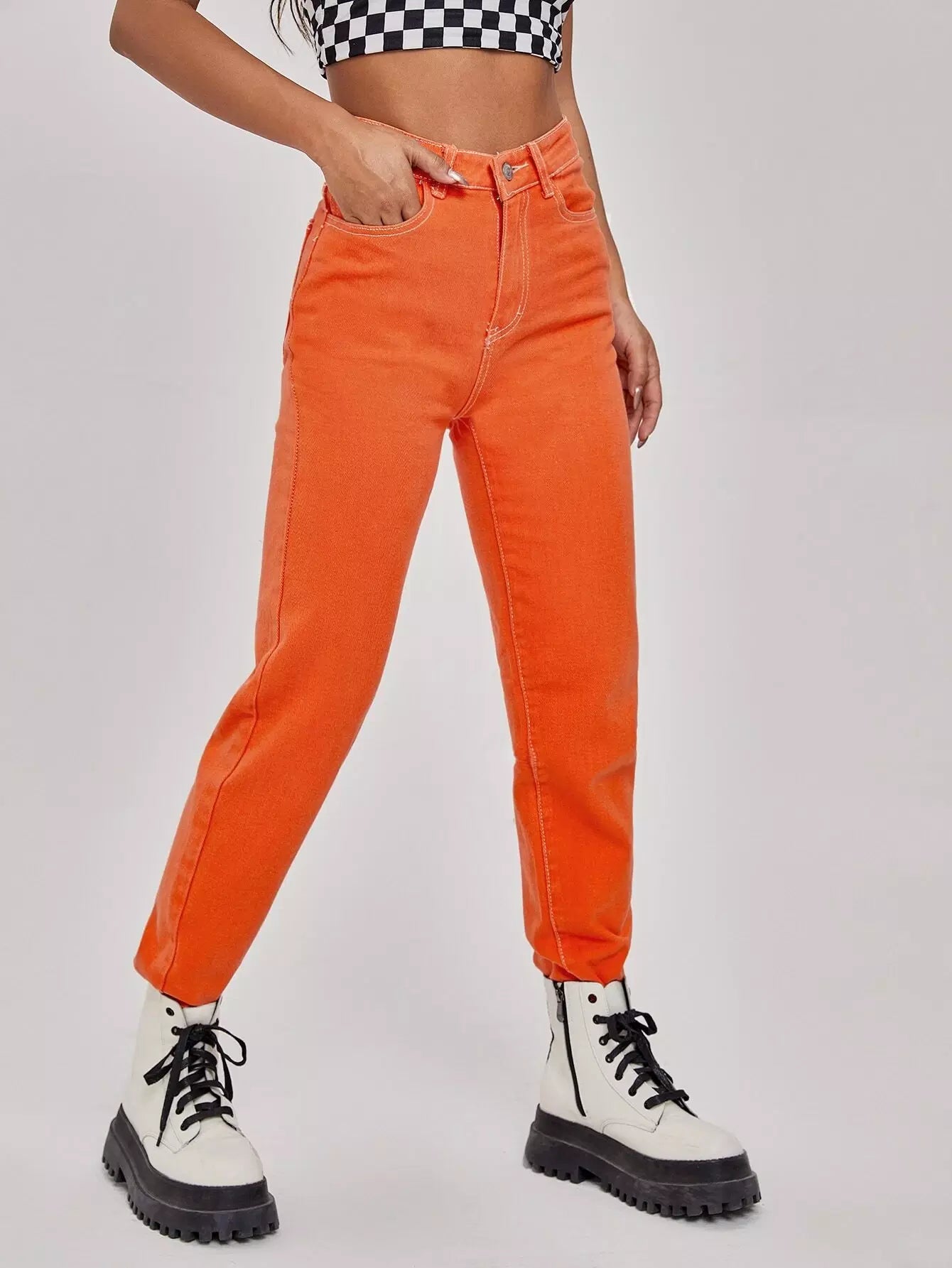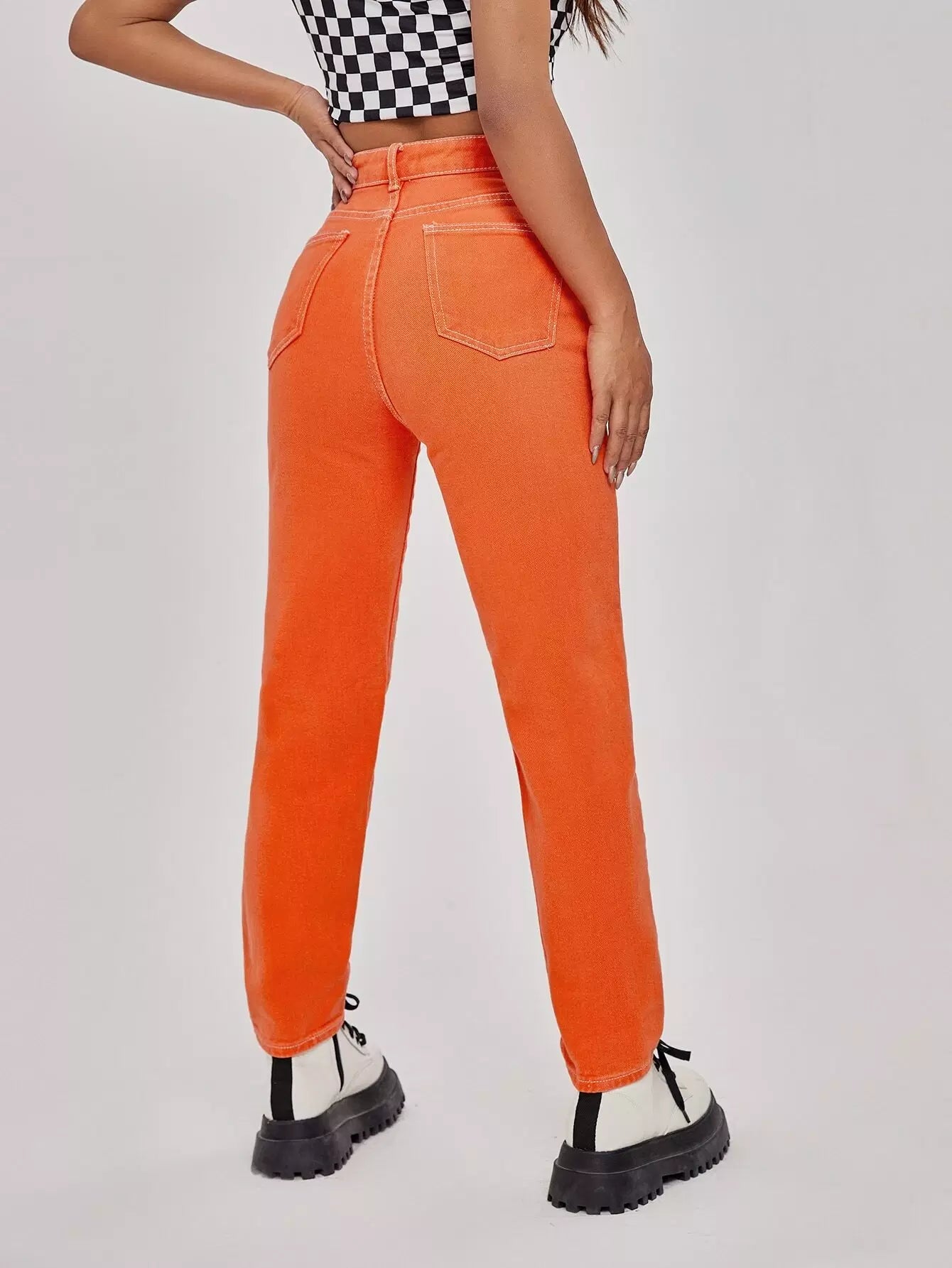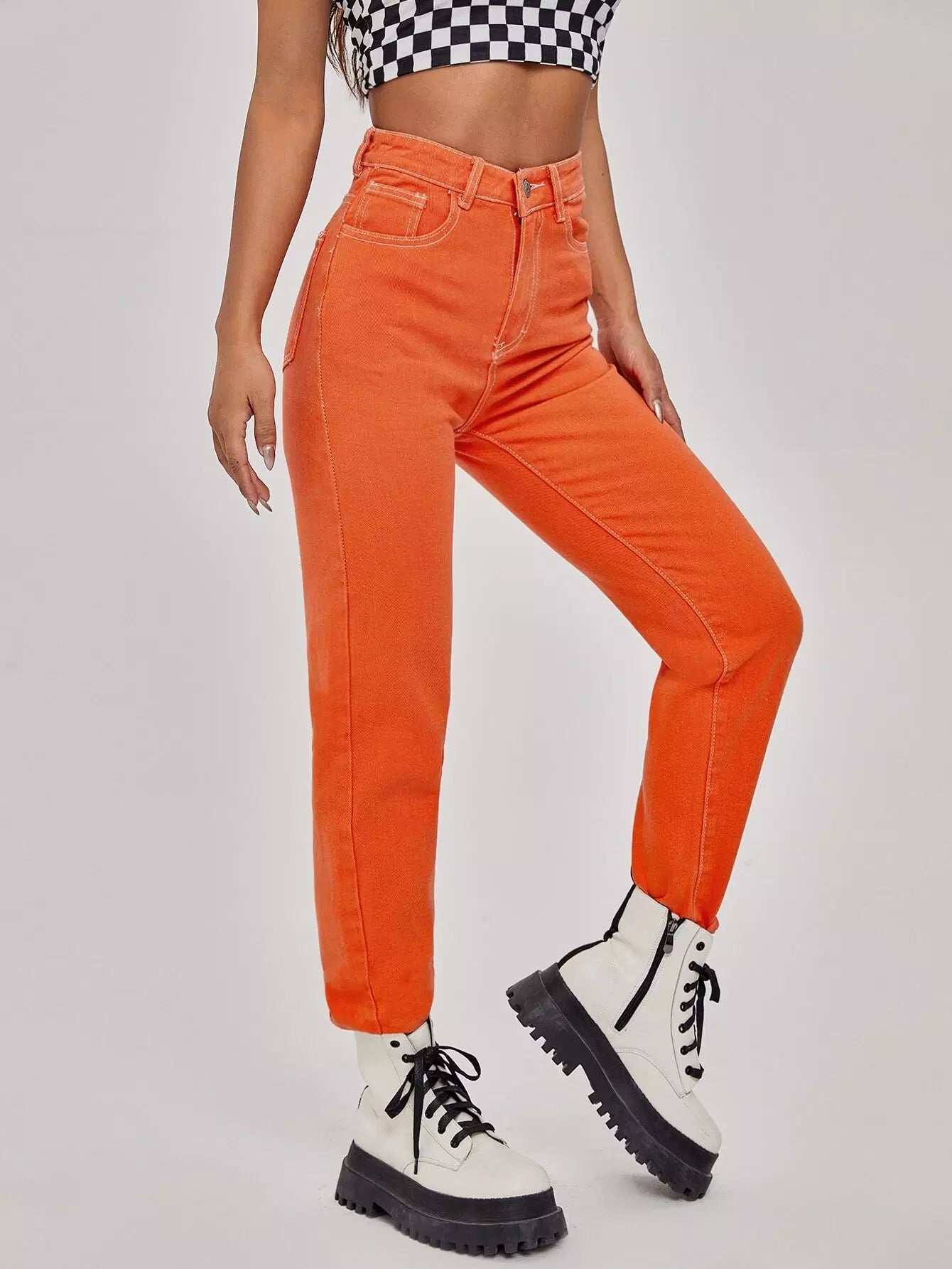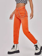 جينز جينز سادة مستقيم الساقين بدون سلسلة