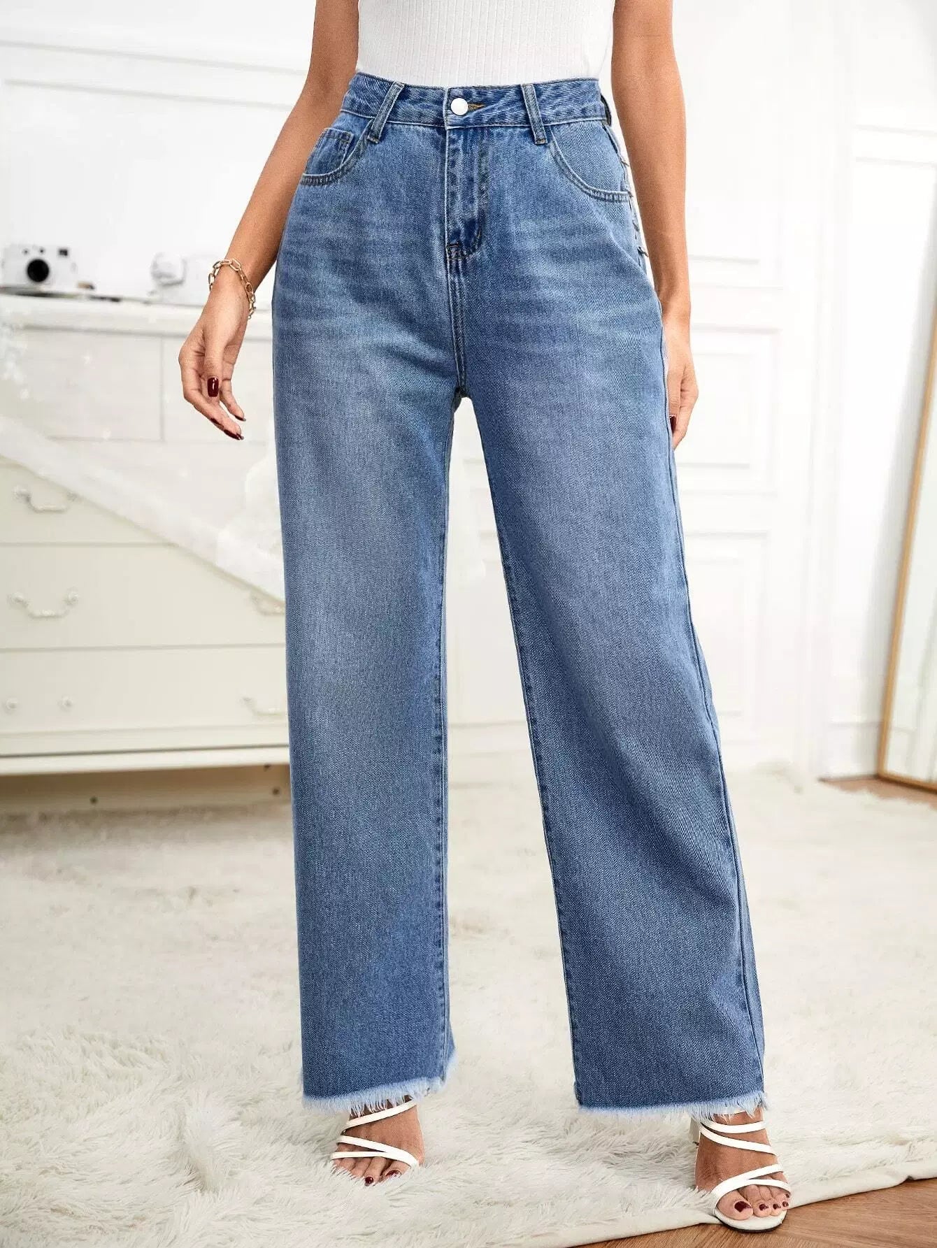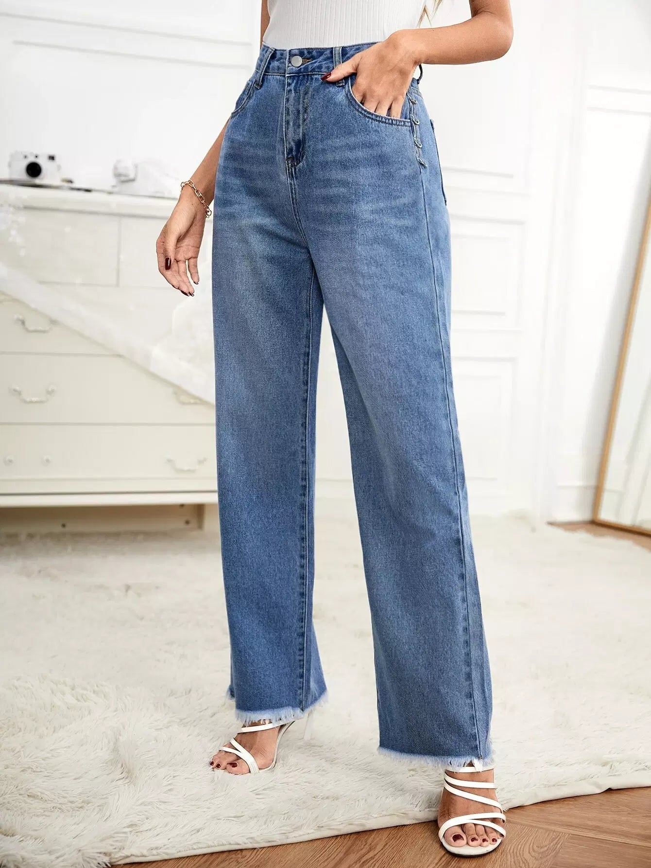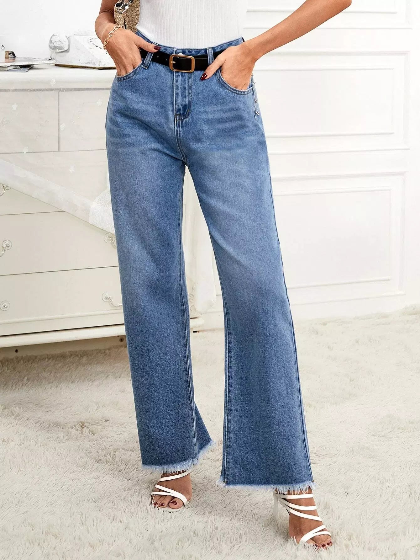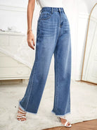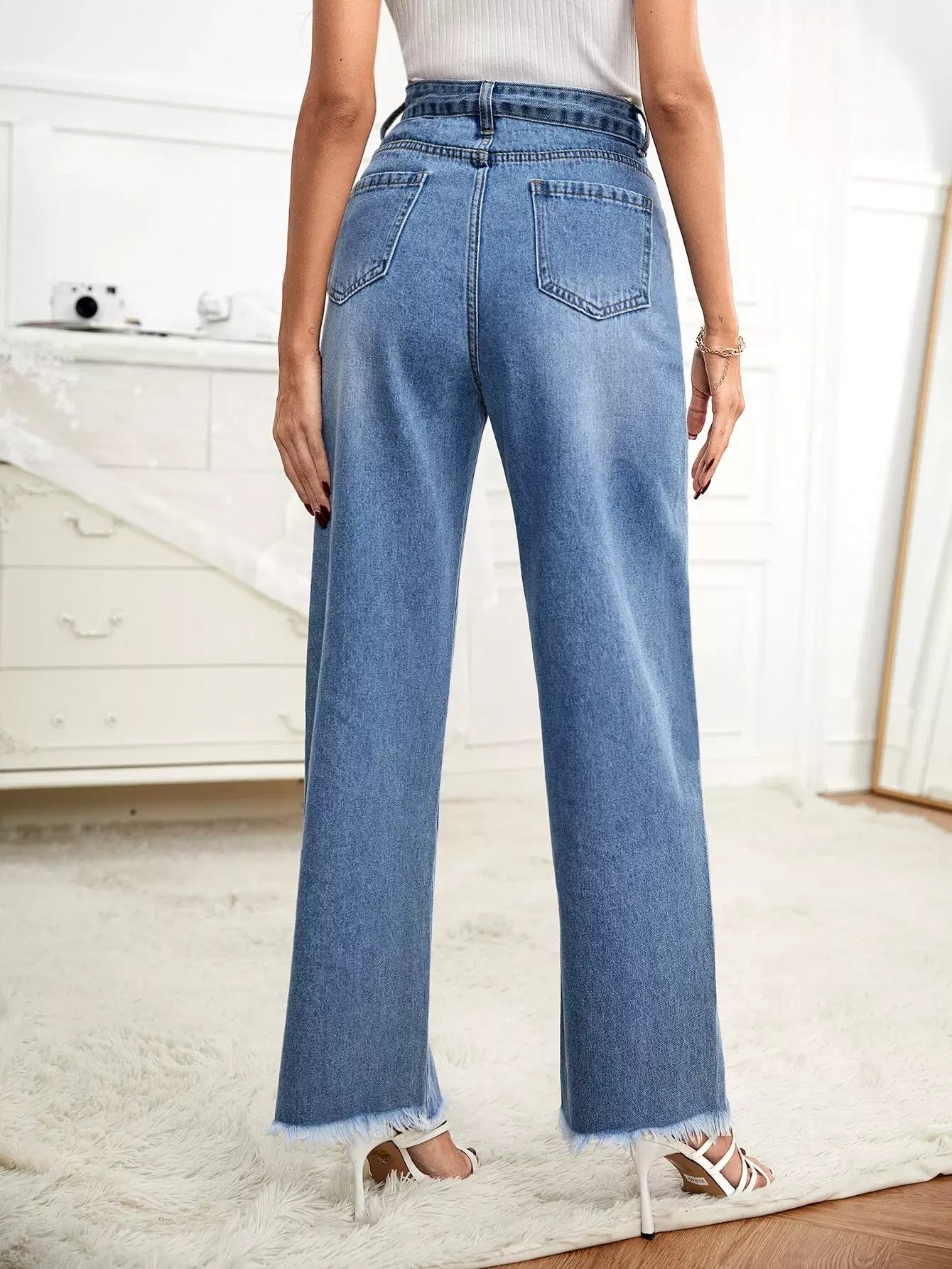 بنطال جينز واسع الساق بدون حزام