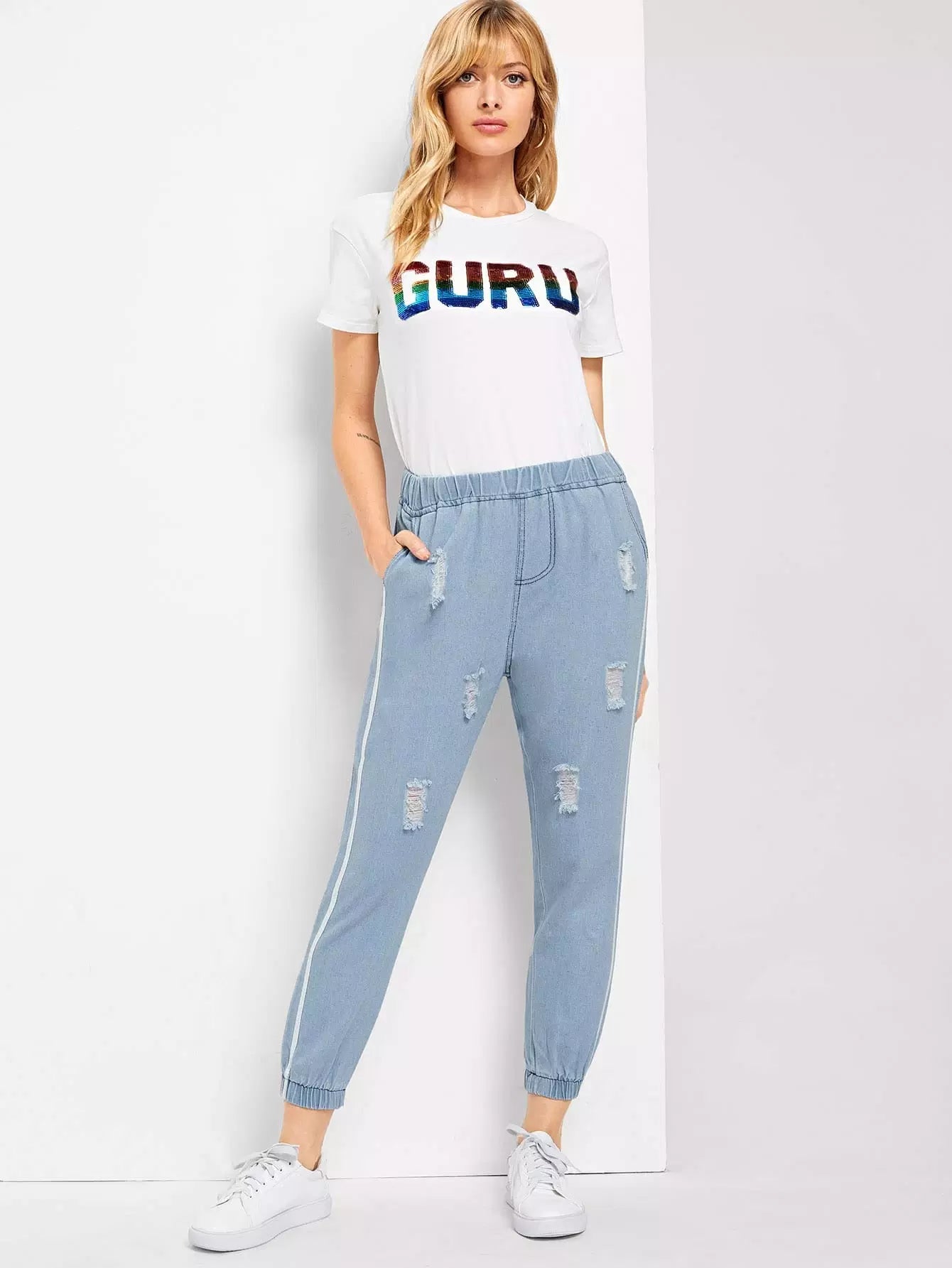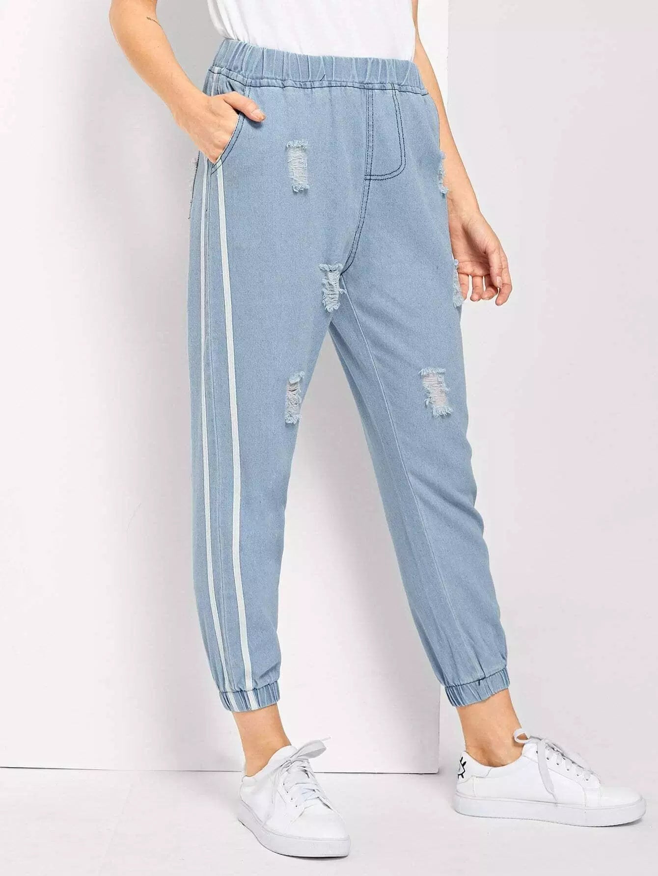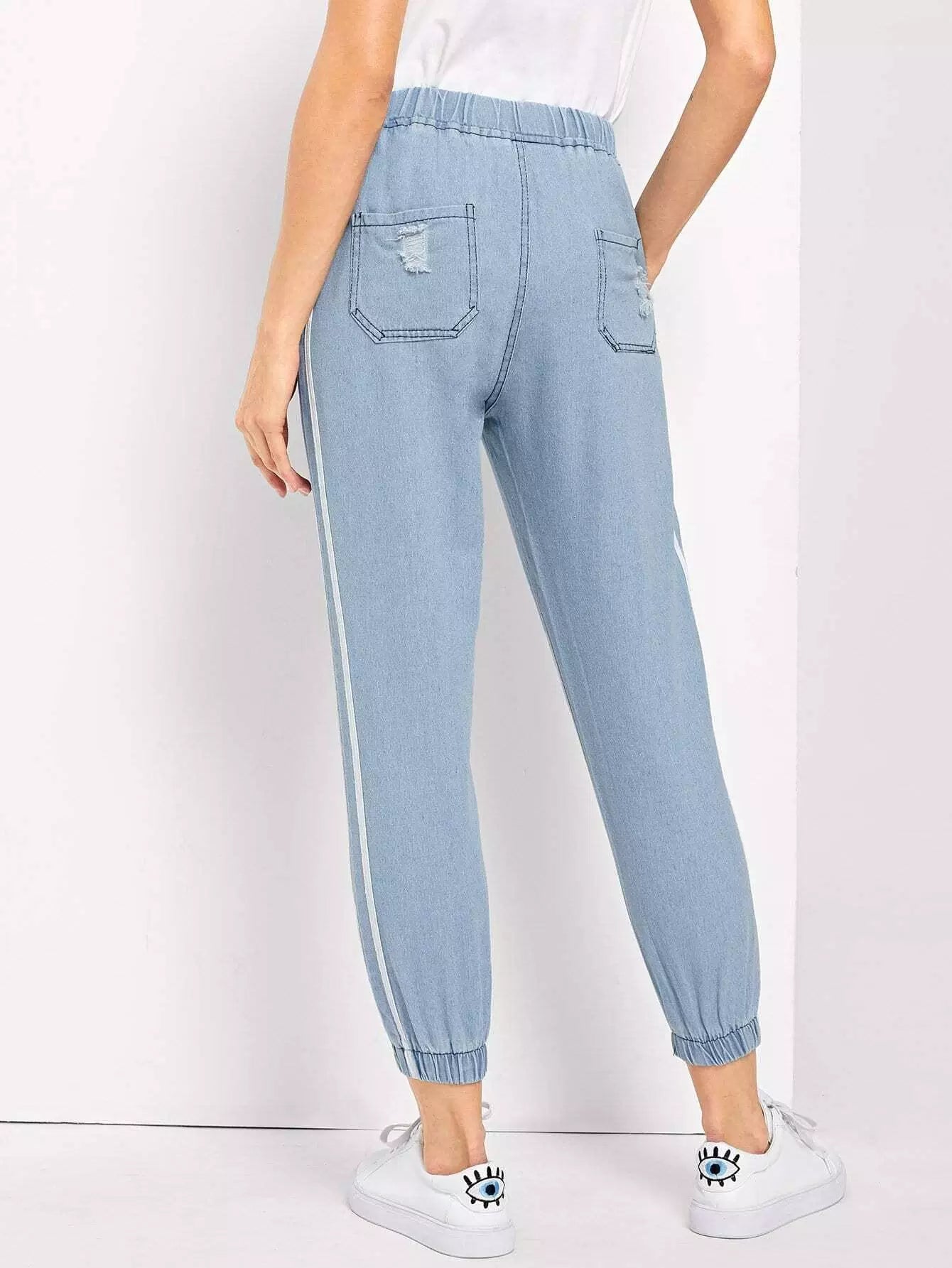 بنطلون جينز مخطط بشريط جانبي مخطط