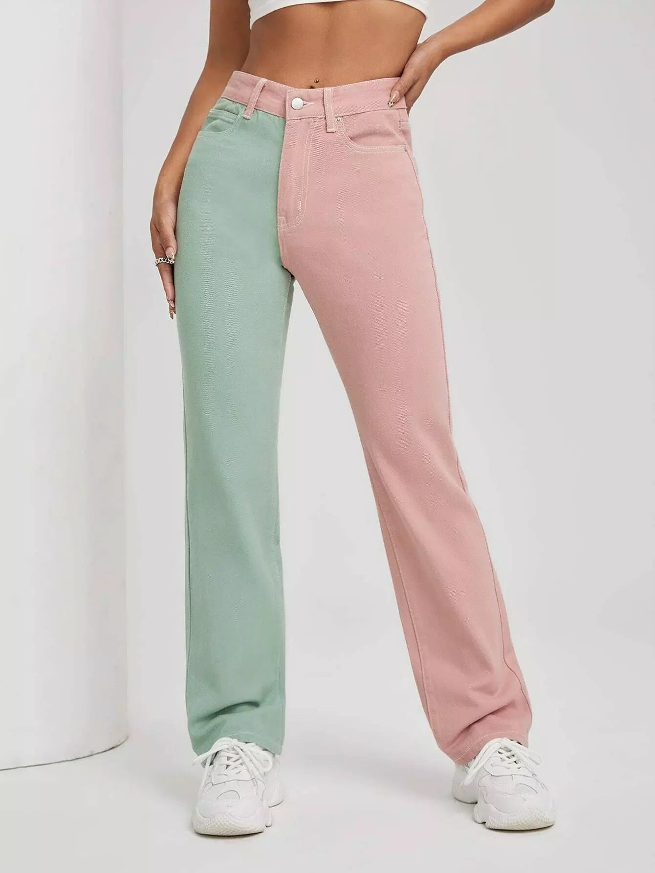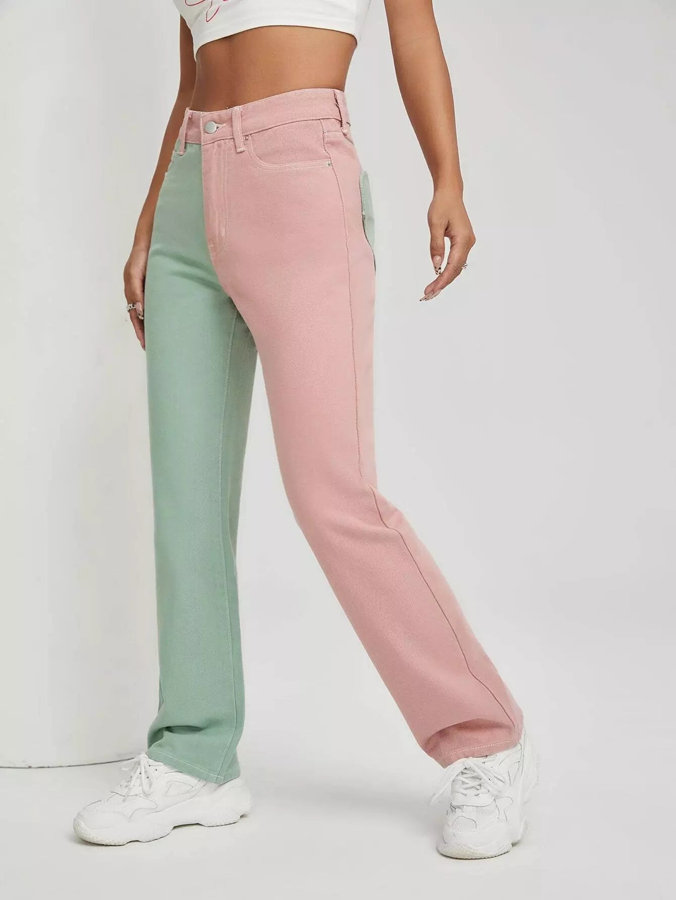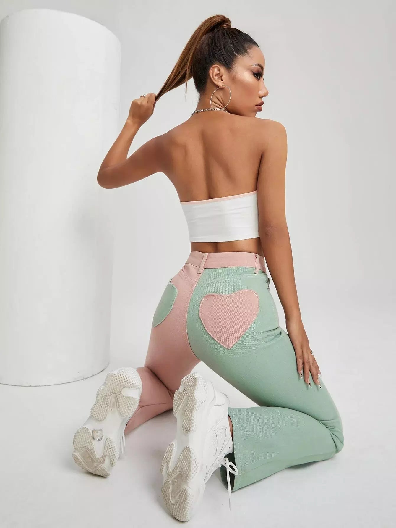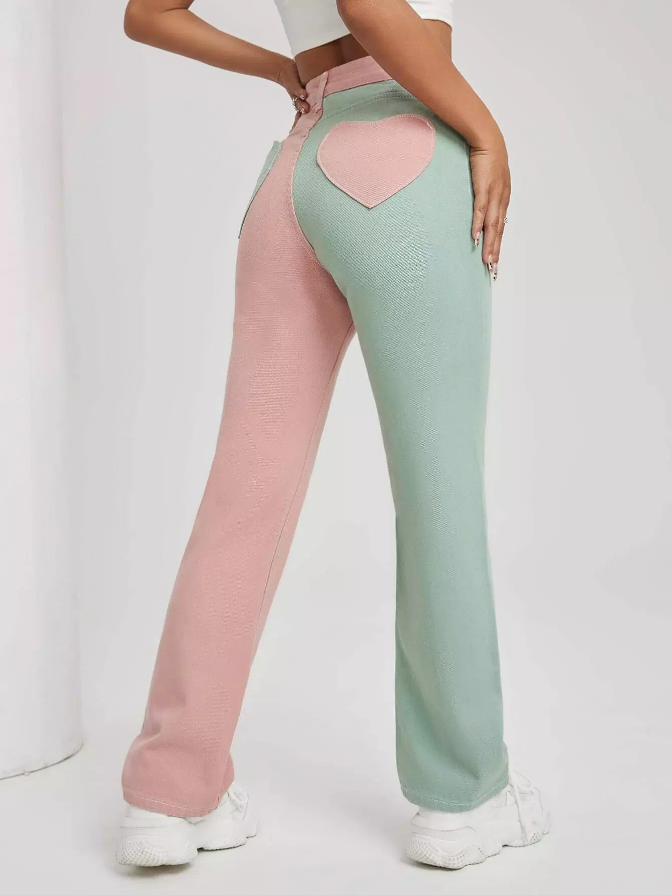 بنطلون جينز بجيوب ورقعة على شكل قلب بلونين
