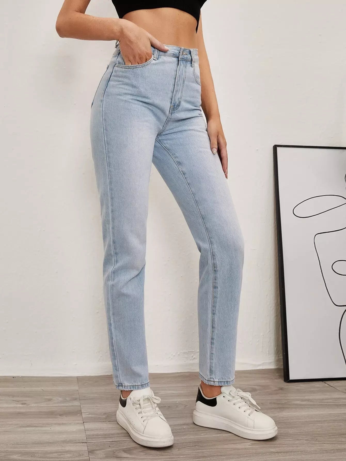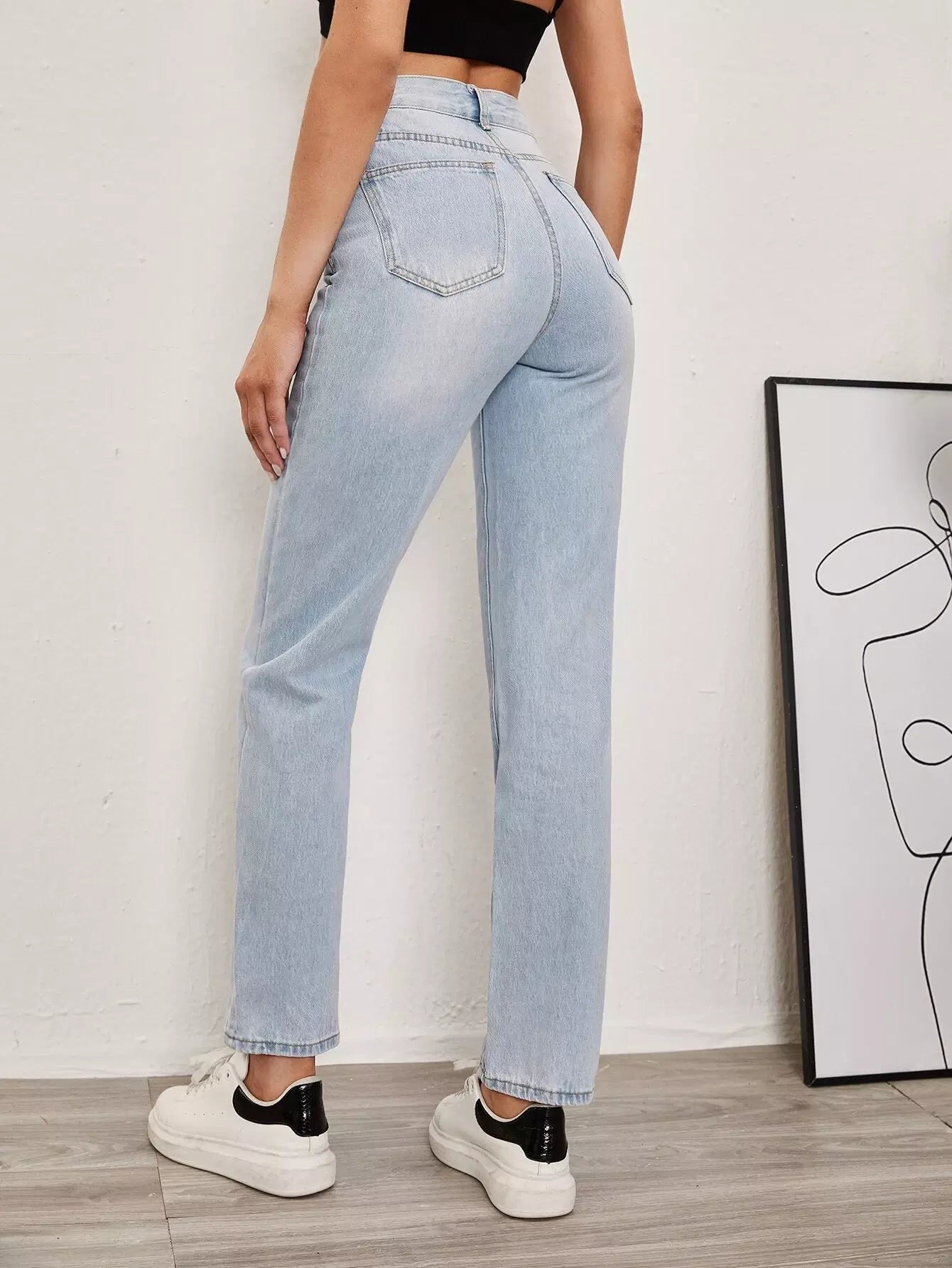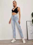 بنطال جينز سادة بسحاب