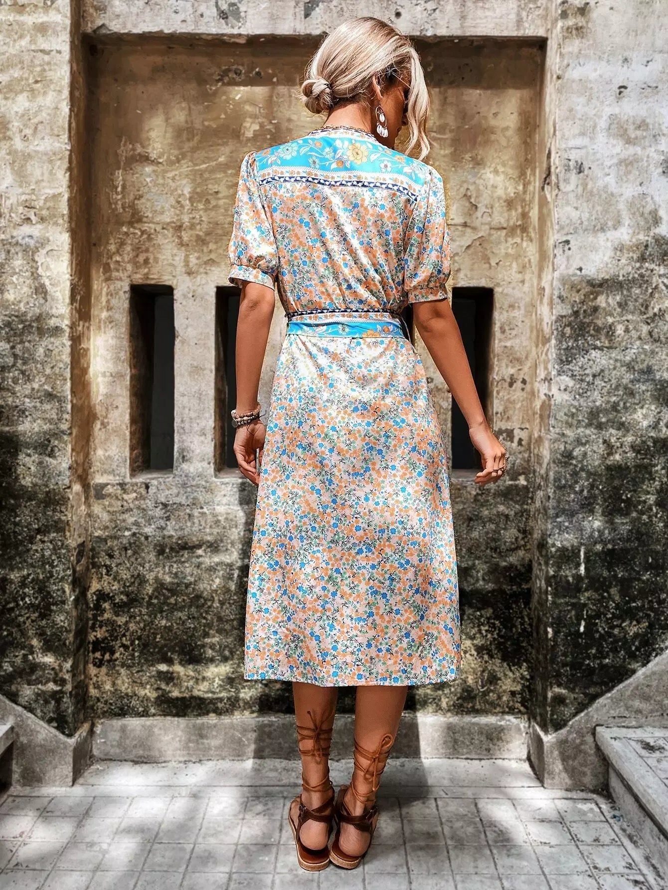 فستان بطبعة زهور مطبوع بالكامل من الأمام بطبعة زهور