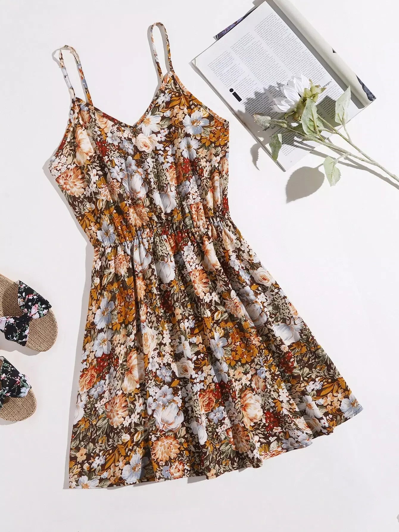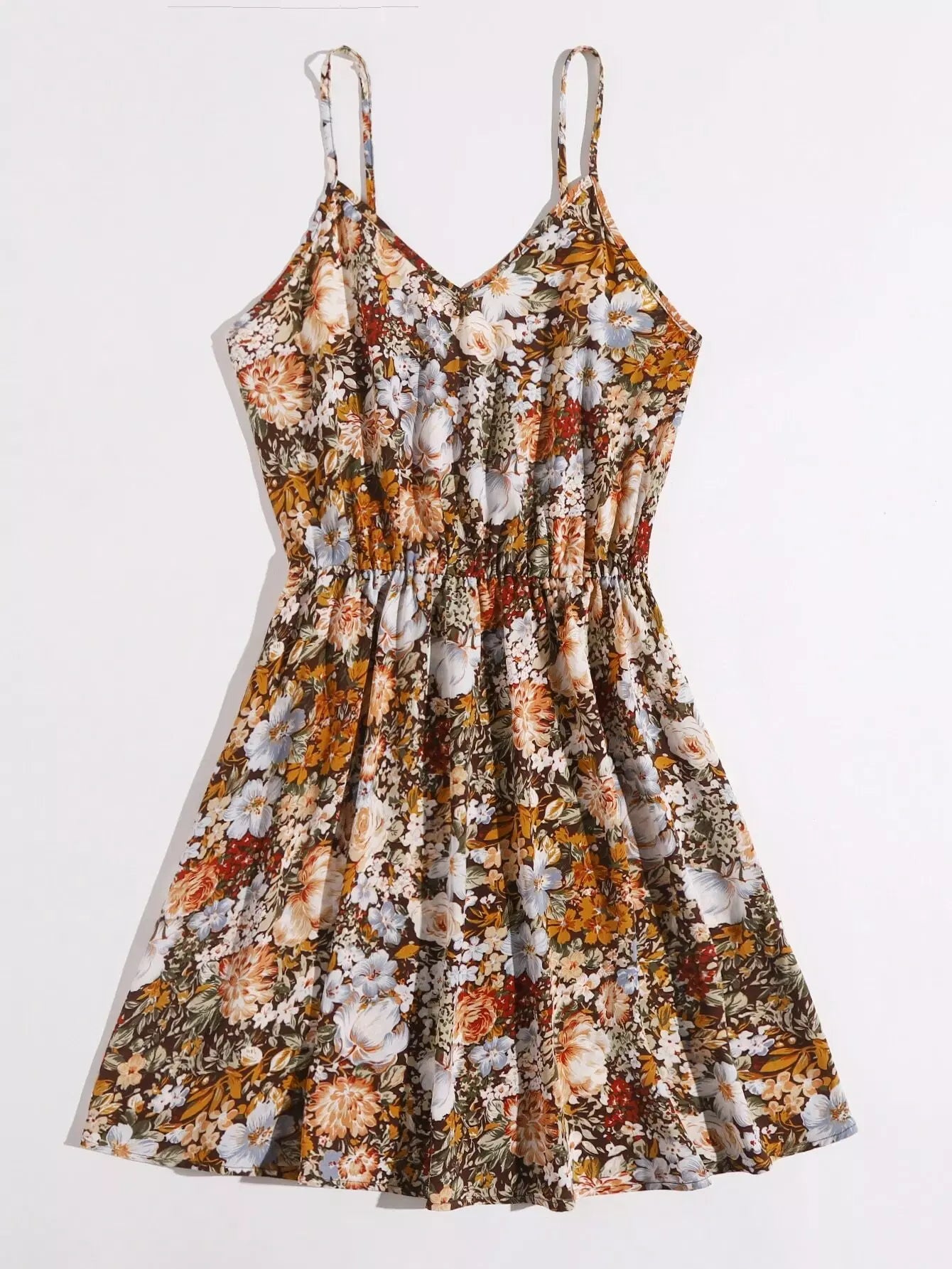 فستان بطبعة زهور مطبوع فوقها بالكامل