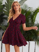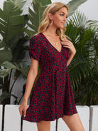 للنساء - فستان مرفرفة بأكمام منتفخة وطبعات زهور بالكامل