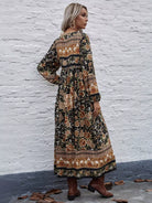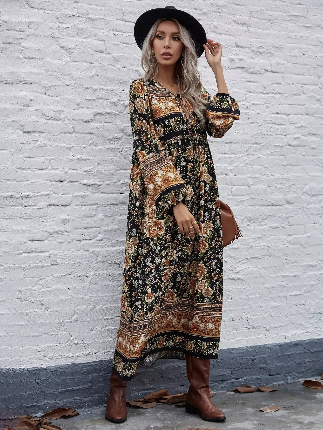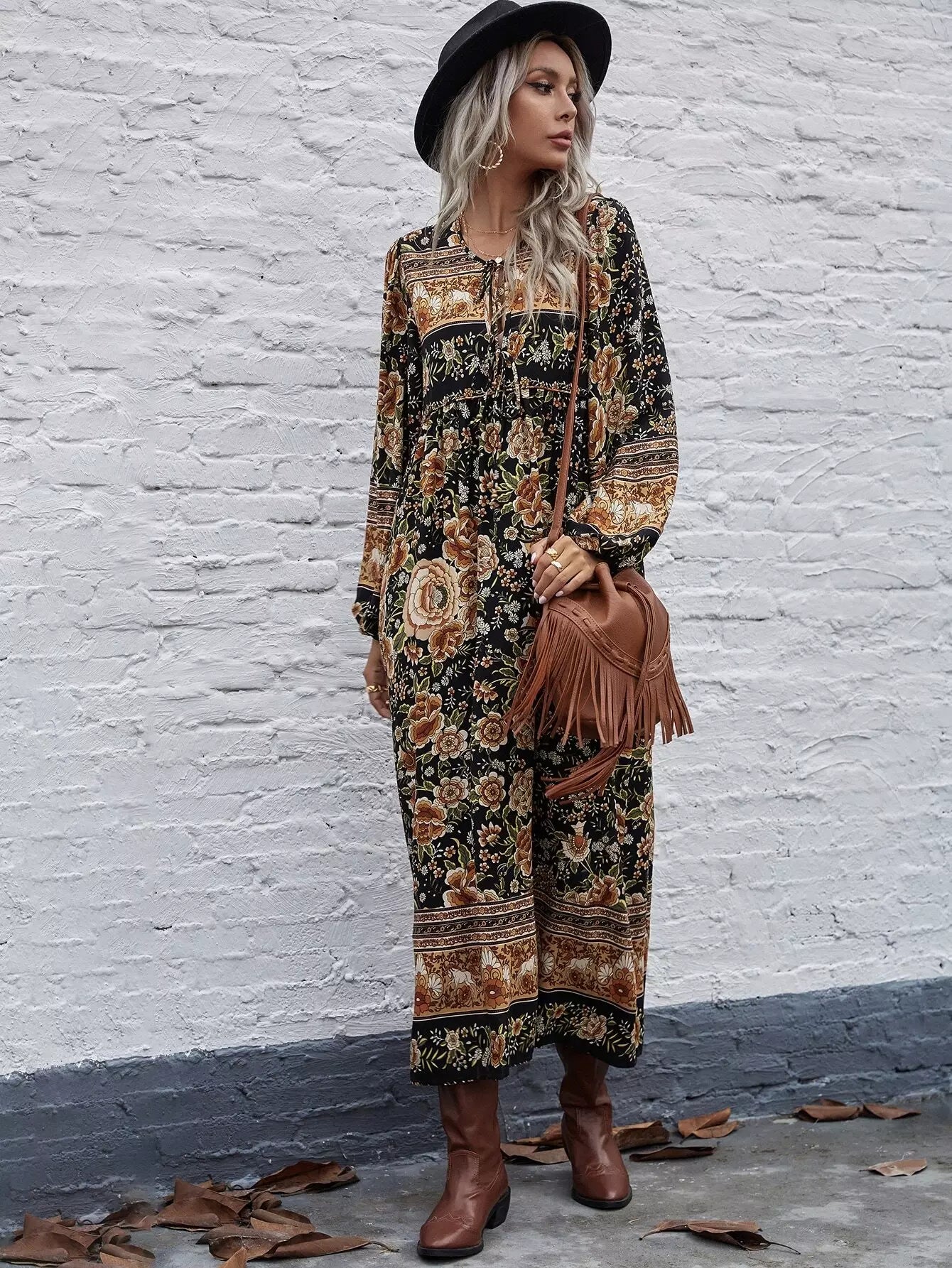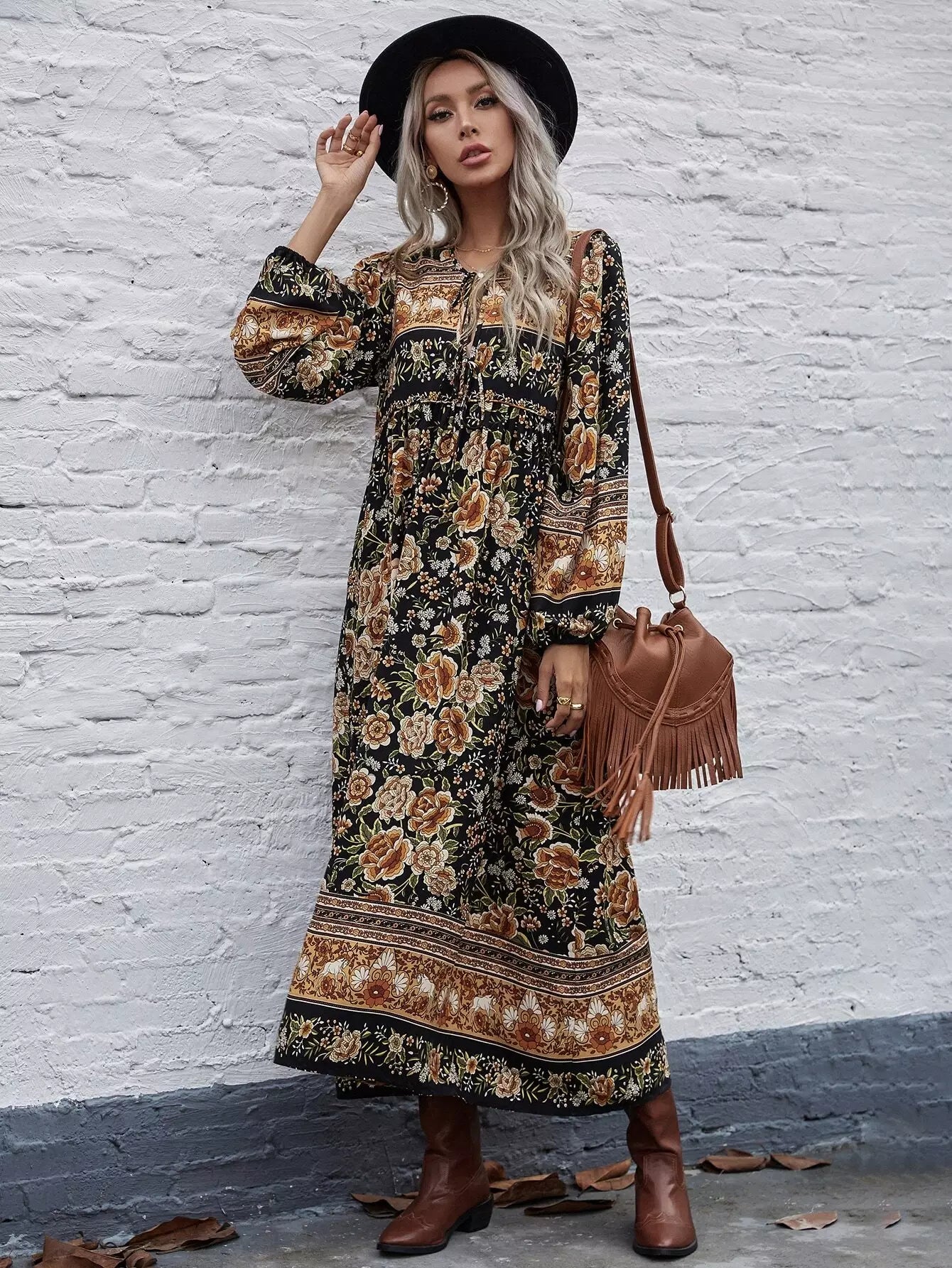 فستان برقبة ربطة عنق مزين بالأزهار بالكامل