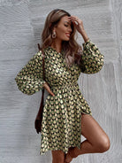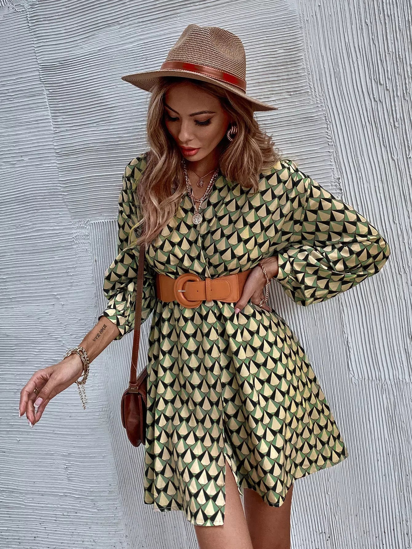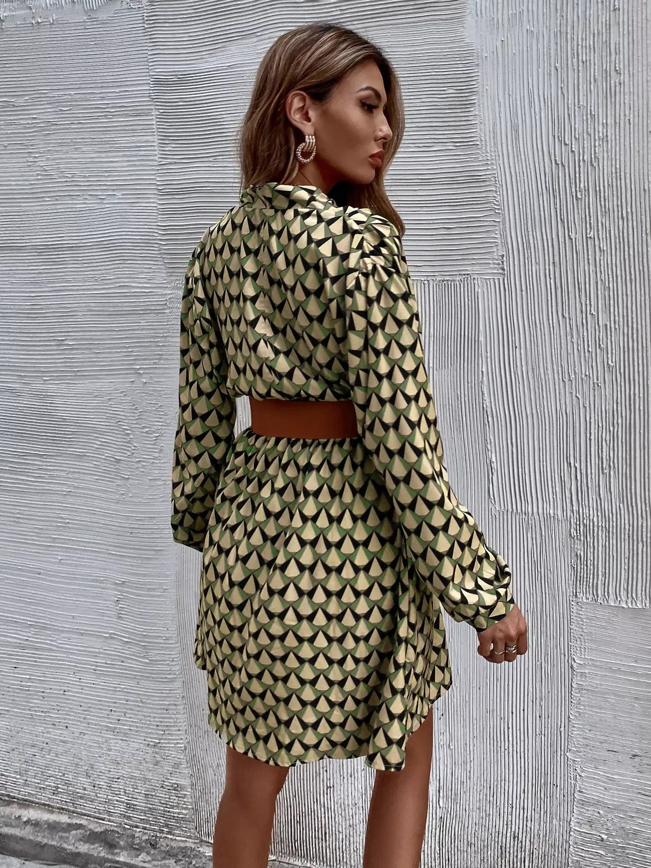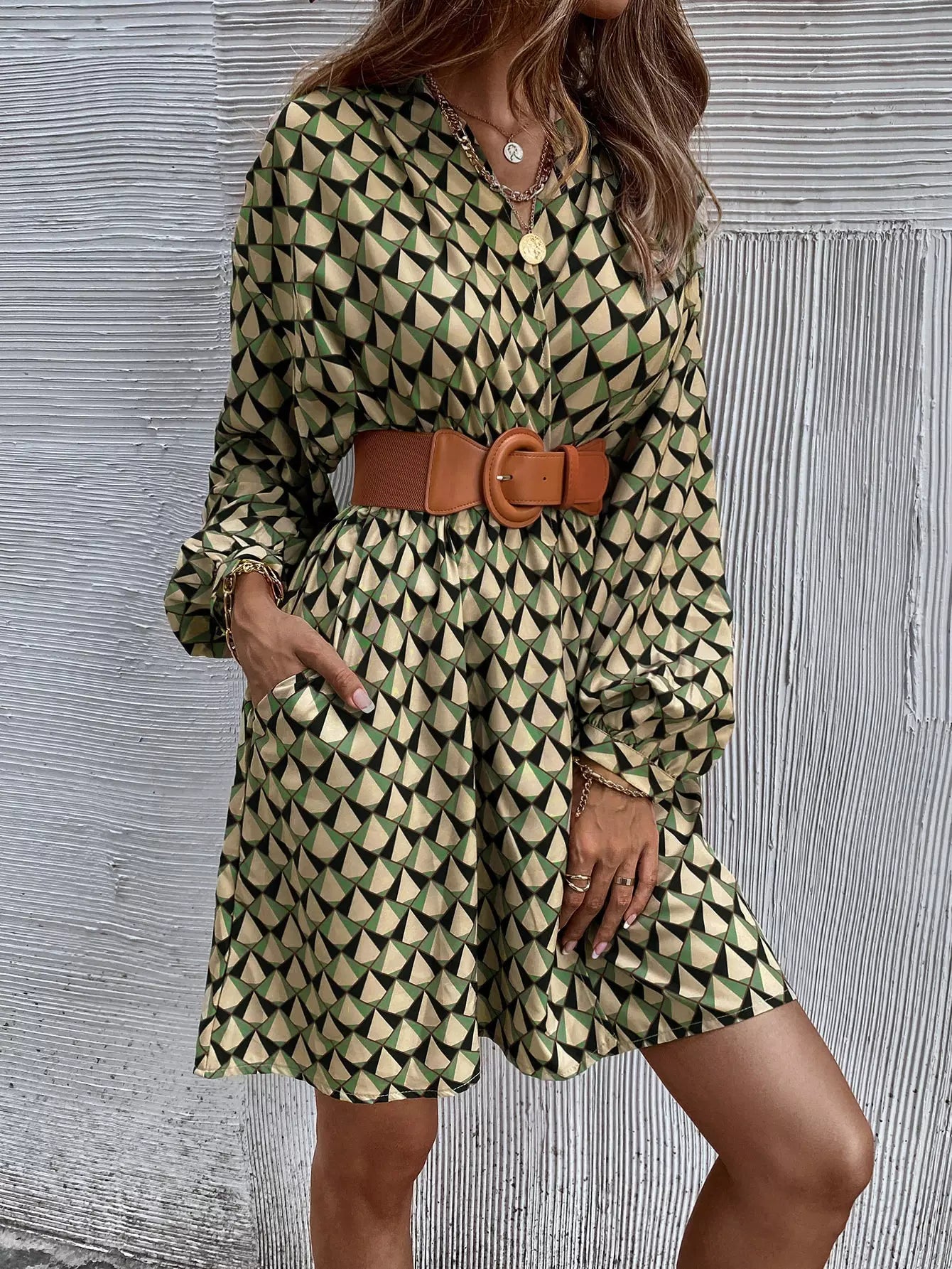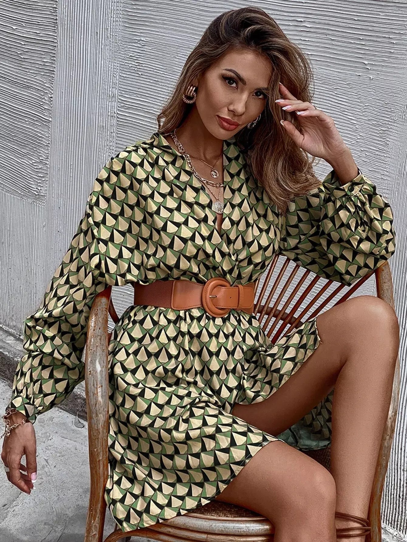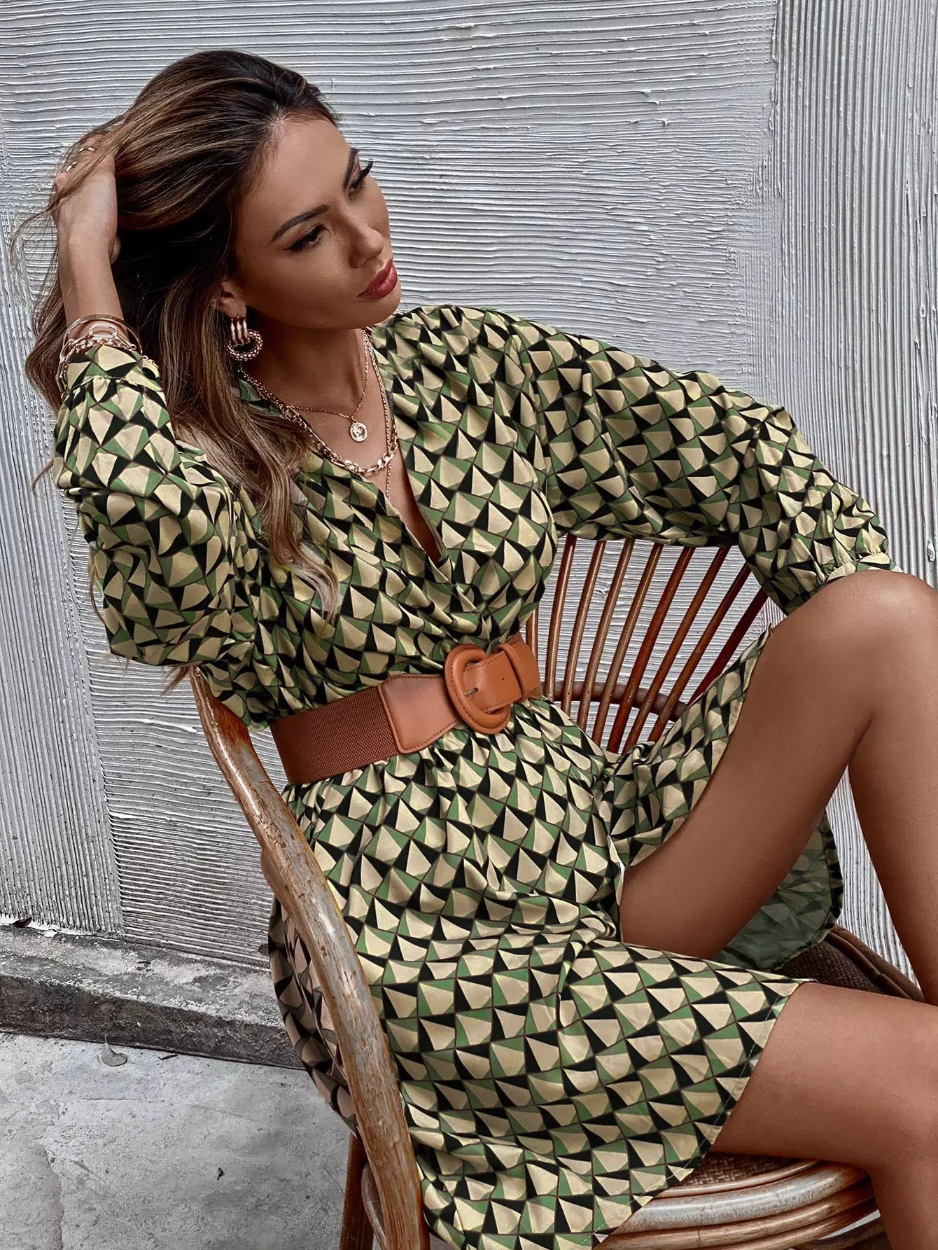للنساء - فستان ملفوف بتصميم هندسي بالكامل بدون حزام