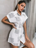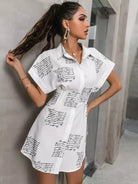 فستان مزين بطبعة فوق الكشكش على الخصر