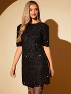 Amorya Backless Sequined Split Hem Party Fall Winter Halloween Christmas Prom Sequin Asymmetrical Old