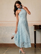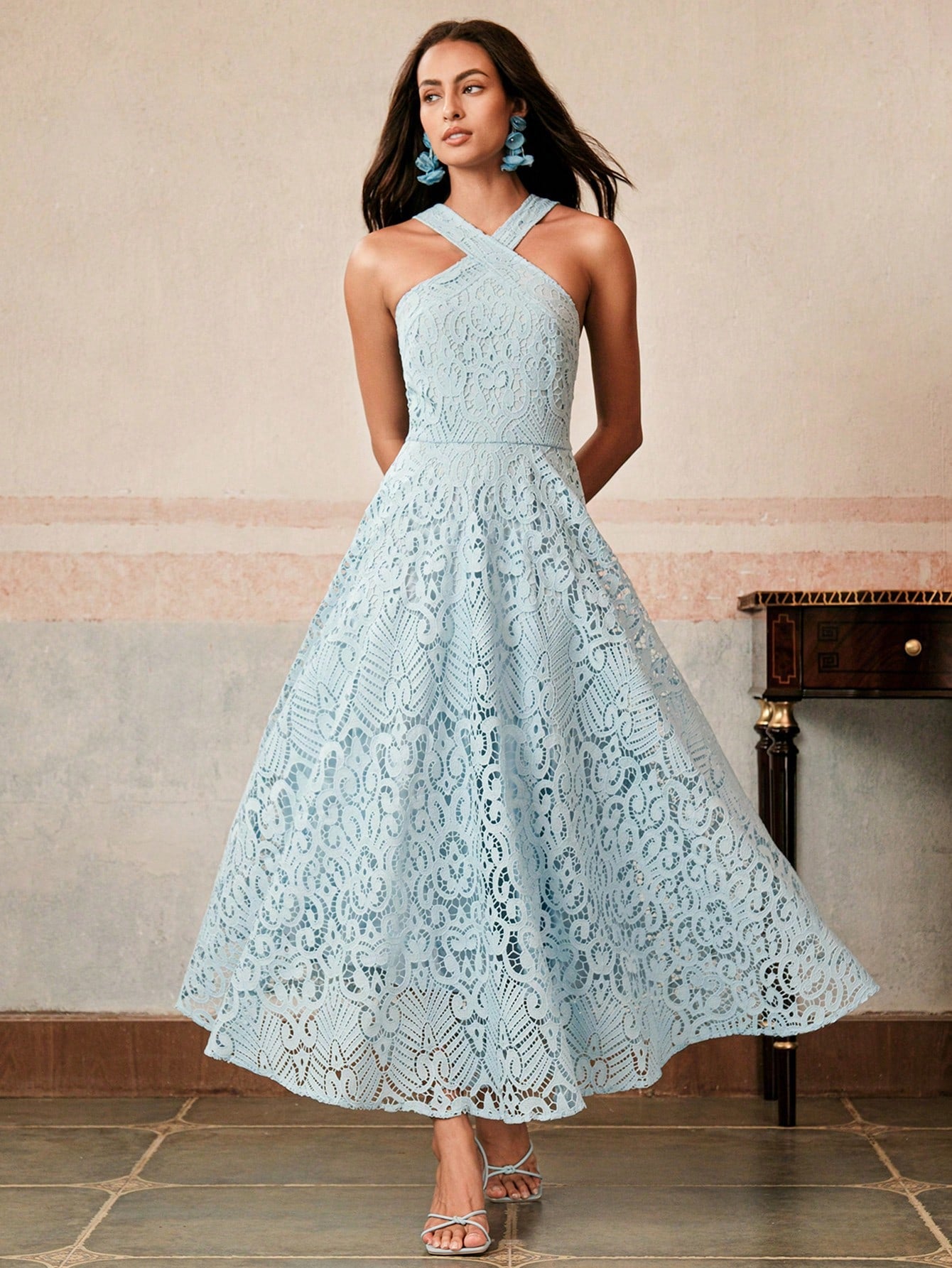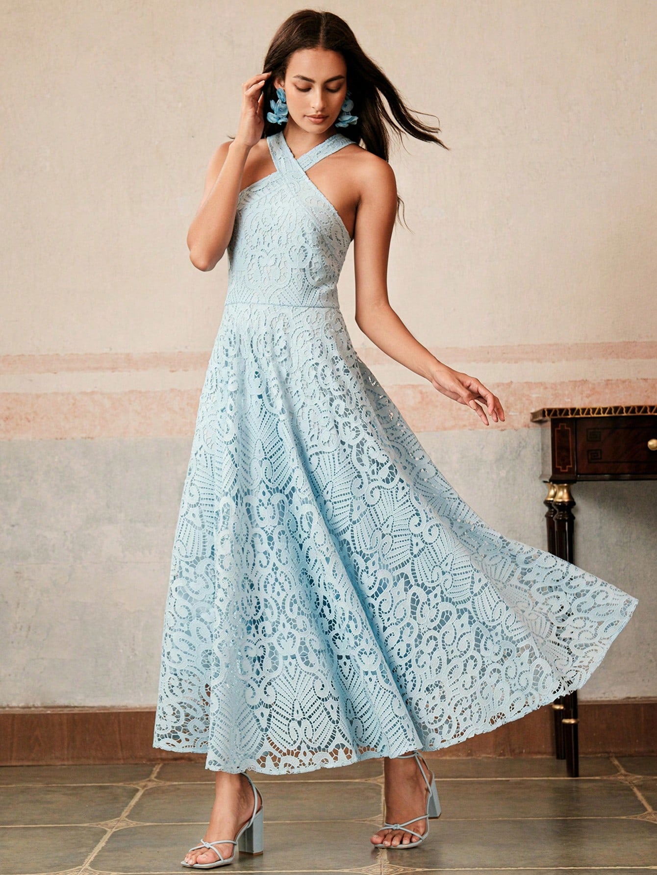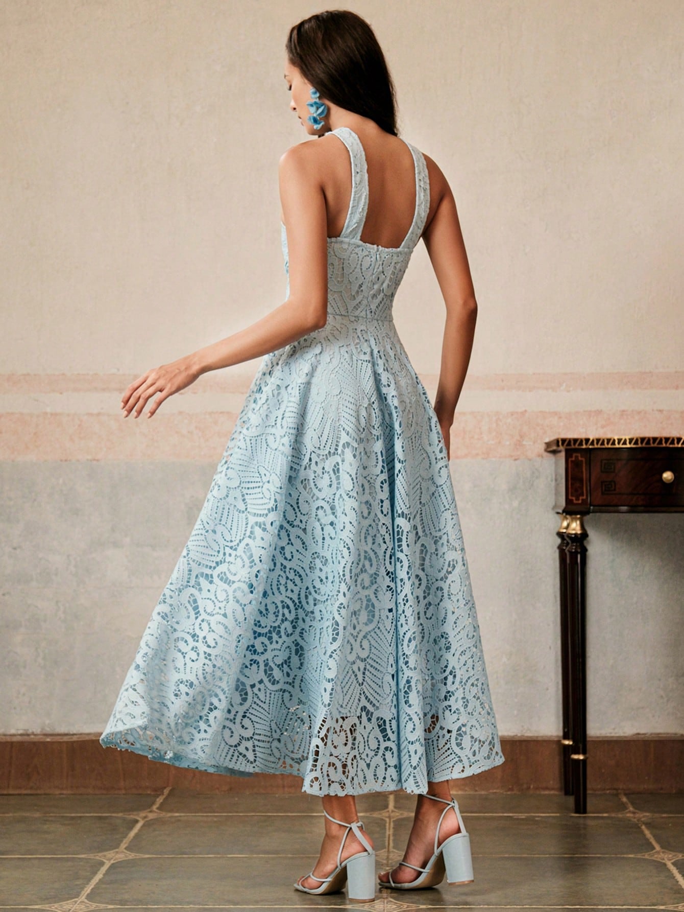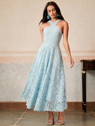 Anewsta Elaire Women Black Lace Spaghetti Strap Casual Vacation Long Dress, Backless, For Spring/Summer,