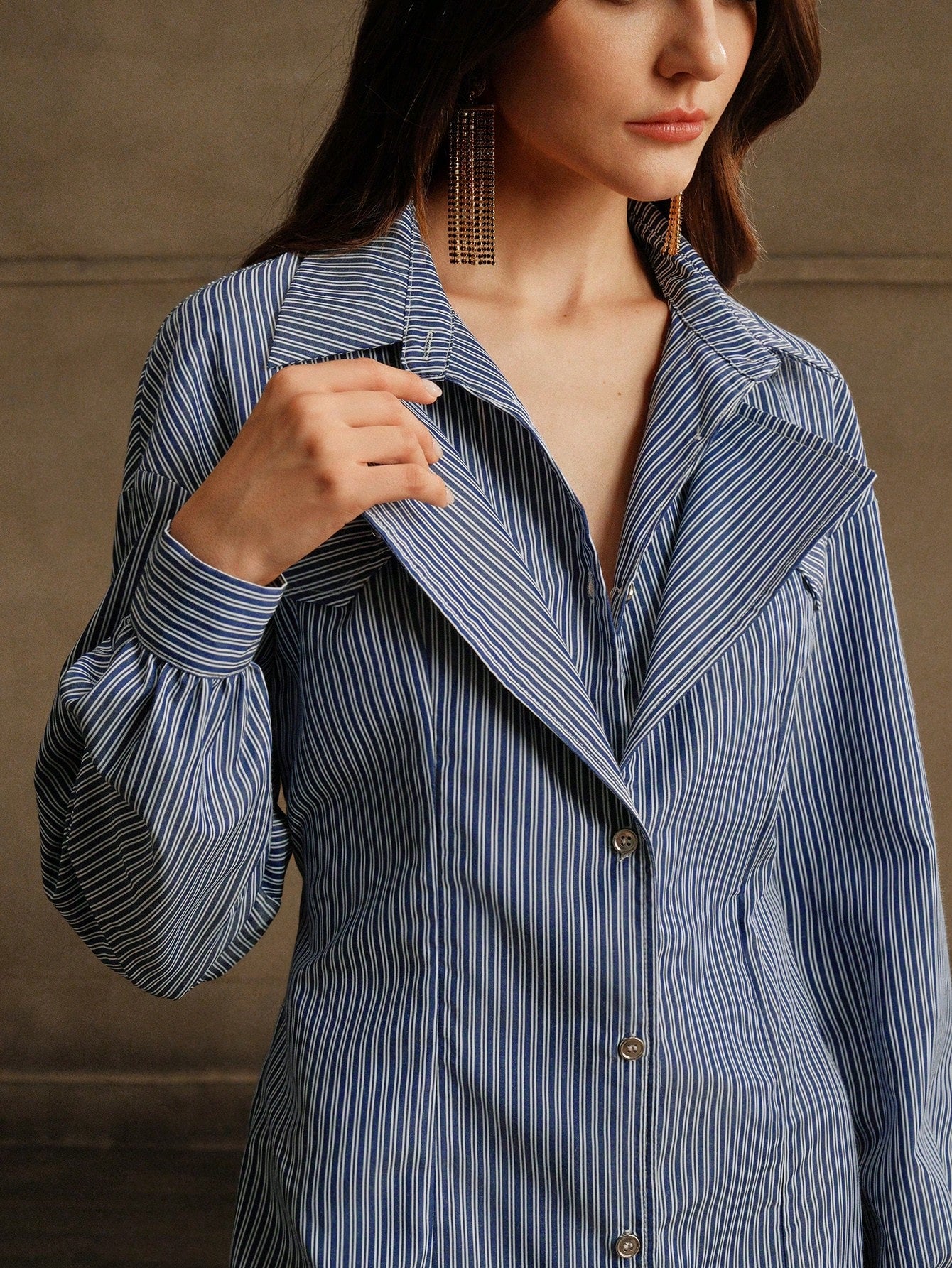 Anewsta Women's Autumn Modern 2 In 1 Striped Shirt Dress