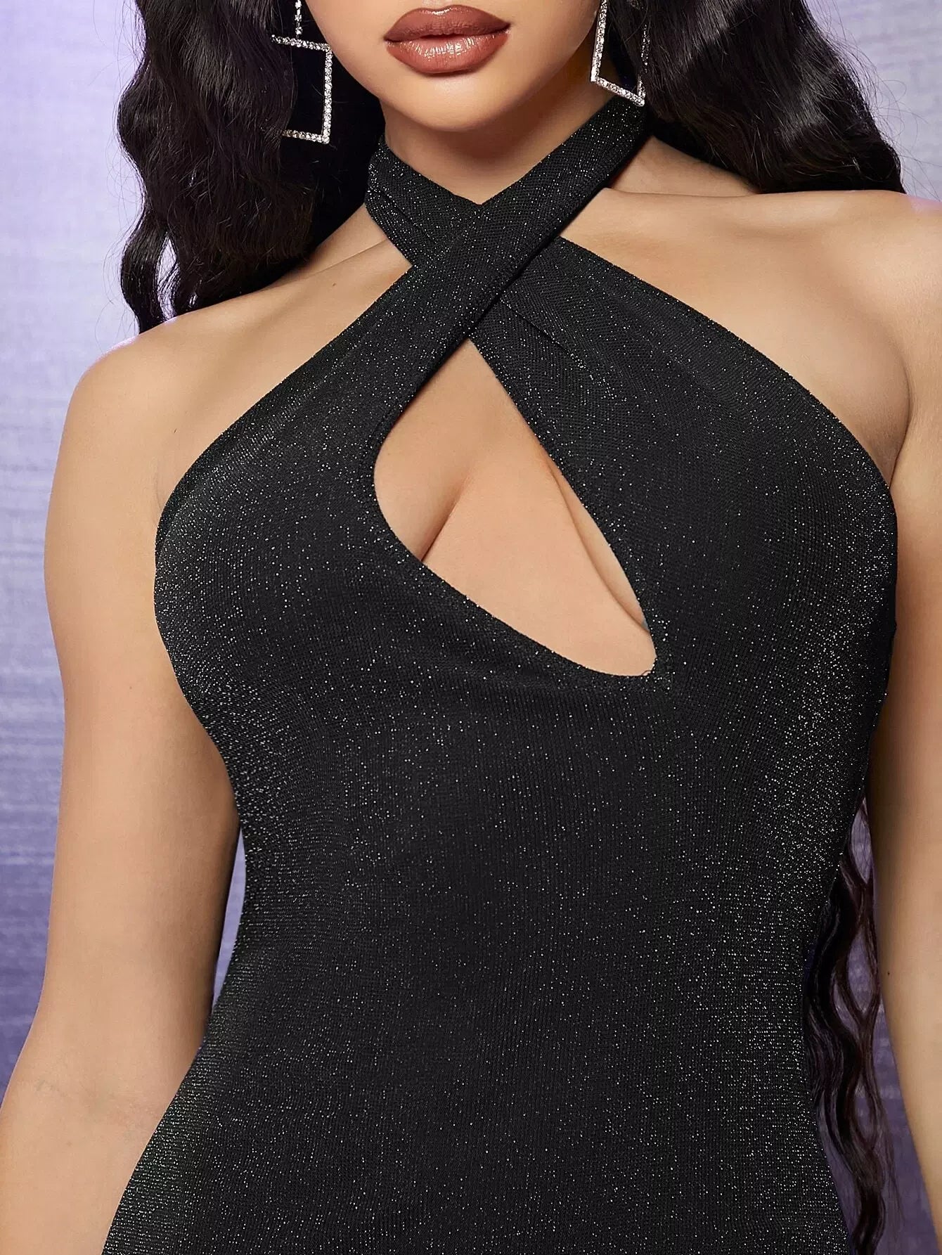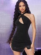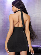 فستان ضيق بدون ظهر وفتحة رقبة على شكل حرف V وحافة غير متماثلة