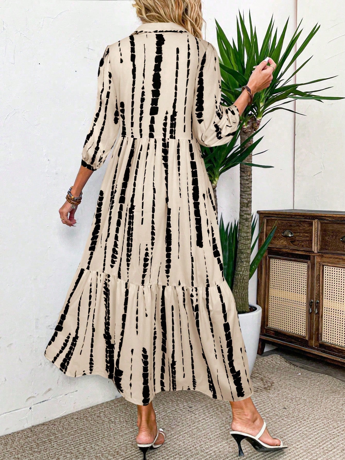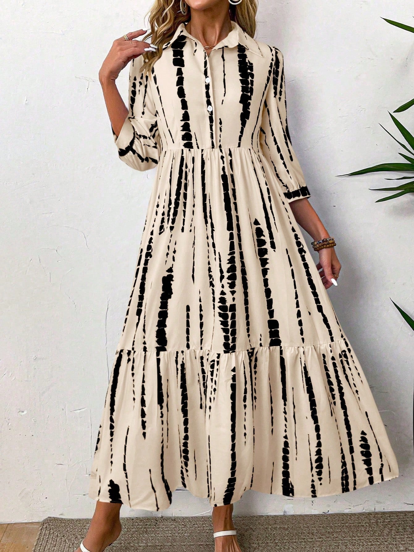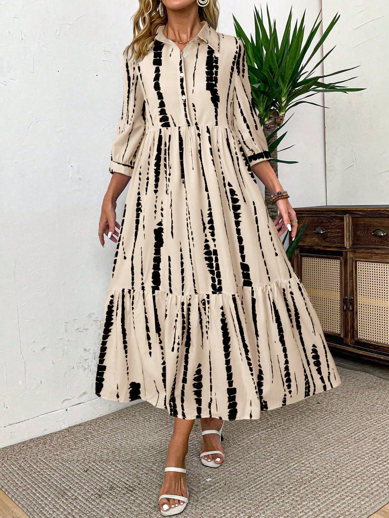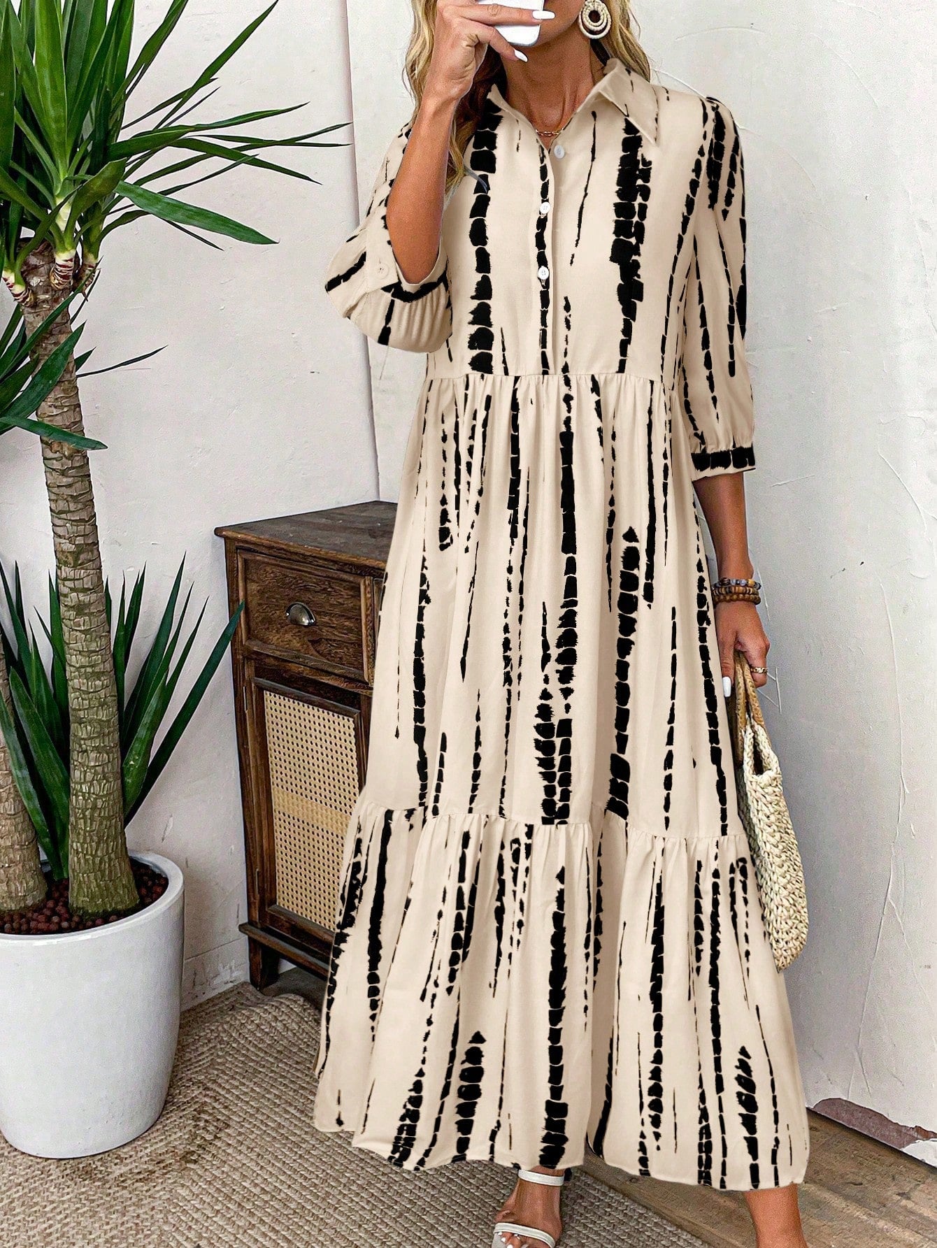 فستان نسائي كاجوال بأكمام متوسطة الطول من Breezaya، بنمط صبغ التعادل، مناسب للعطلات على الشاطئ في الخريف