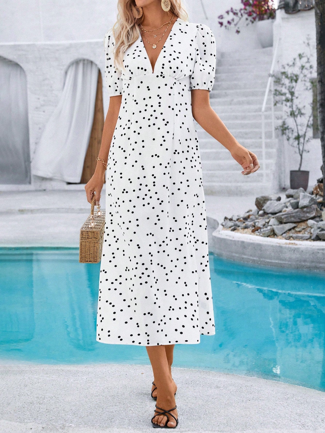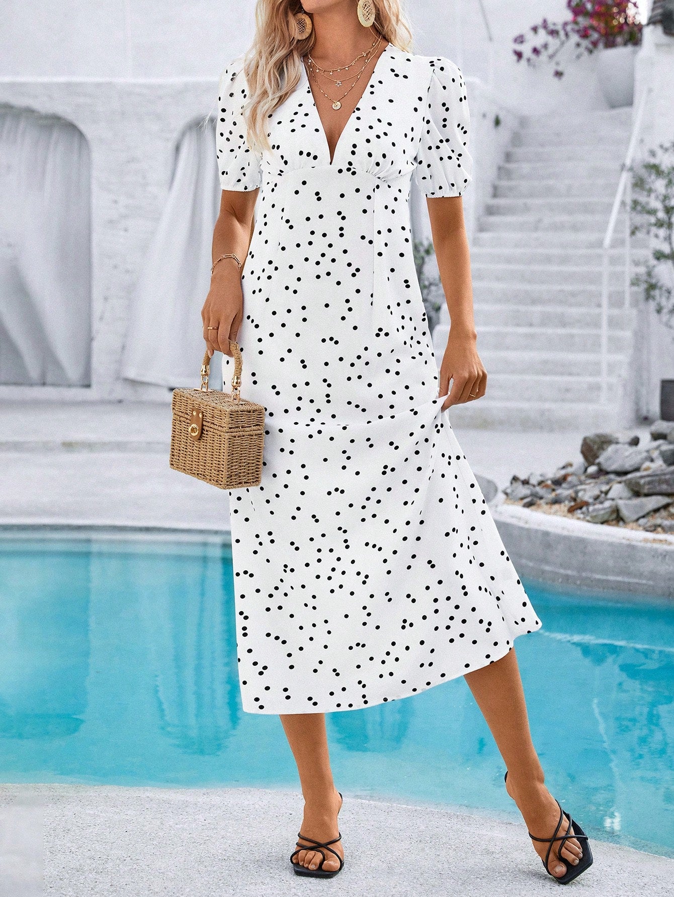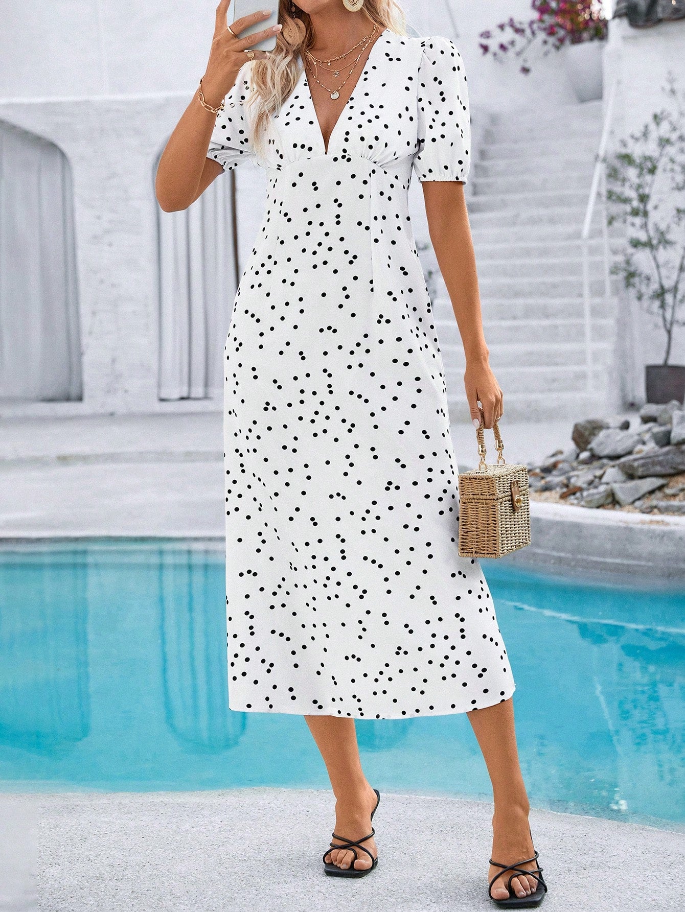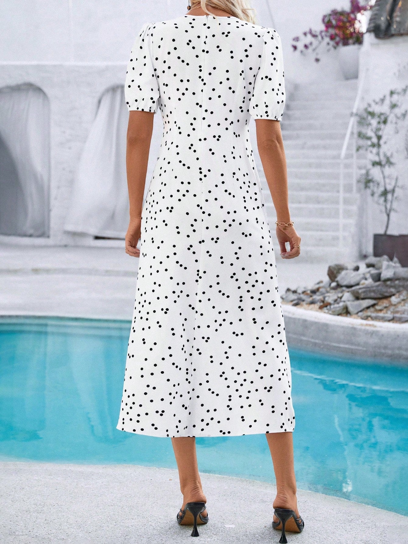 women Breezaya Women V-Neck Short Sleeve Polka Dot Bodycon Vacation Dress