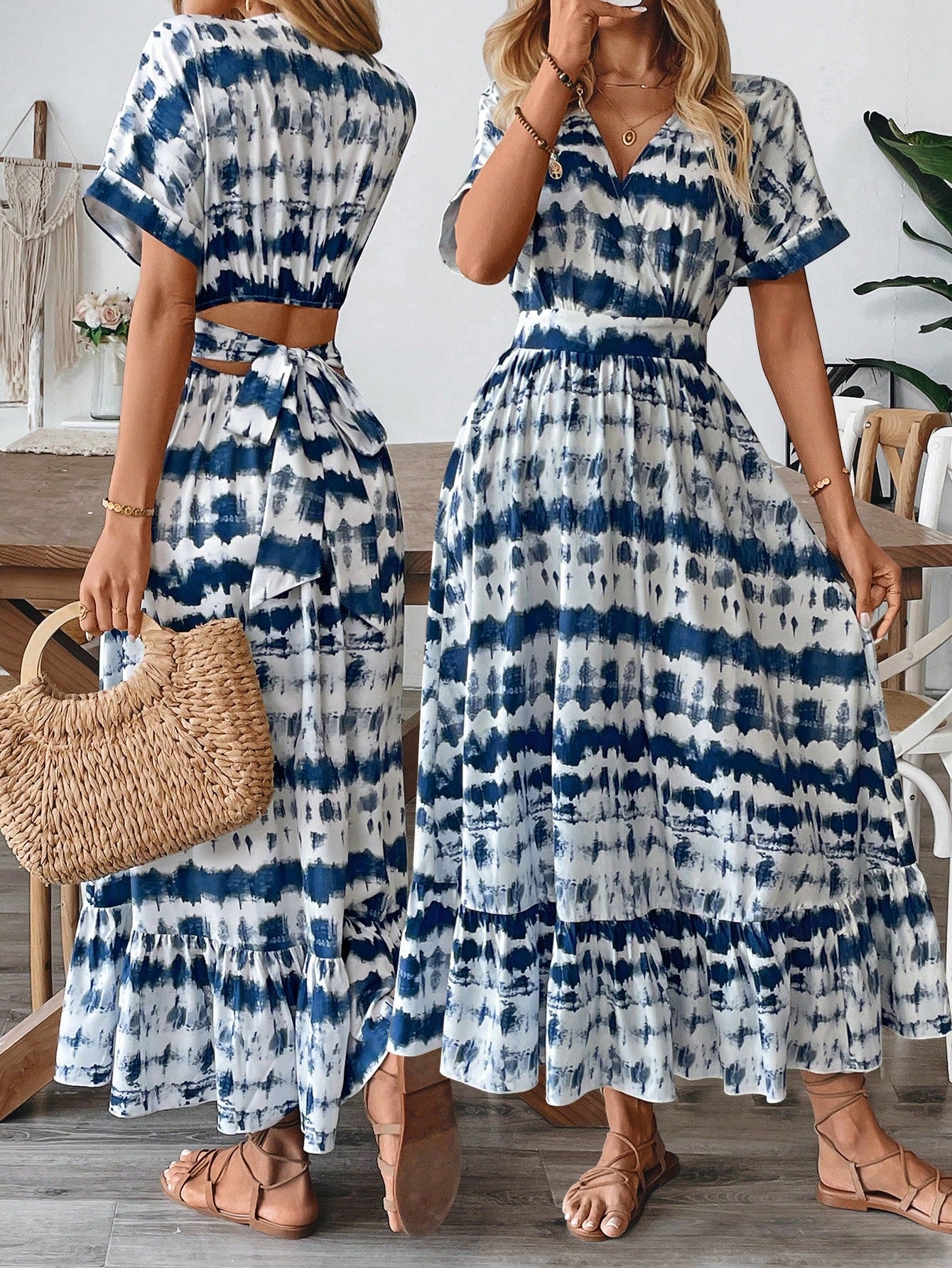 فستان بريزايا النسائي مفتوح الظهر بتصميم هالتر متقاطع ومطبوع بصبغة التعادل