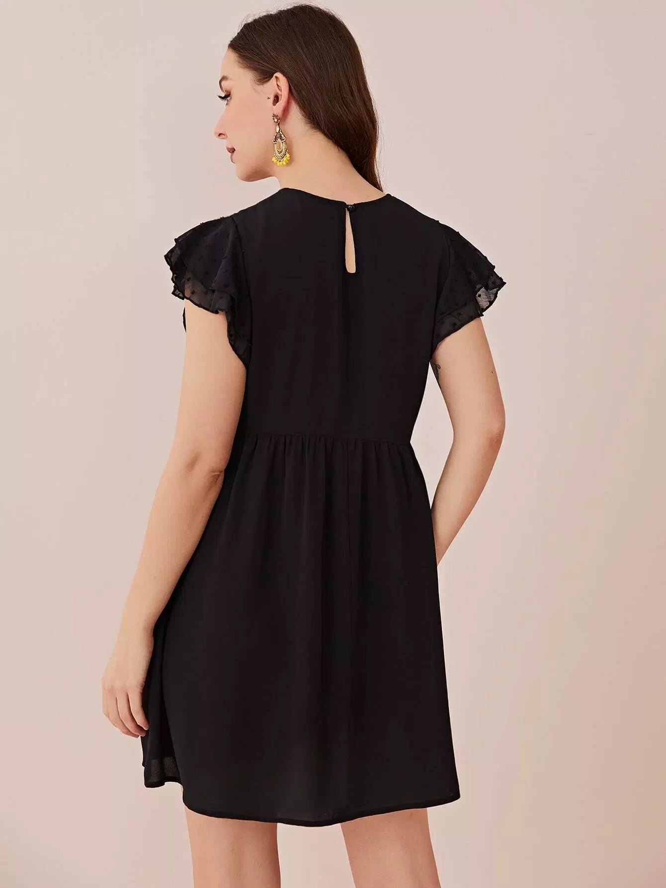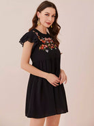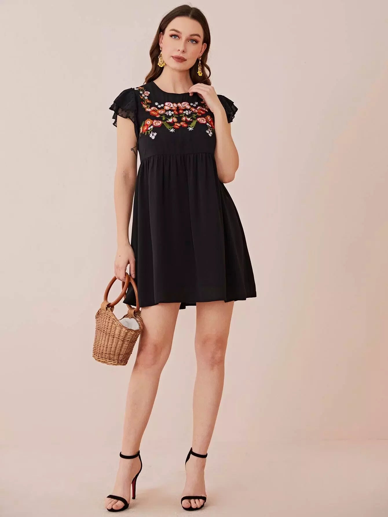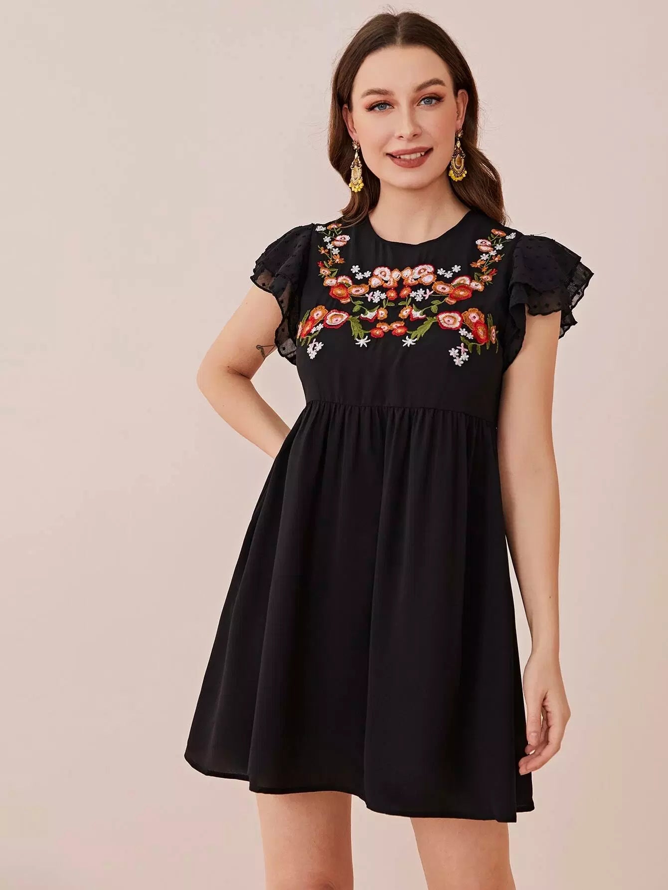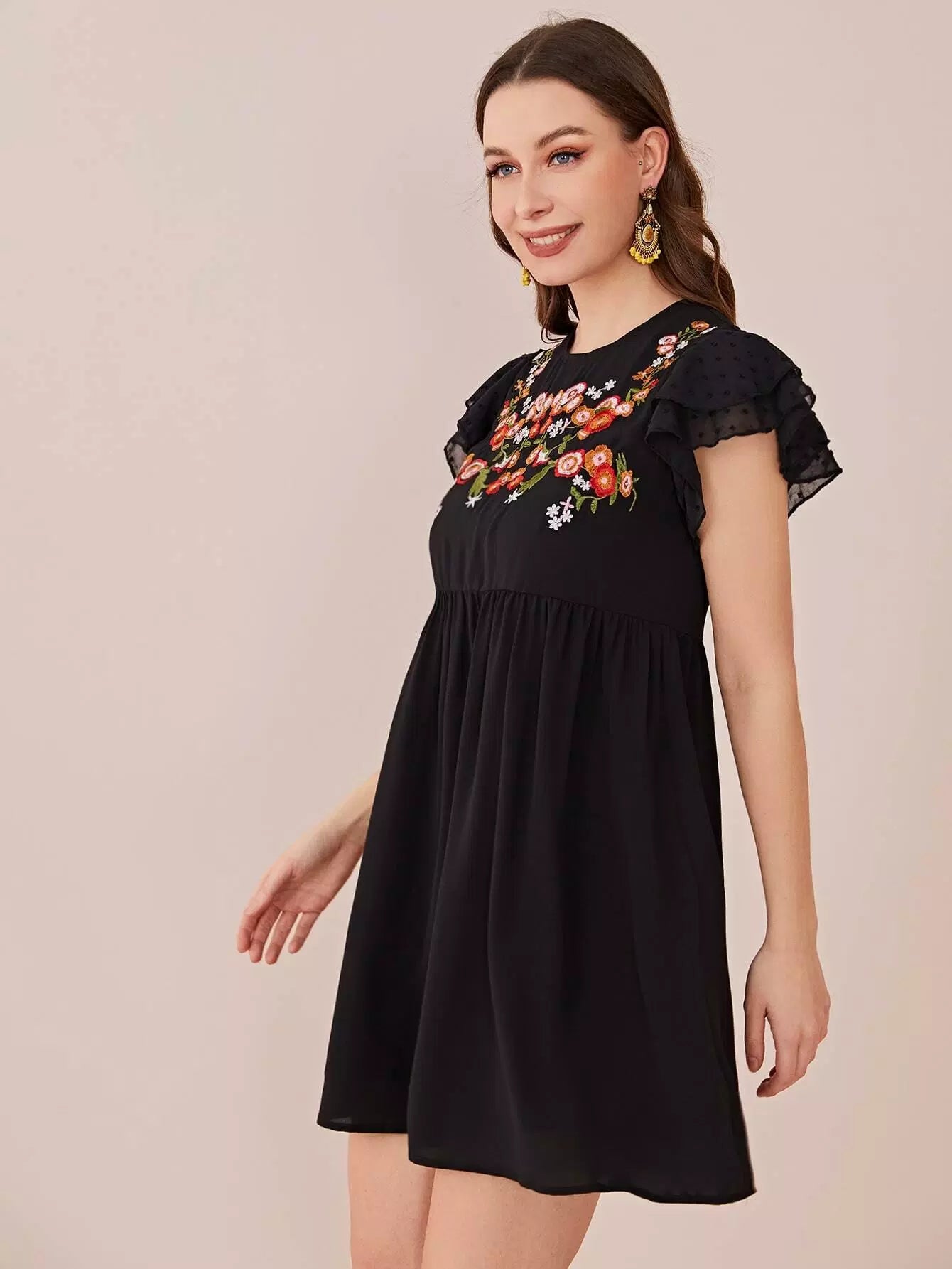 فستان سموك بأكمام فراشة مطرز بالزهور