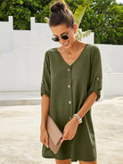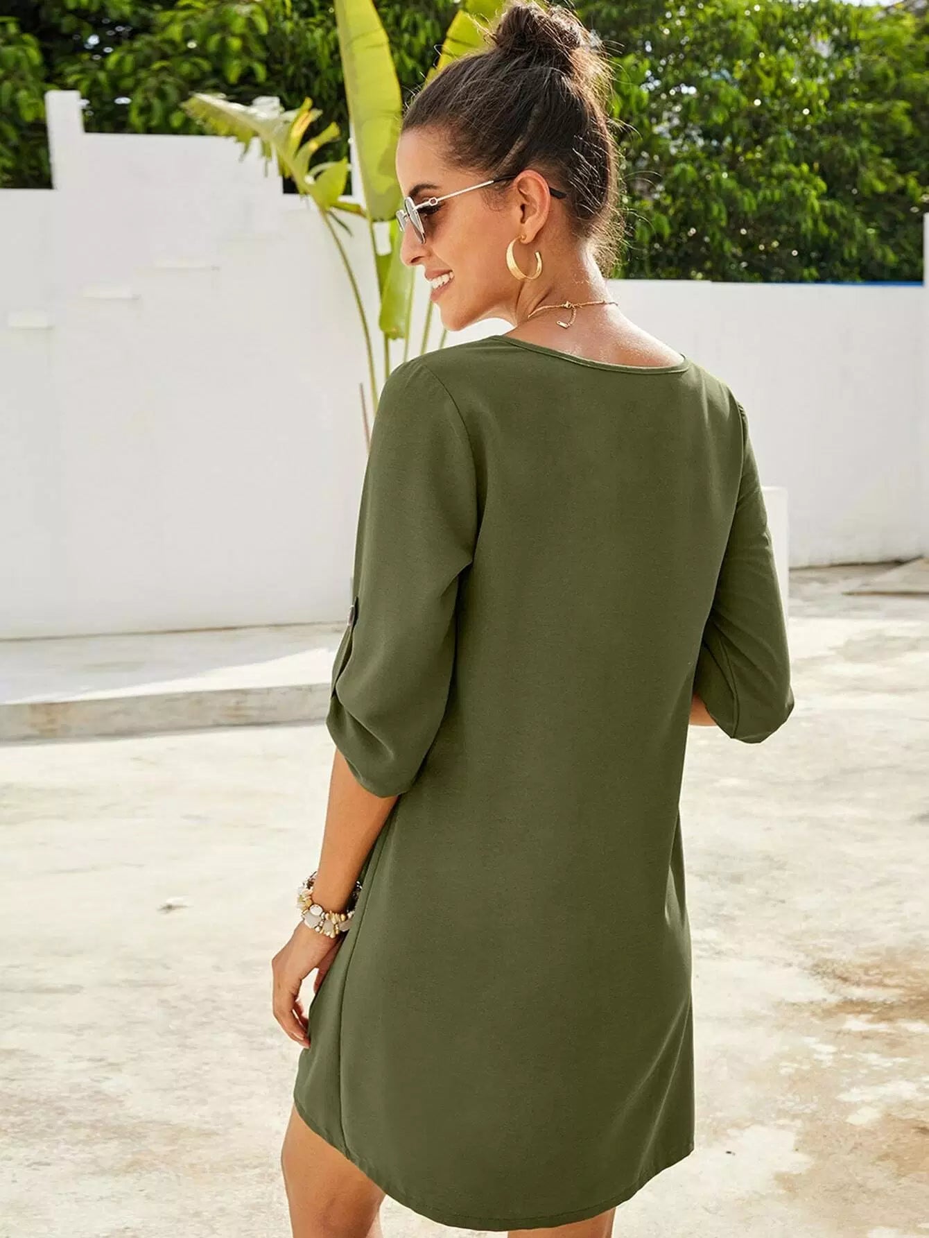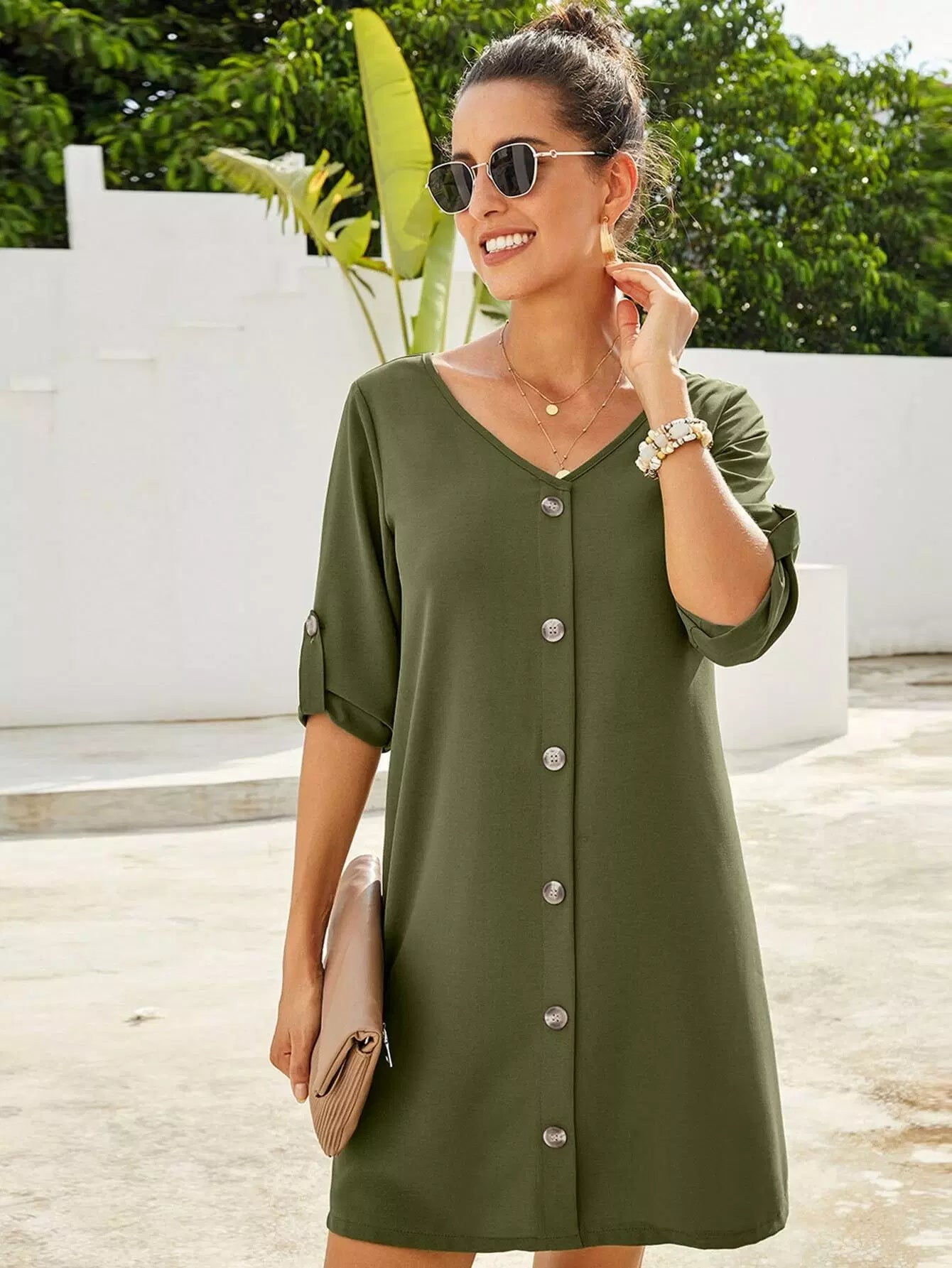 فستان قميص بأزرار بأكمام ملفوفة من الداخل والخارج