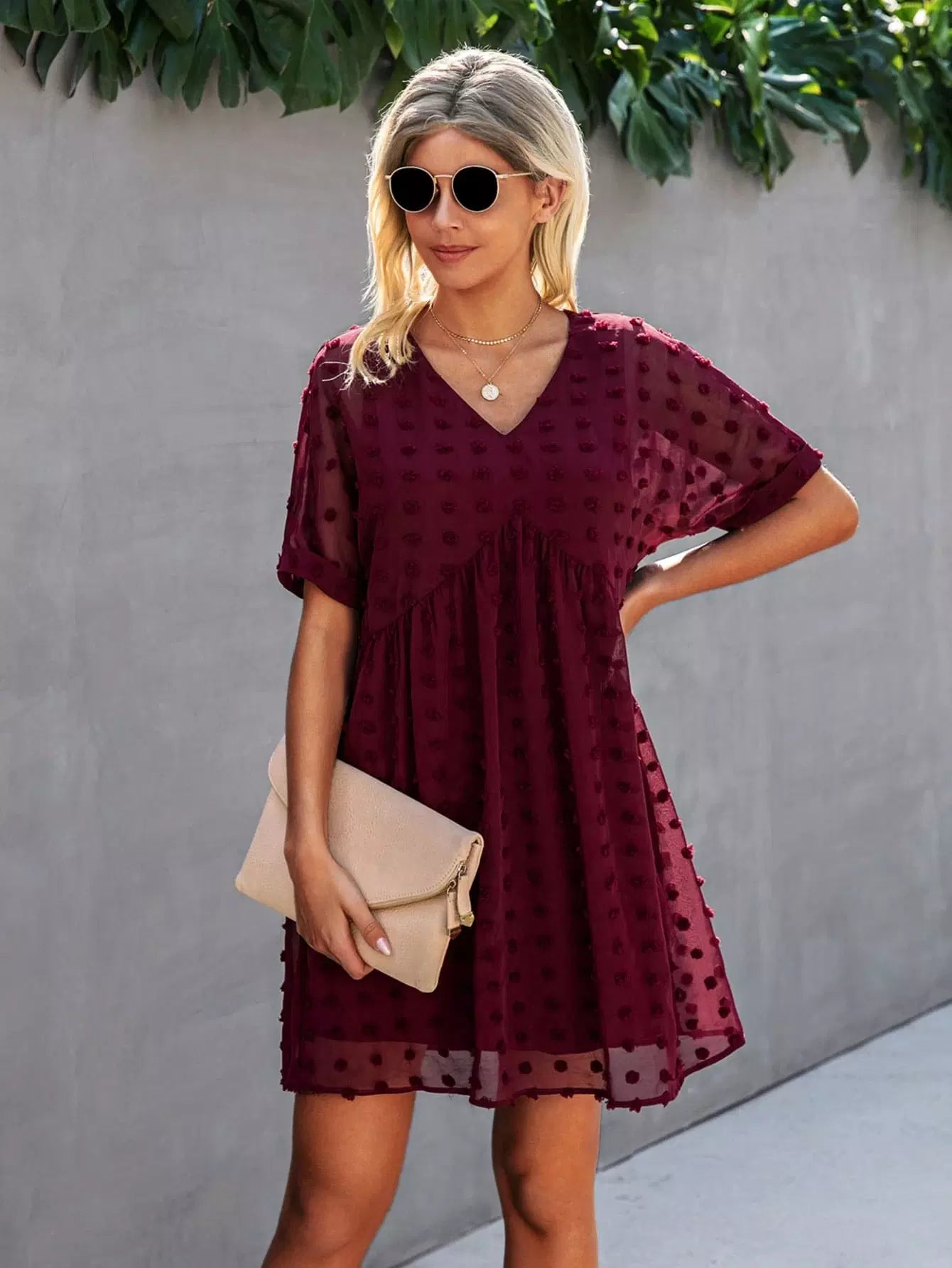 للنساء - فستان بيبي دول شيفون منقط سويسري