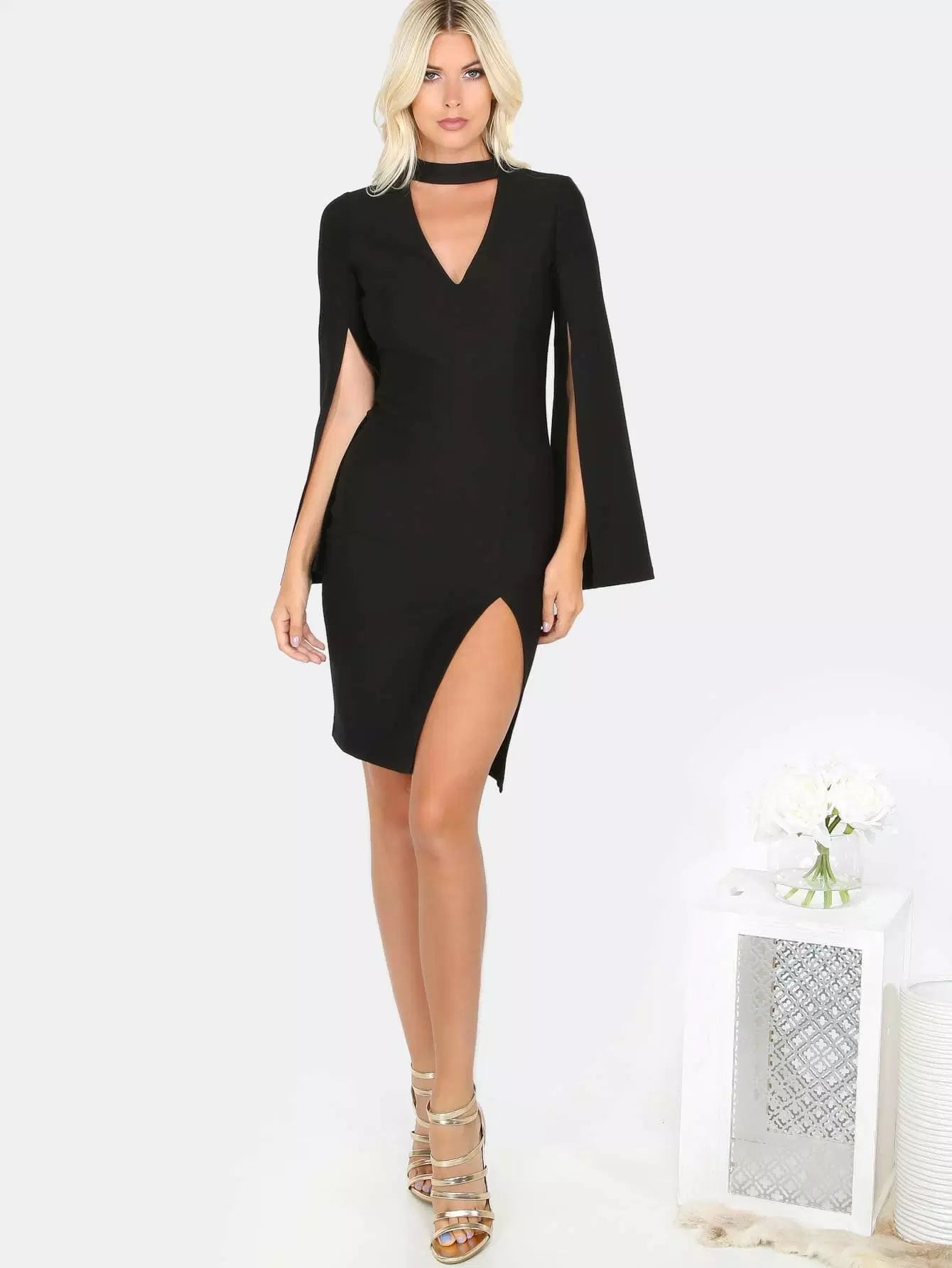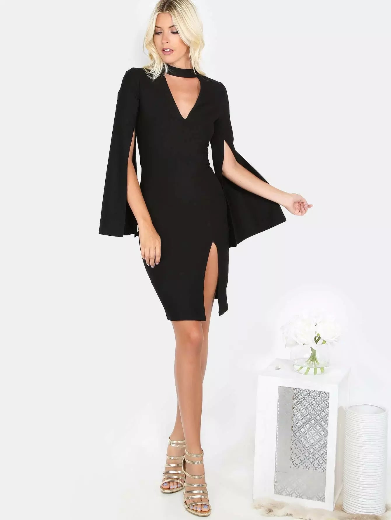 فستان بودي بياقة عقدة برقبة مقسم على شكل قلادة